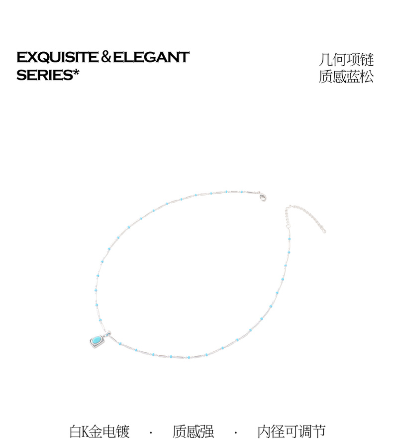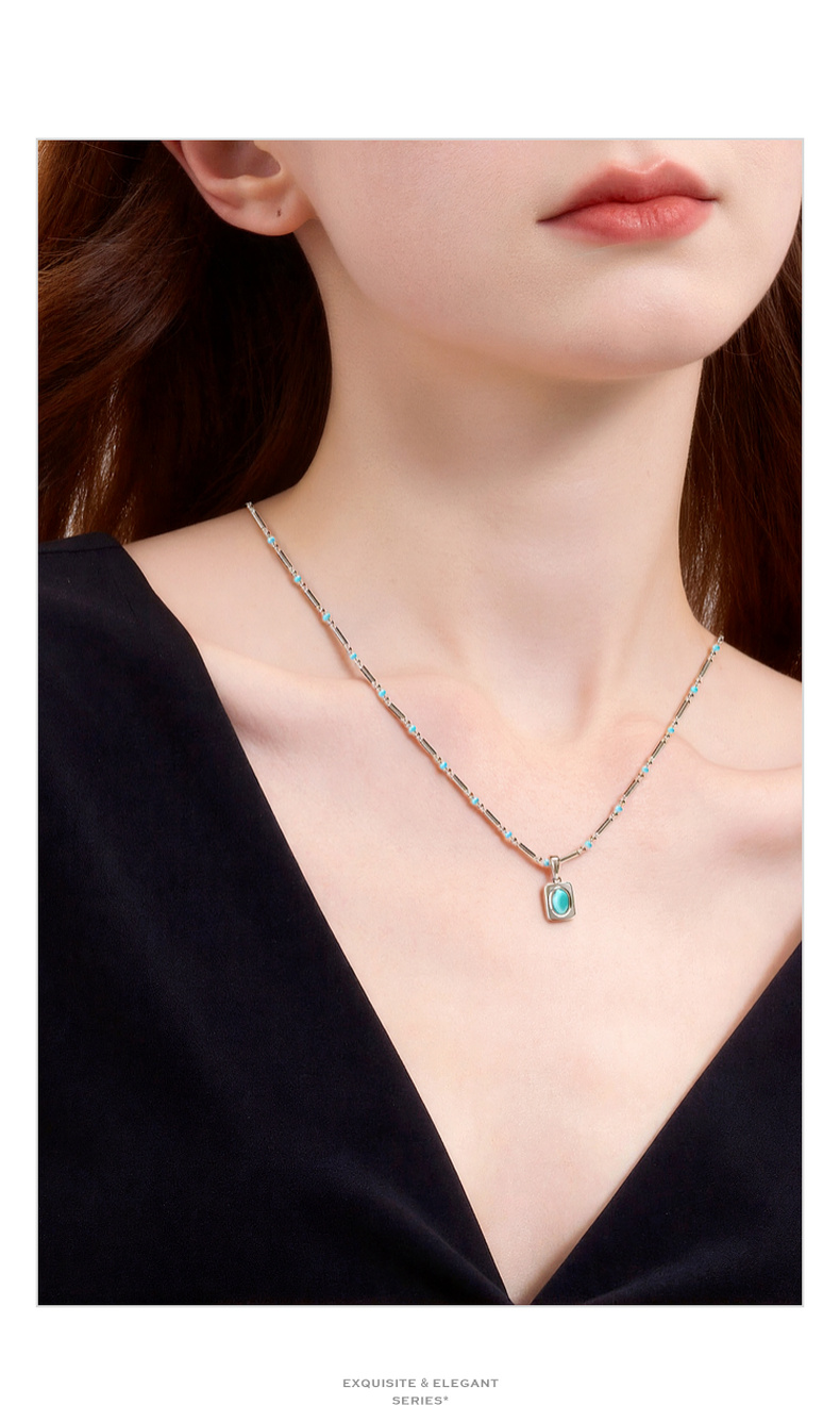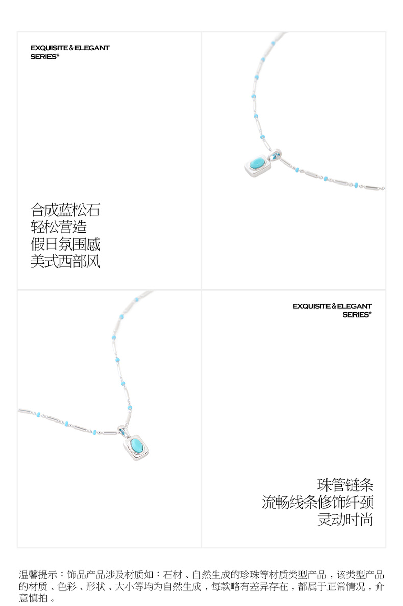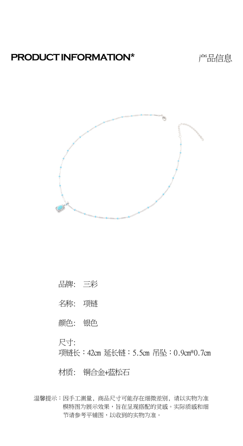 三彩2026新款蓝松石方形吊坠项链简约复古假日通勤个性西部氛围女