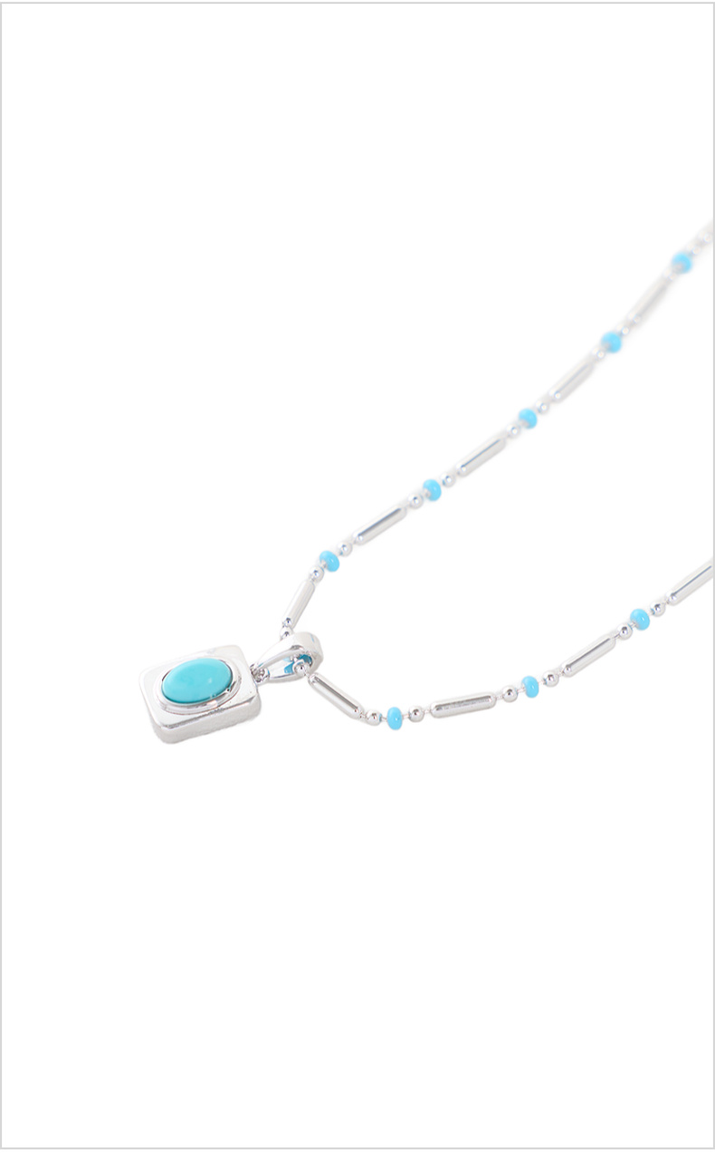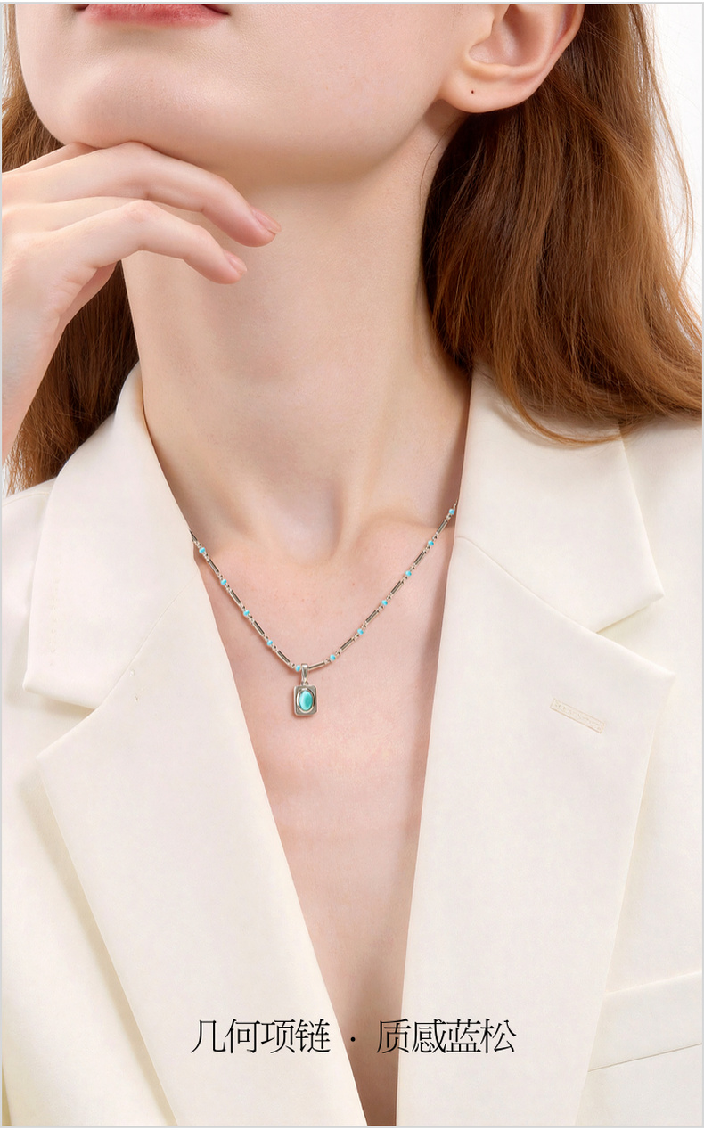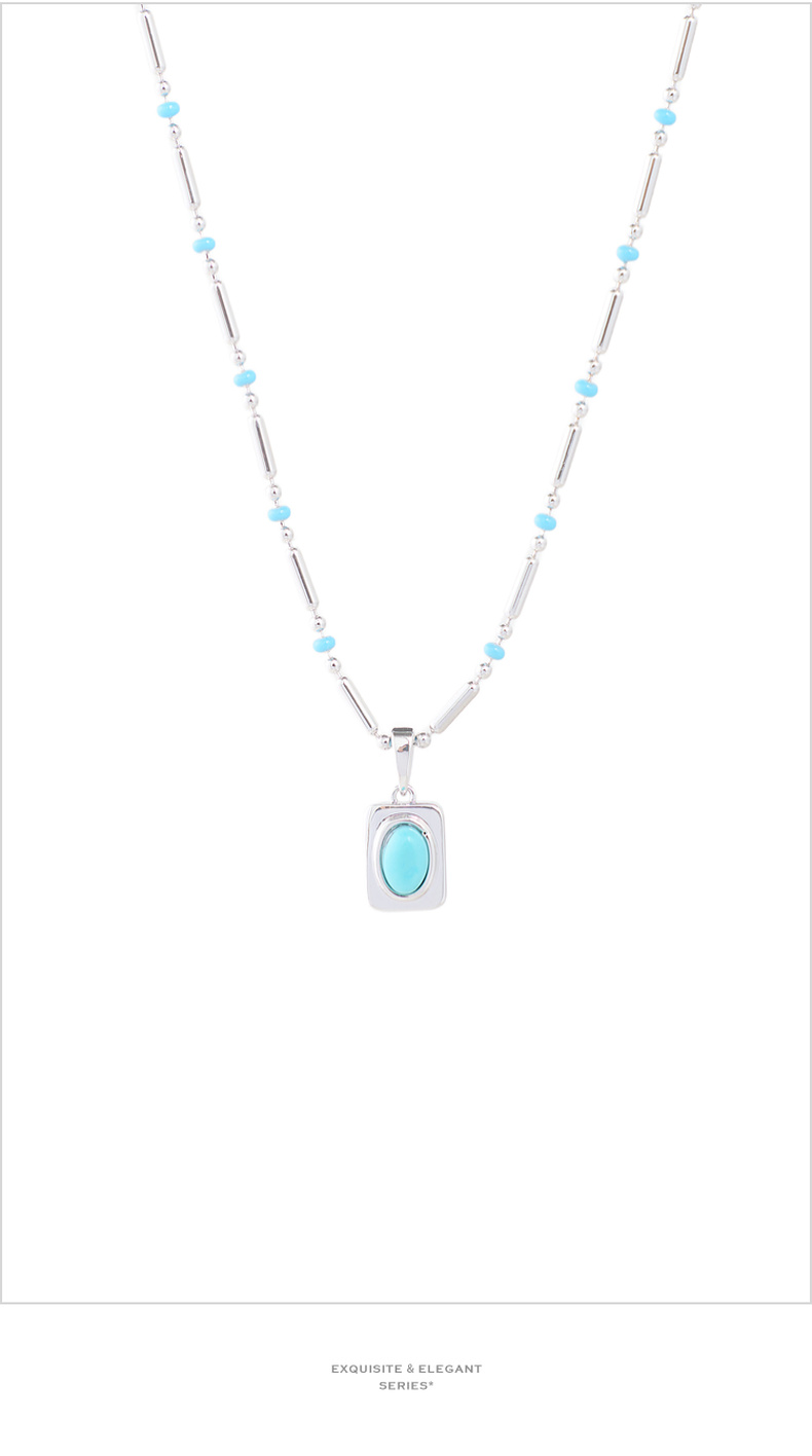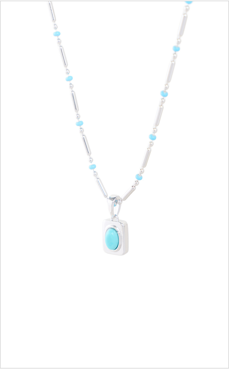 三彩2026新款蓝松石方形吊坠项链简约复古假日通勤个性西部氛围女