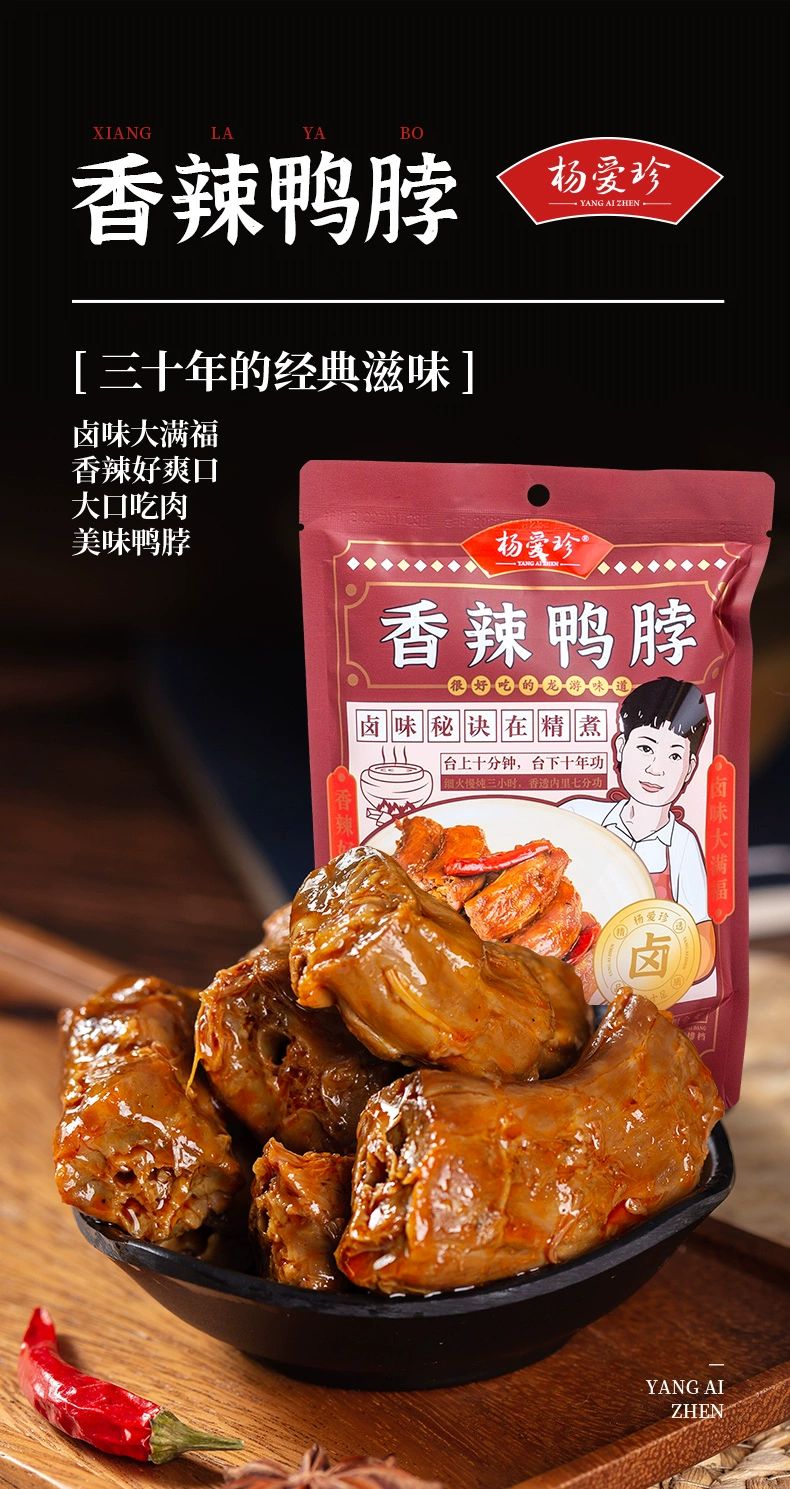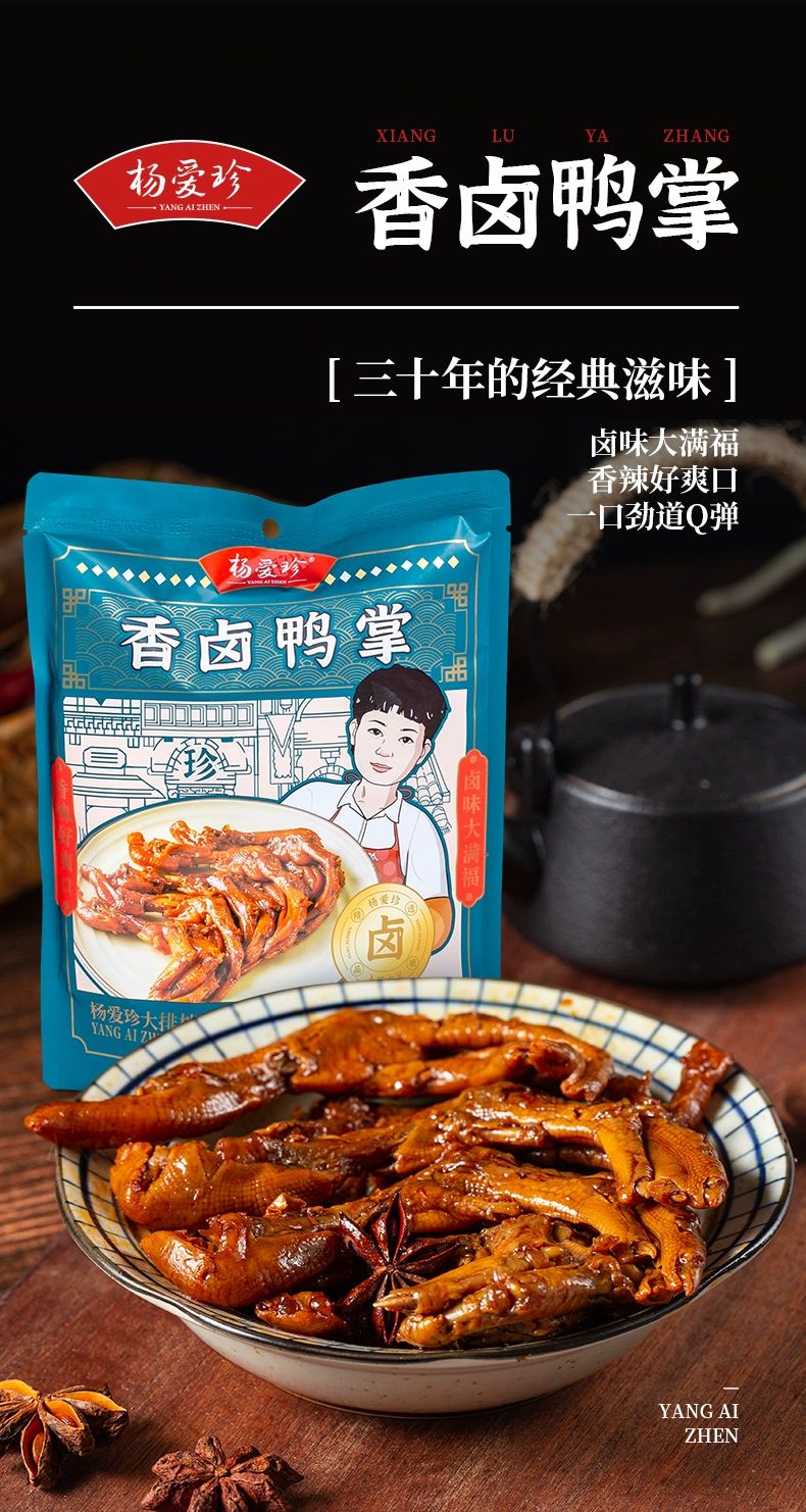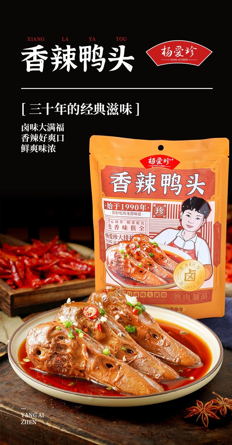 杨爱珍心意大礼盒:270g香辣鸭头*1包+350g香辣兔头*1包+240g香卤鸡爪*1包+245g香卤鸭掌*1包+240g香辣鸭脖*1包+400g香辣猪脚*1包