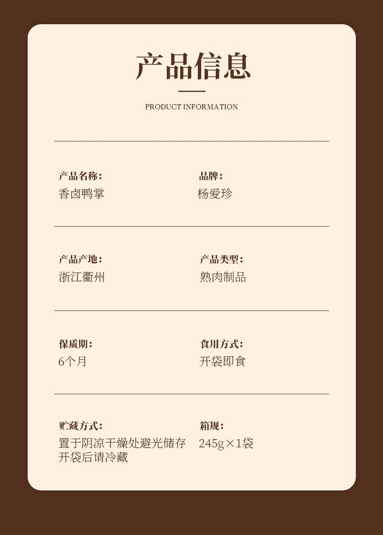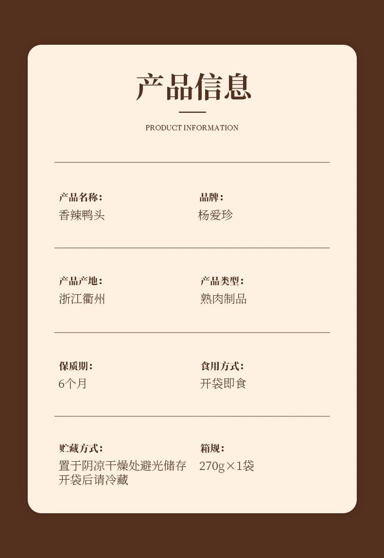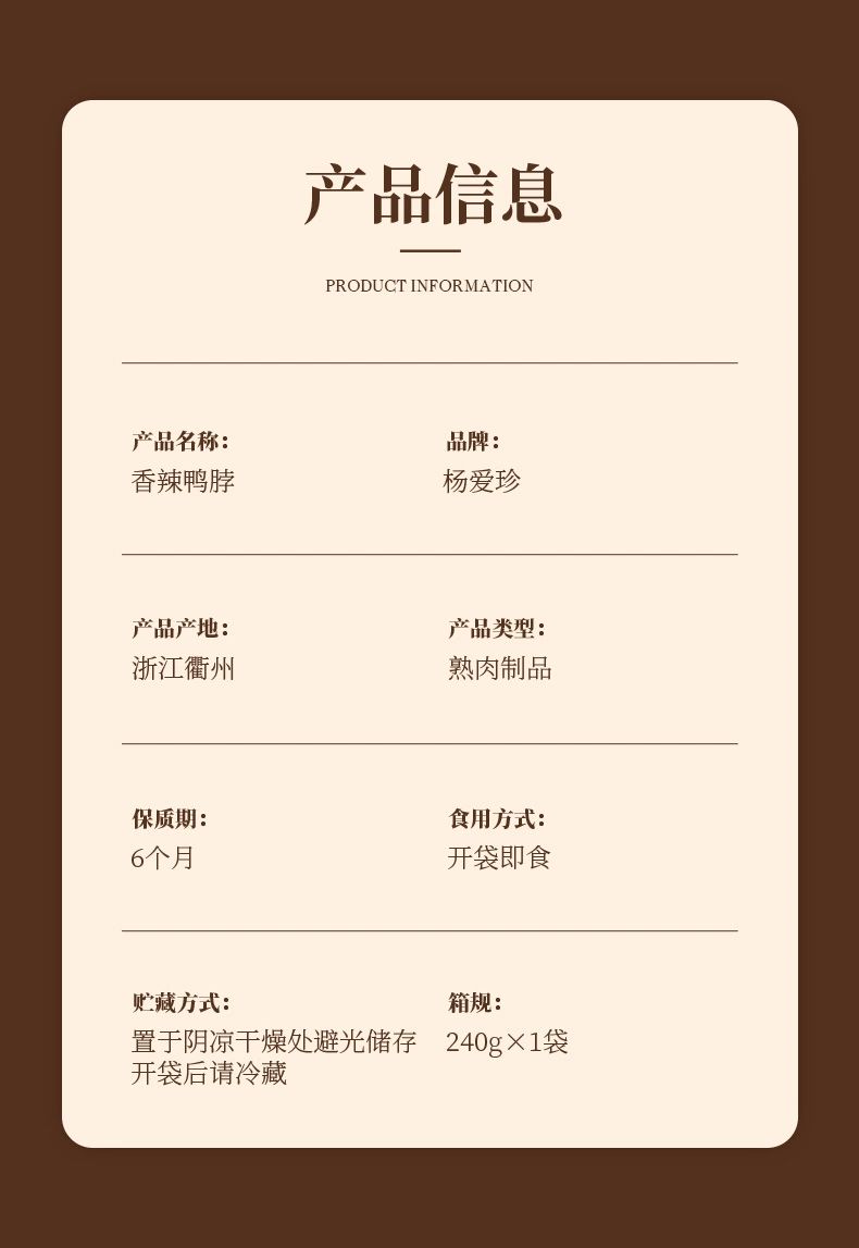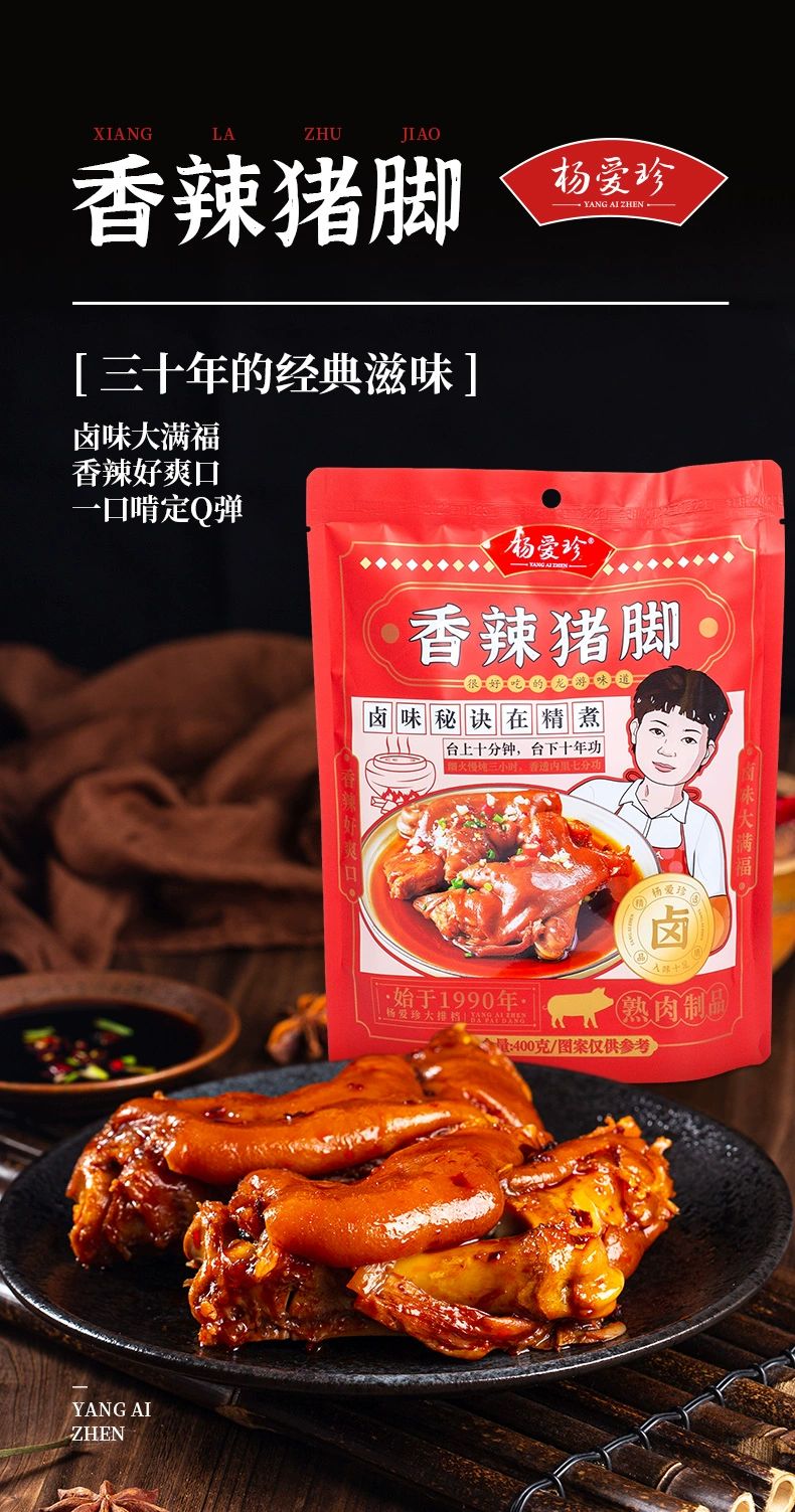杨爱珍心意大礼盒:270g香辣鸭头*1包+350g香辣兔头*1包+240g香卤鸡爪*1包+245g香卤鸭掌*1包+240g香辣鸭脖*1包+400g香辣猪脚*1包