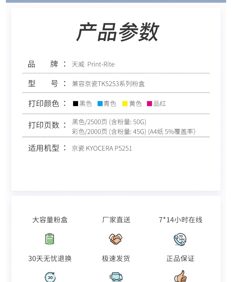 天威 TK-5253/5263粉盒 适用京瓷Kyocera ECOSYS M5521CDW M5521CDN M5021CDN墨粉盒