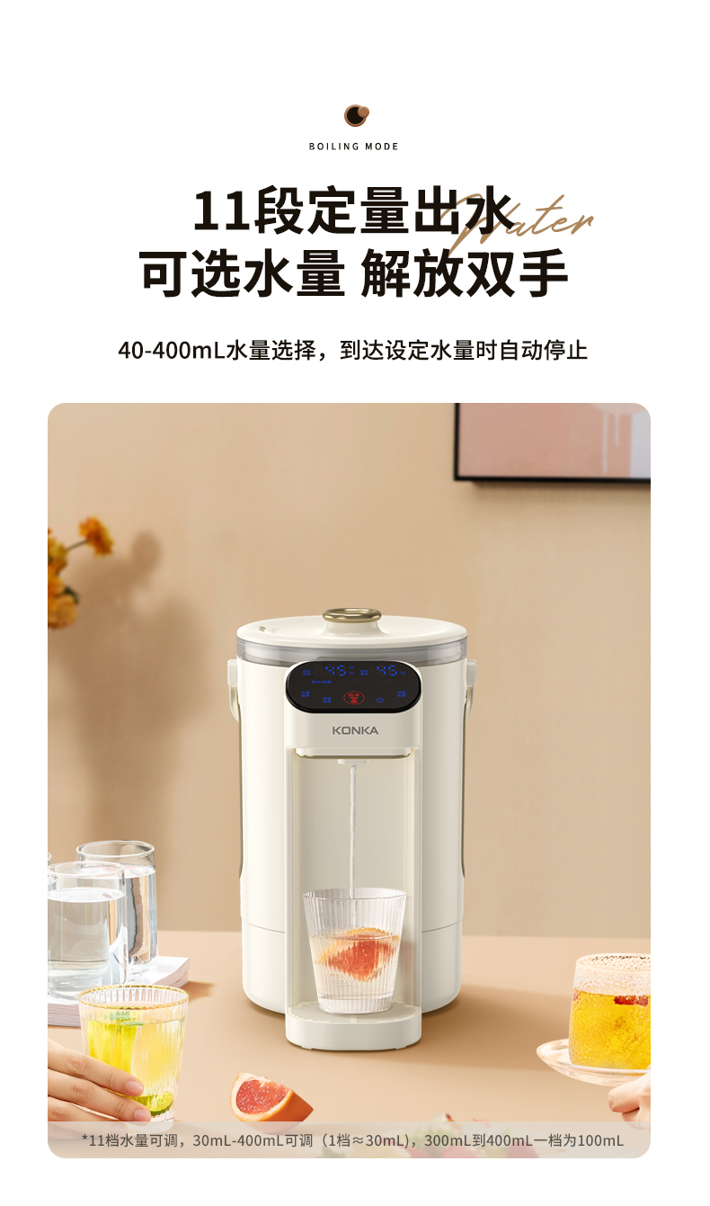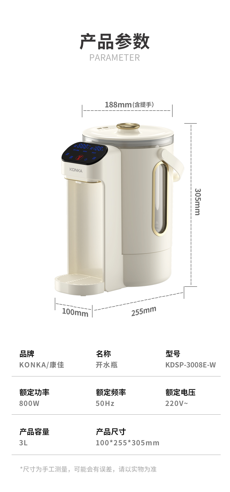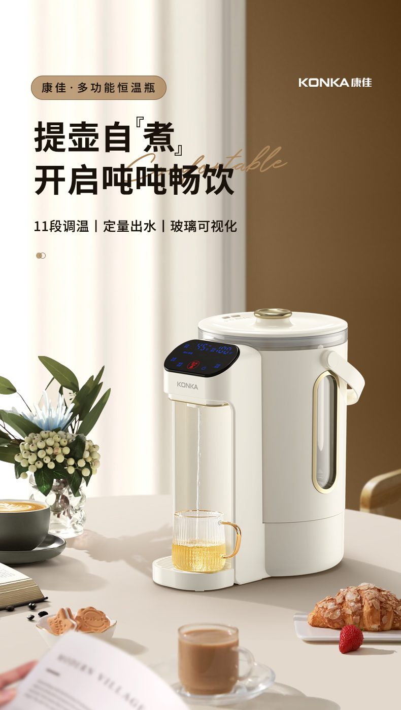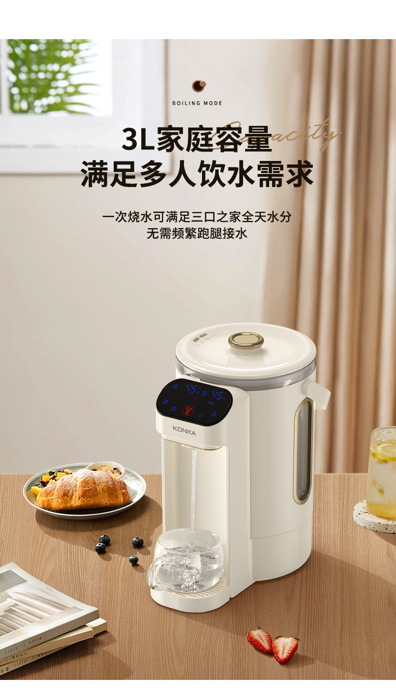 康佳(KONKA)电热水瓶恒温水壶304电热水壶大容量除氯保温双层防烫玻璃3L烧水壶KDSP-3008E-W