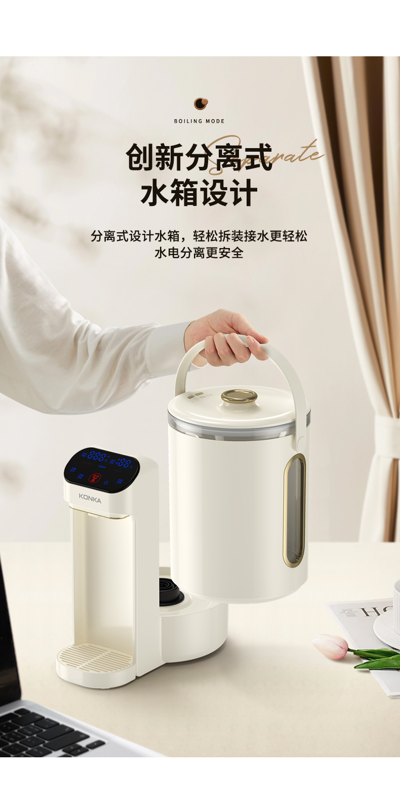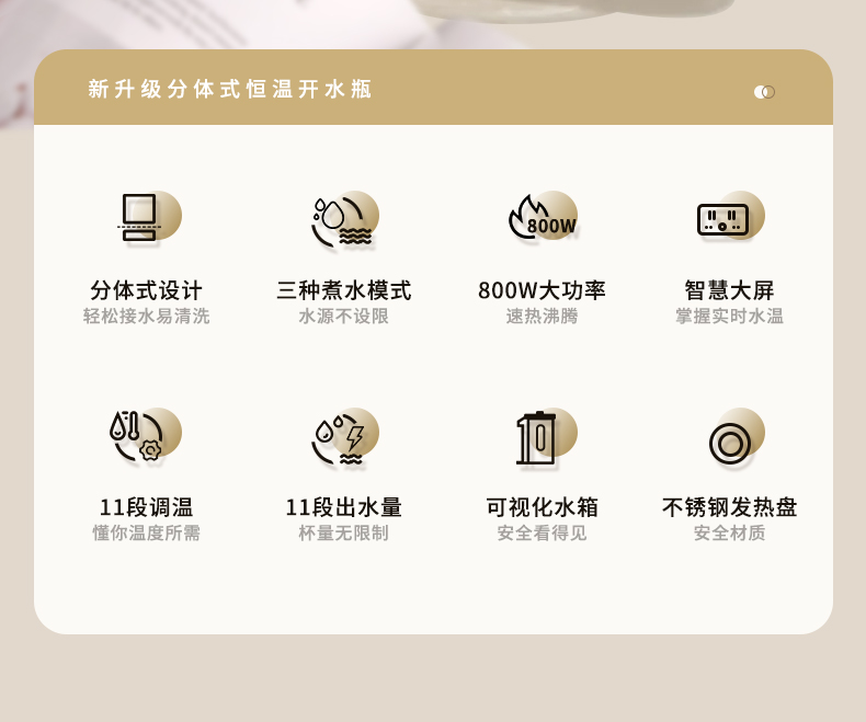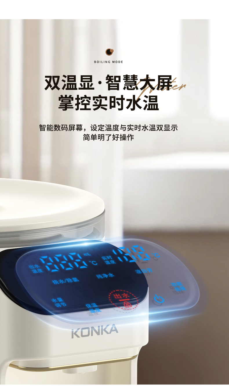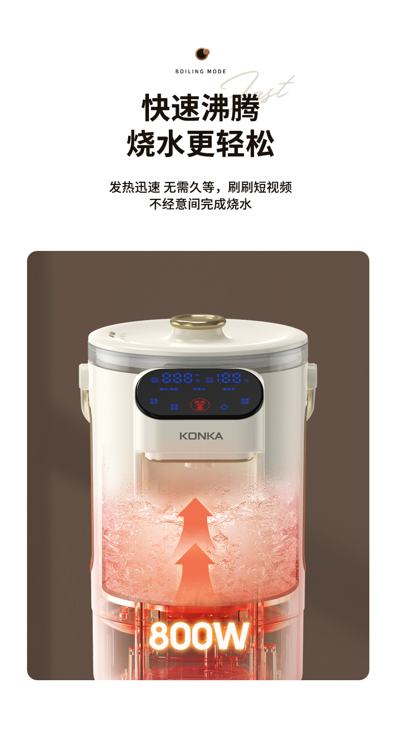 康佳(KONKA)电热水瓶恒温水壶304电热水壶大容量除氯保温双层防烫玻璃3L烧水壶KDSP-3008E-W