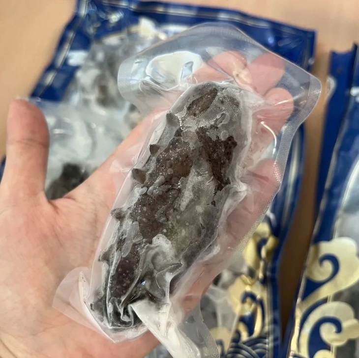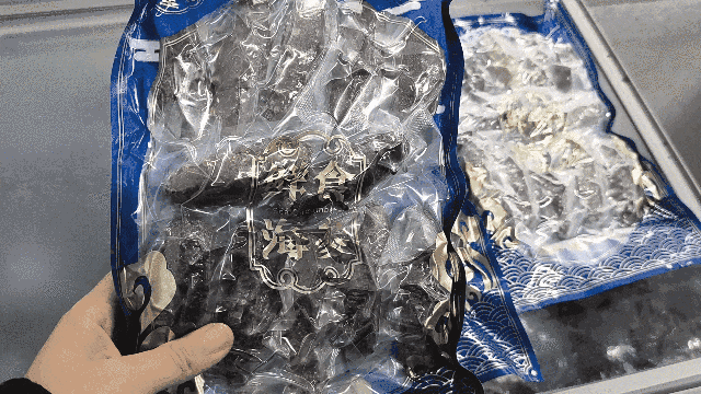 煮熟后的海参先放入冷库进行锁鲜,冻得硬邦邦之后再经过机器分拣大小头数(头数越小,个头越大),每个海参都有真空独立包装,干净卫生!