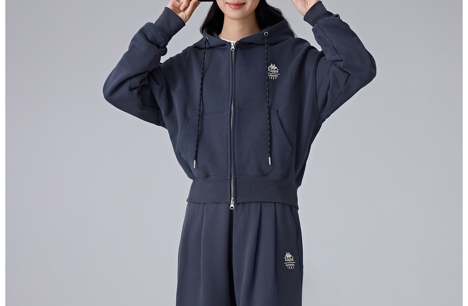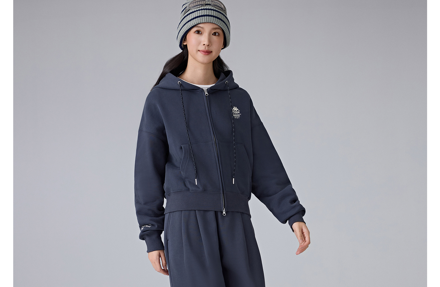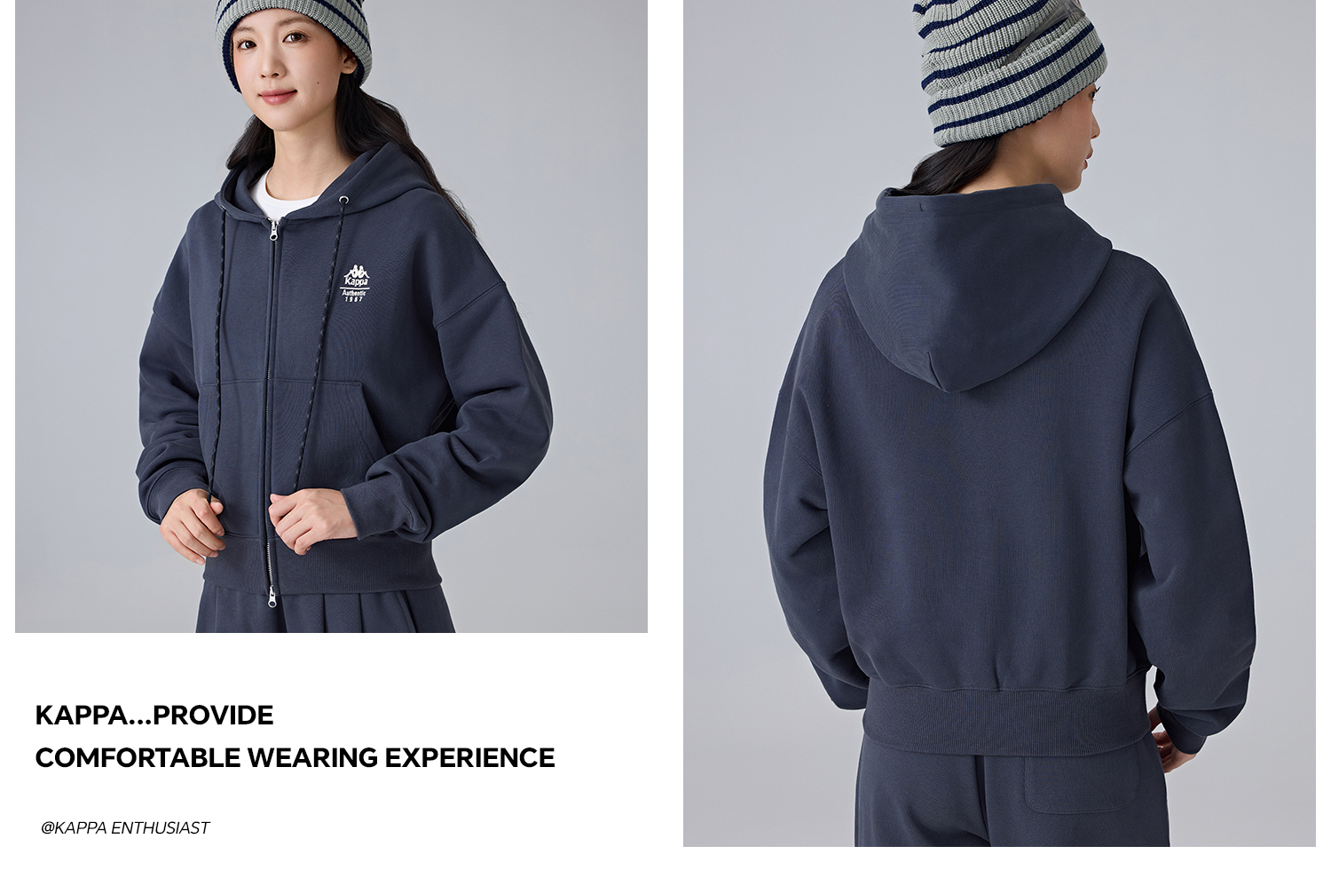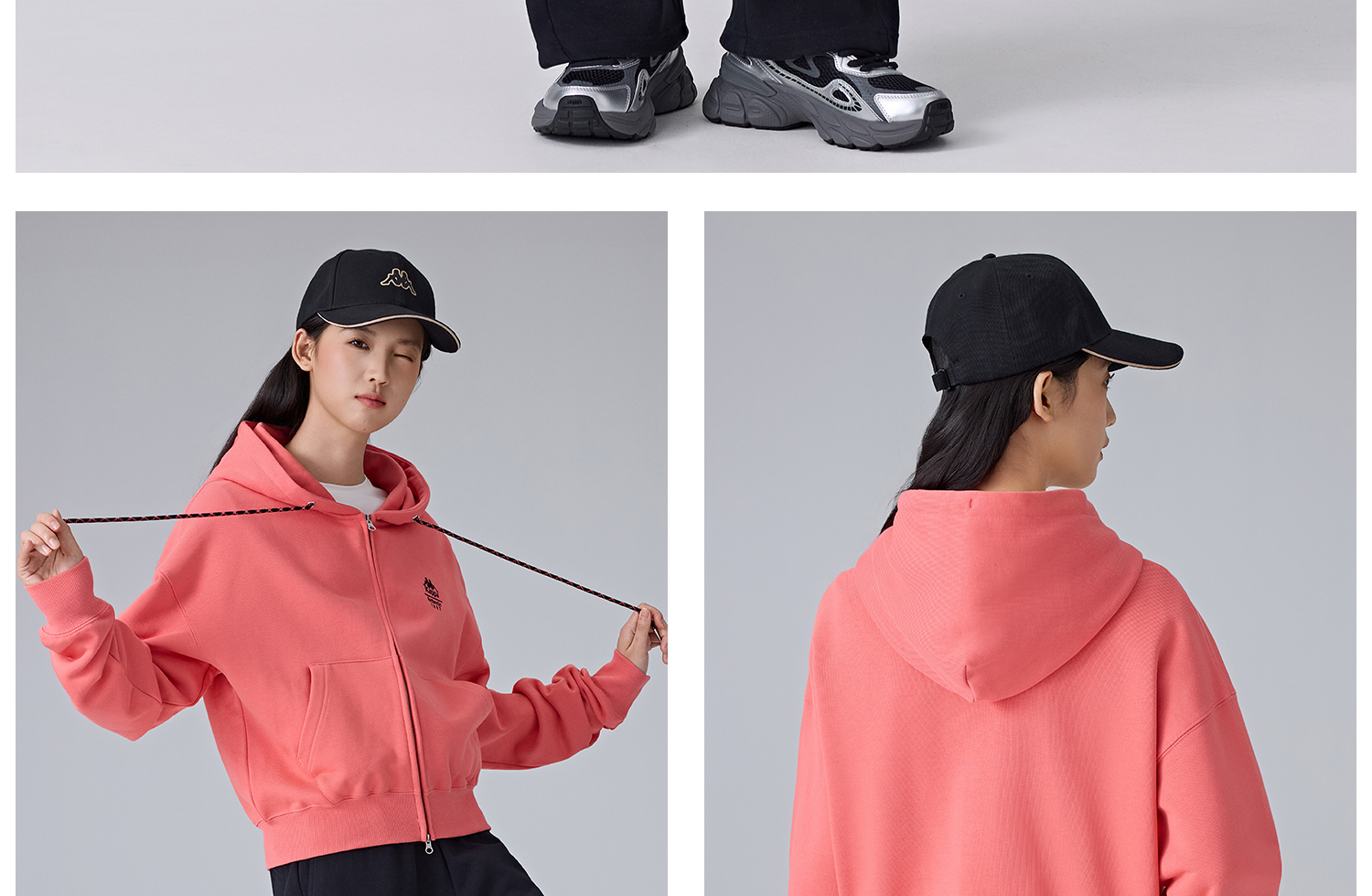 Kappa卡帕背靠背新款运动外套女款休闲连帽卫衣针织开衫短款上衣K0F22MK61