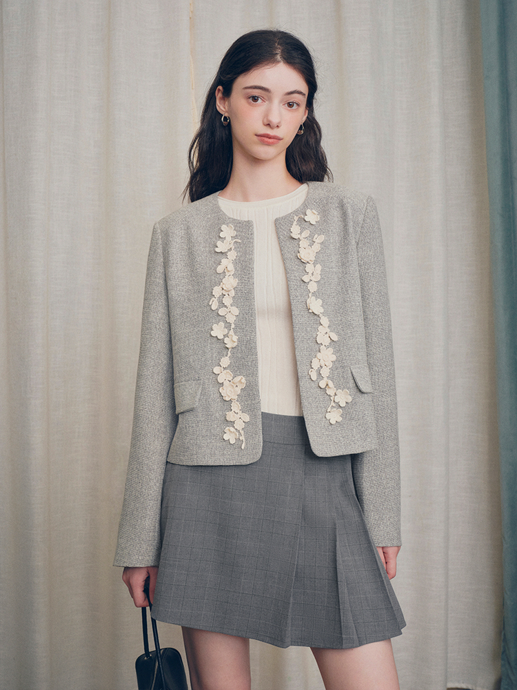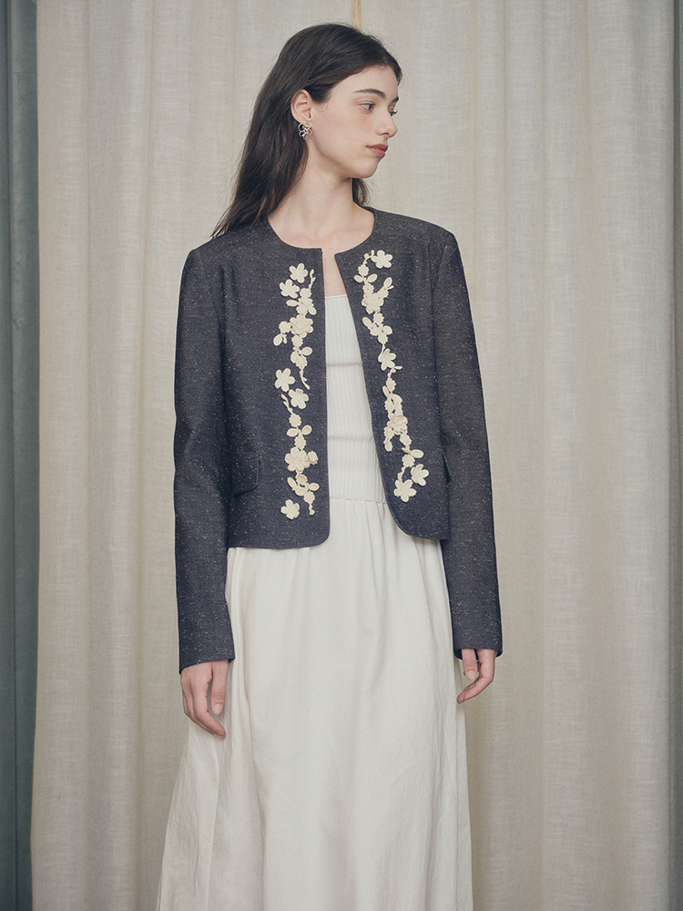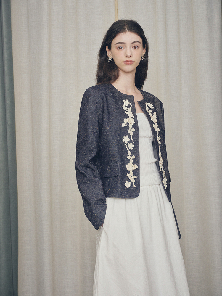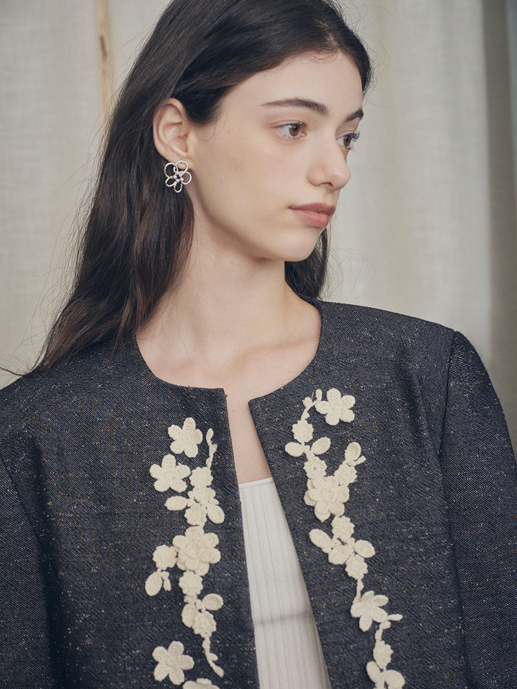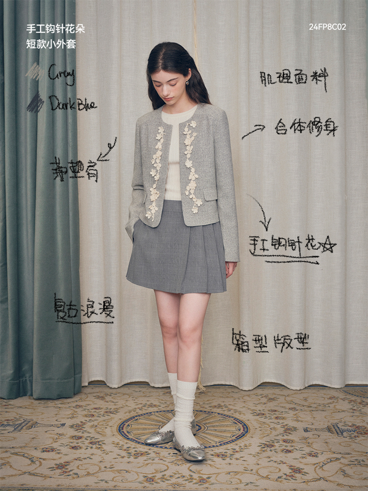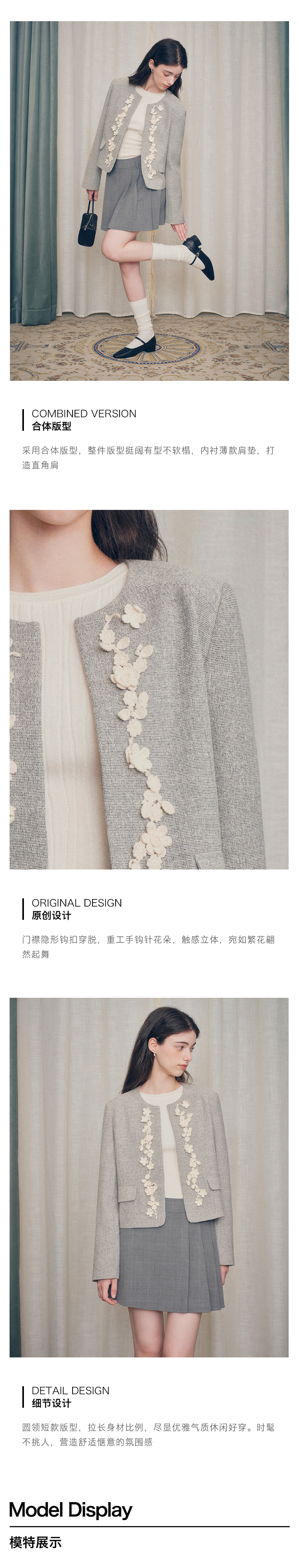 ForPoem 现货 24/FW原创设计重工钩针立体浮雕花朵小香风短款小外套