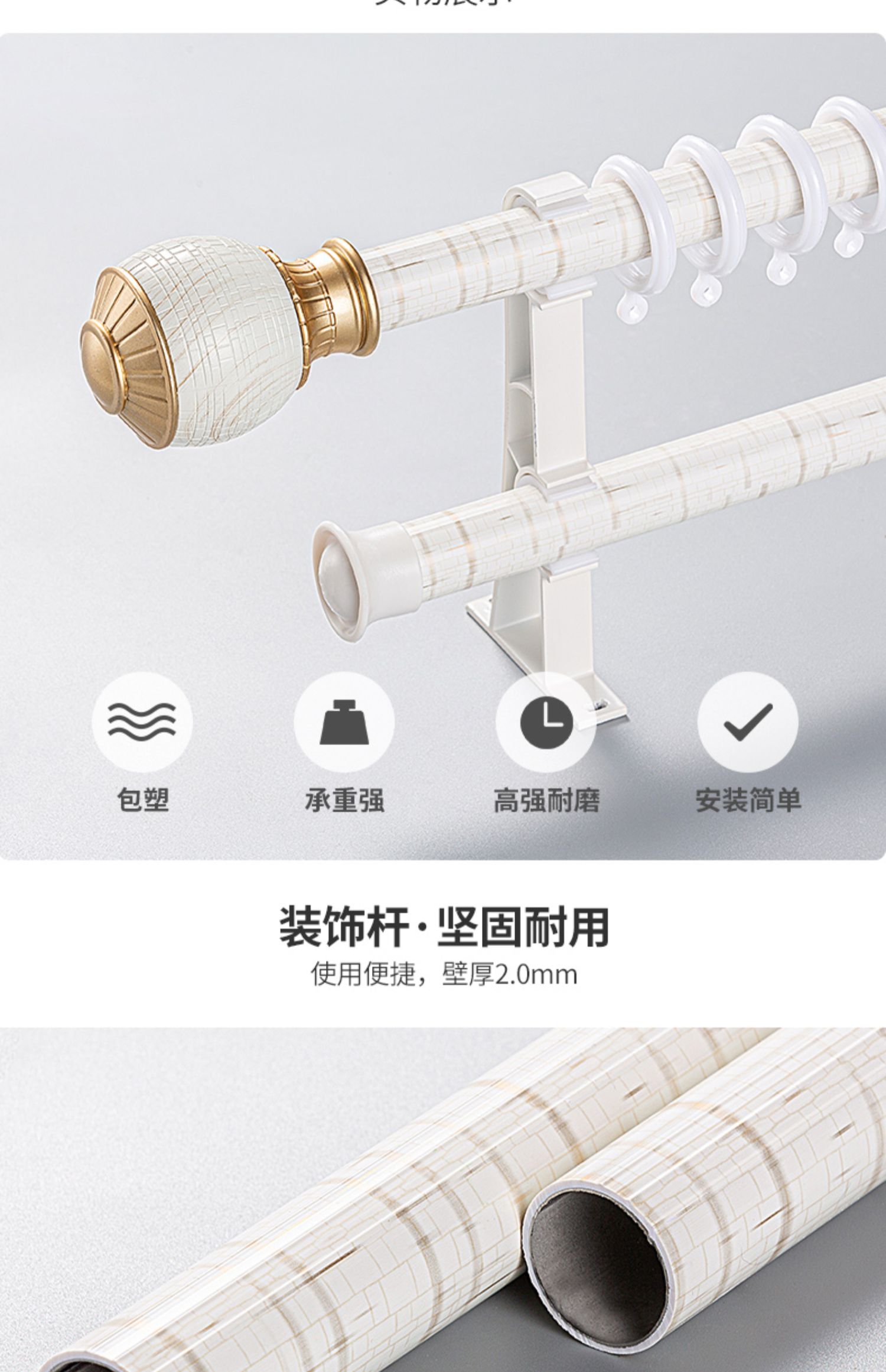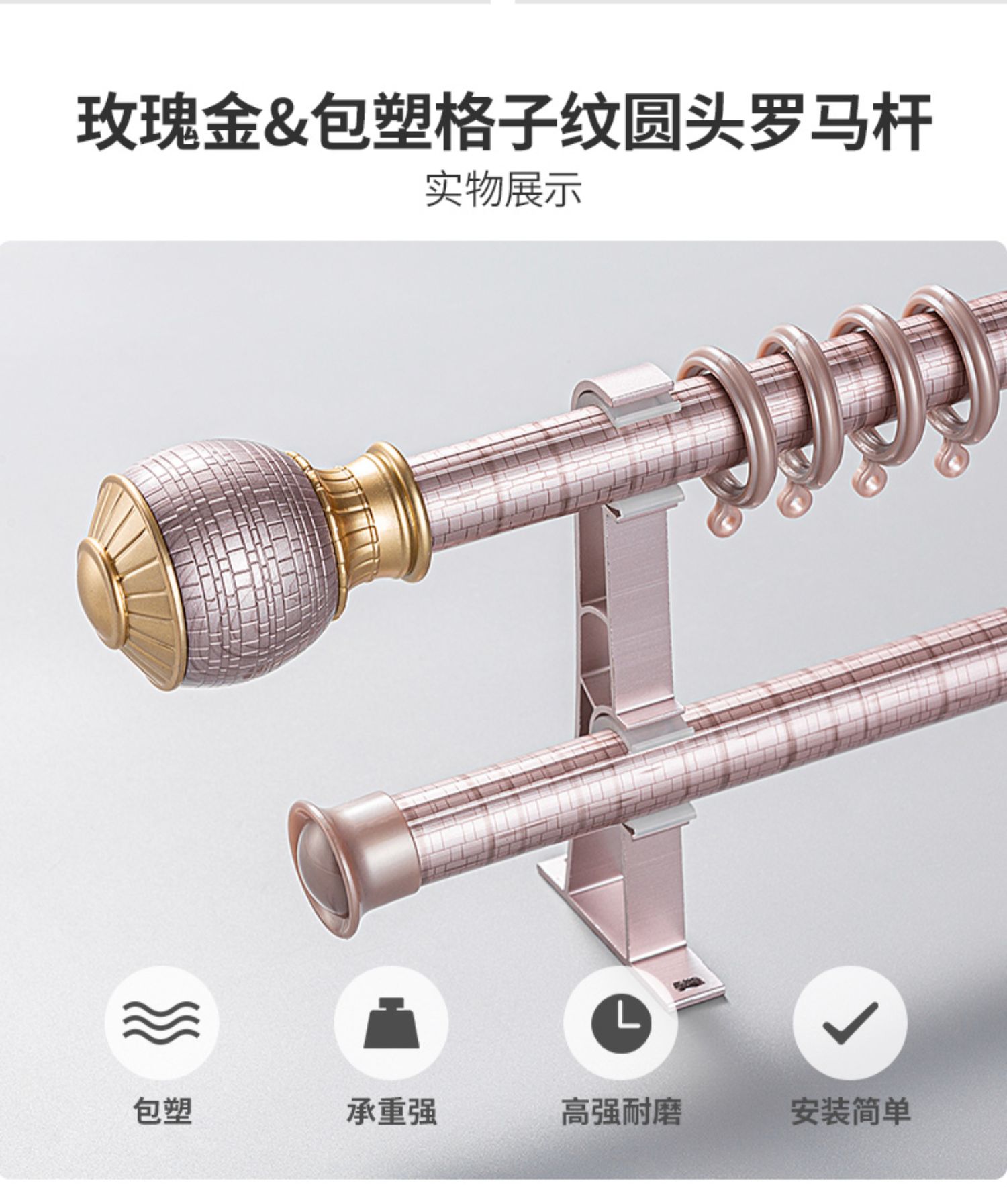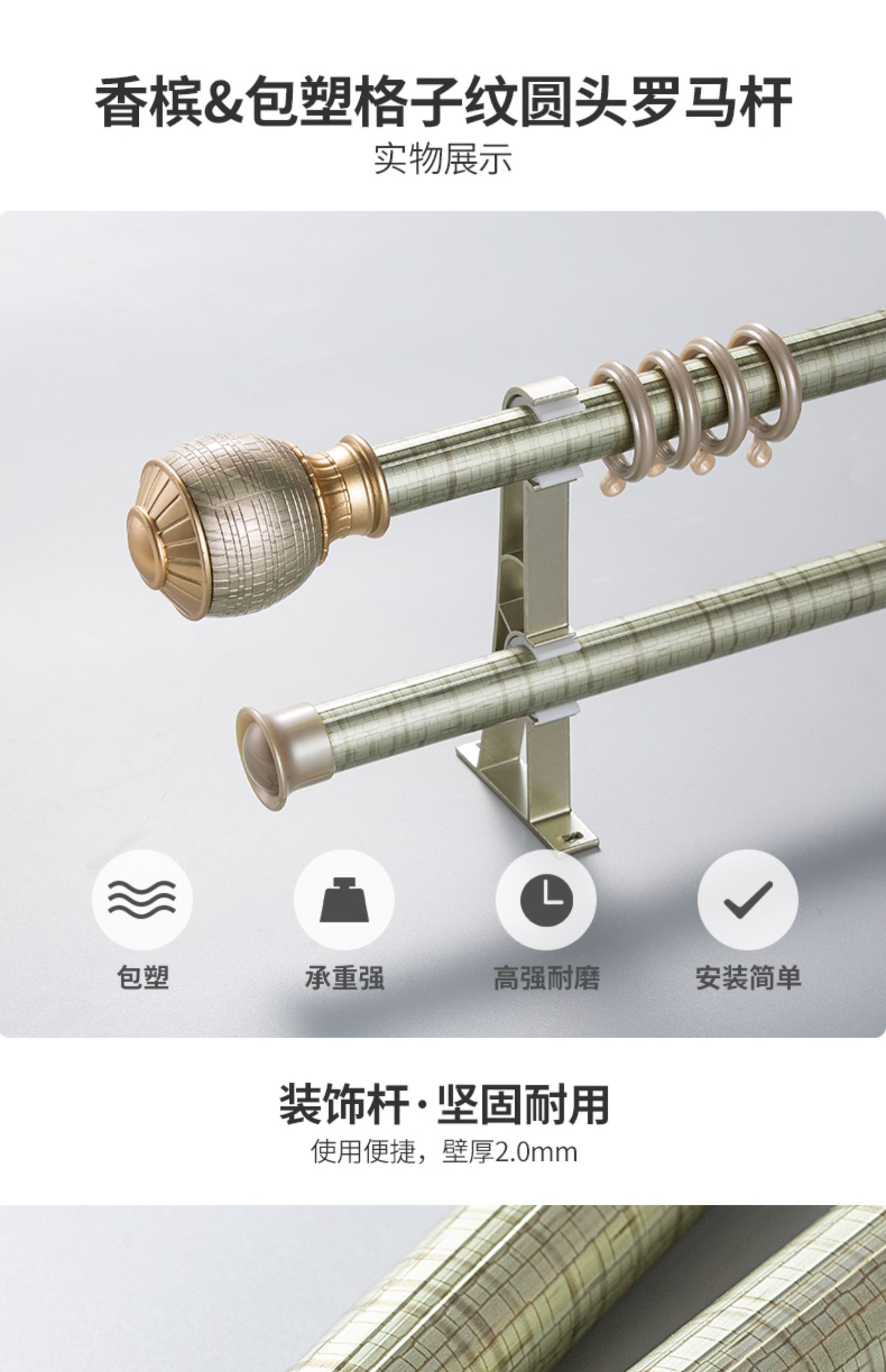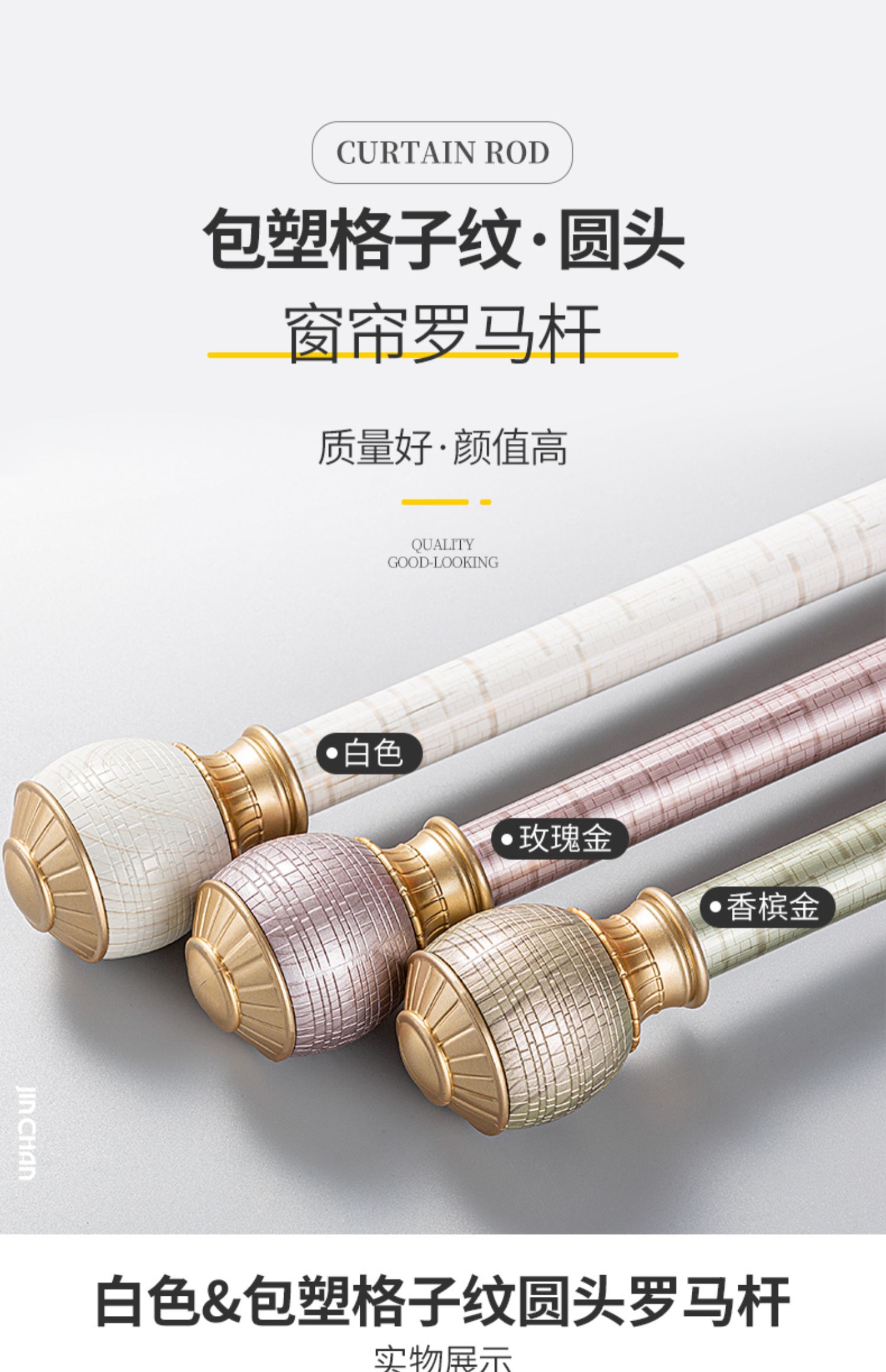 #罗马杆 #金蝉现代简约格子纹圆头罗马杆窗帘杆