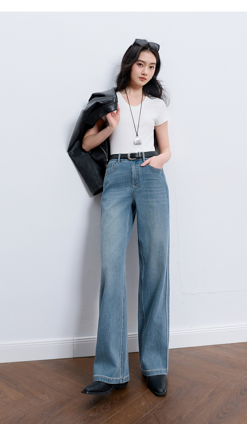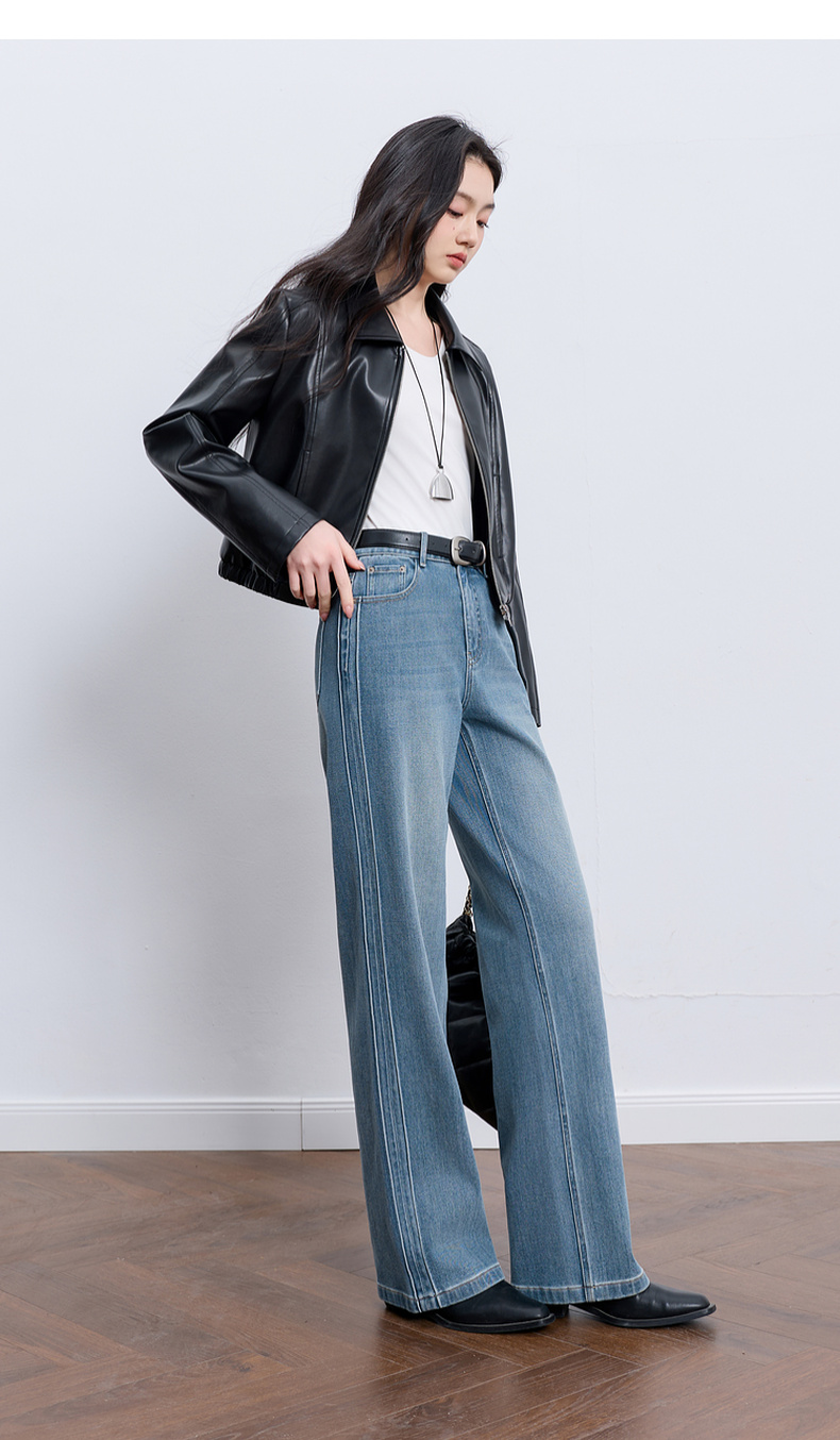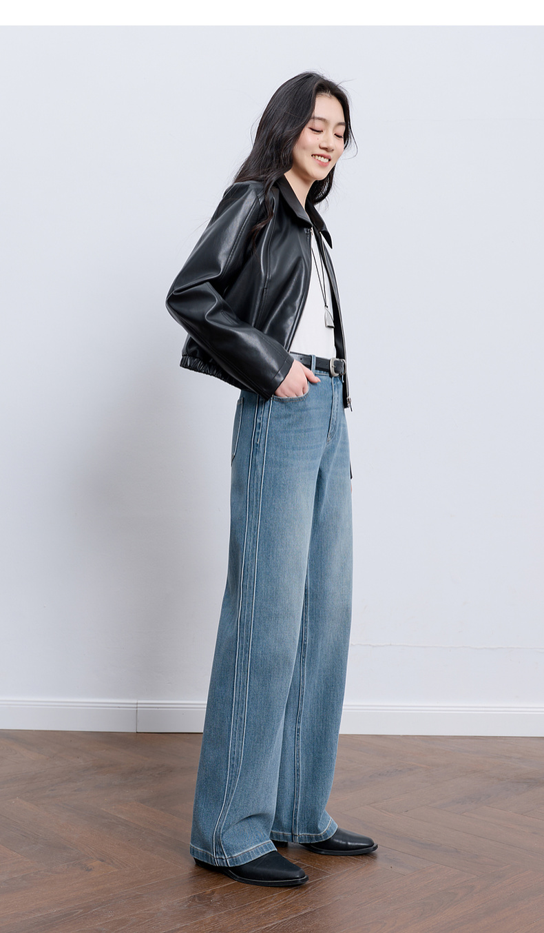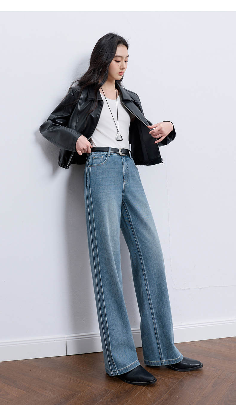 三彩2026春季新款休闲牛仔裤宽松窄版阔腿裤长裤简约M