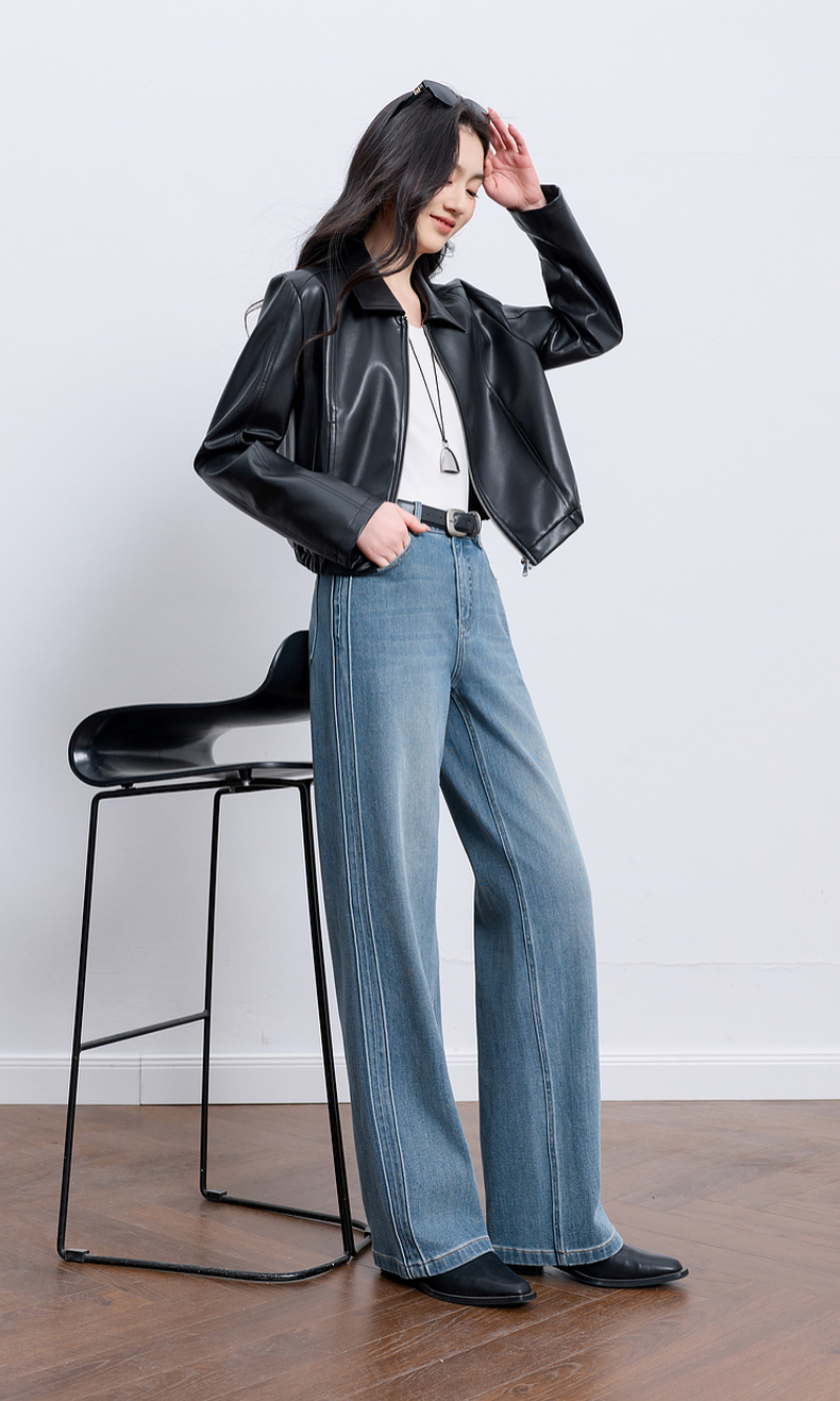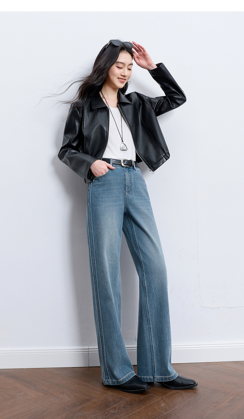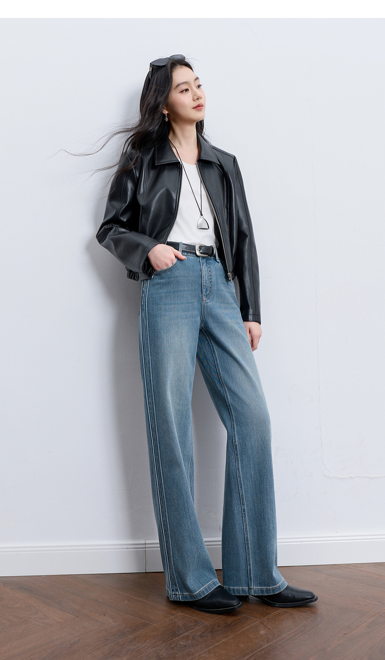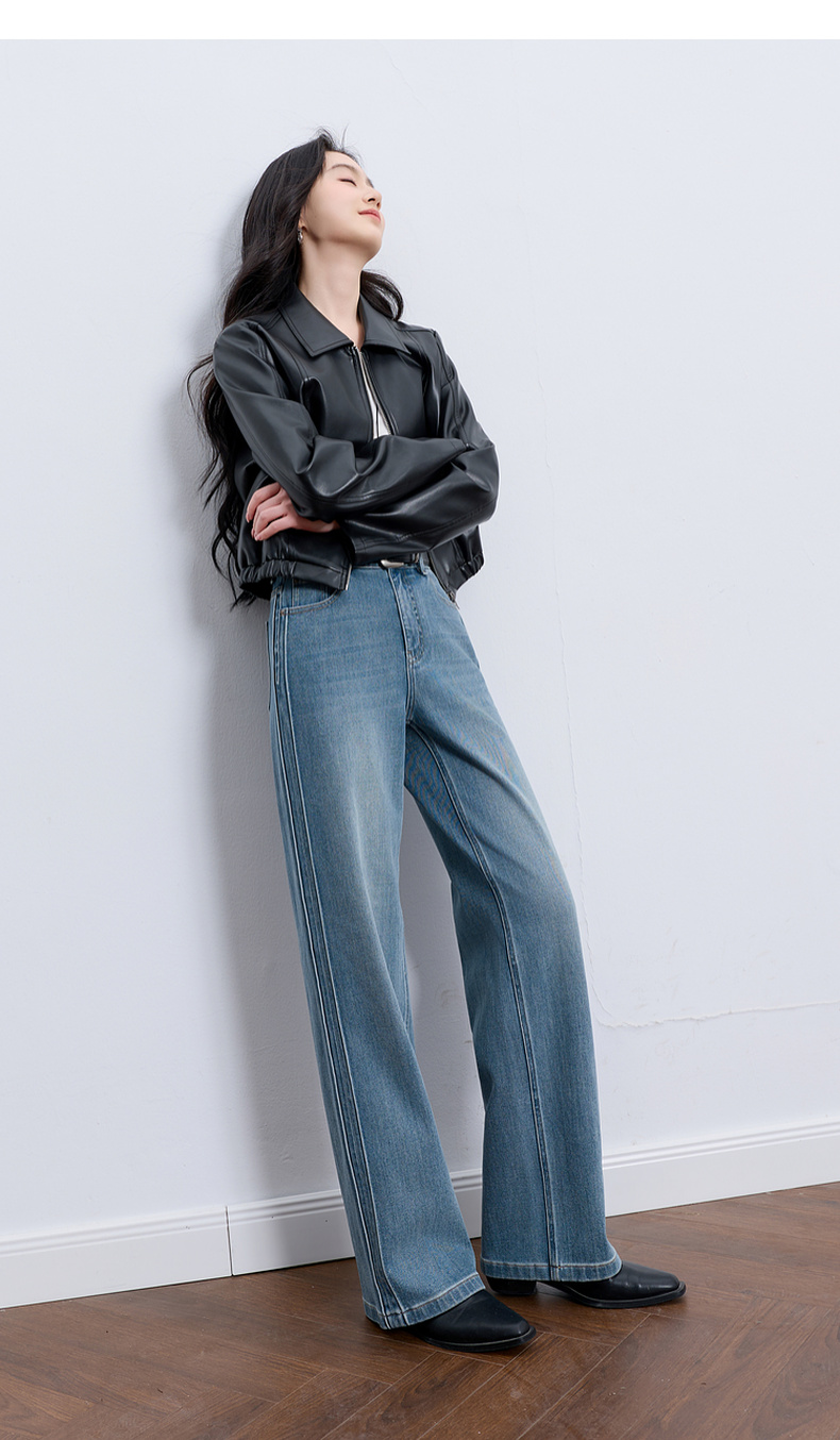 三彩2026春季新款休闲牛仔裤宽松窄版阔腿裤长裤简约M