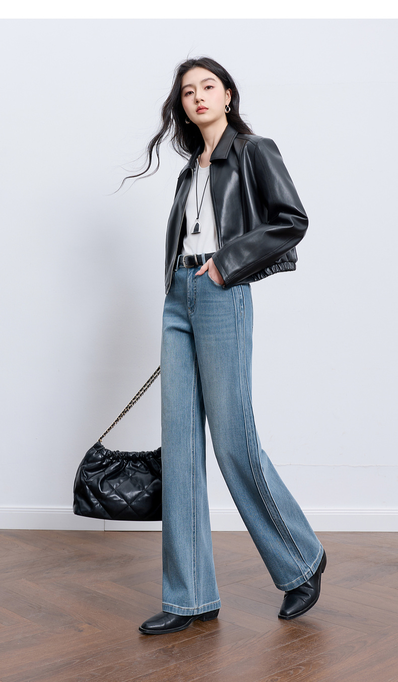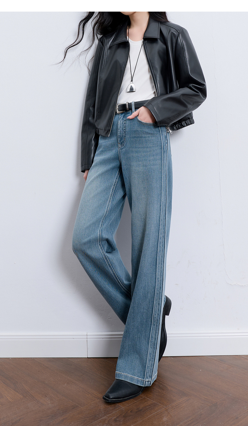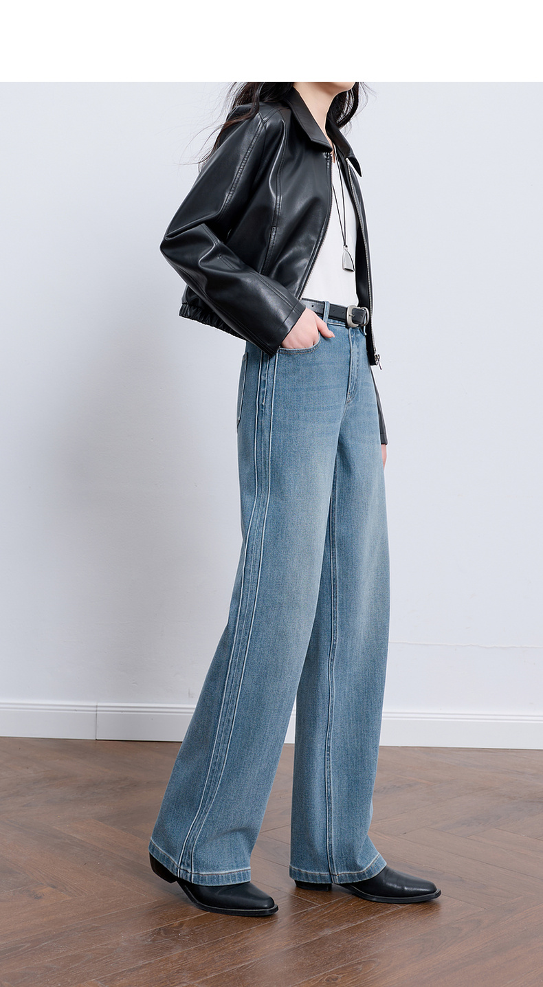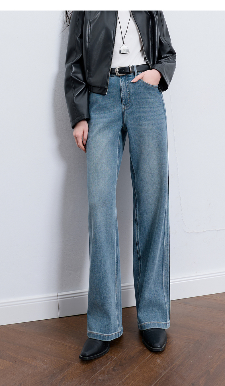 三彩2026春季新款休闲牛仔裤宽松窄版阔腿裤长裤简约M