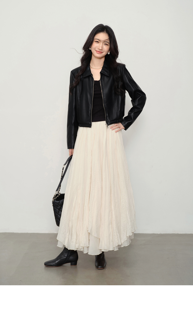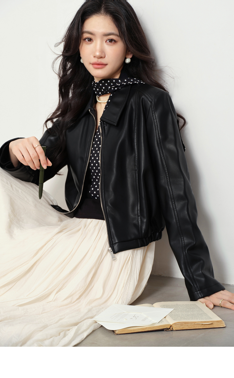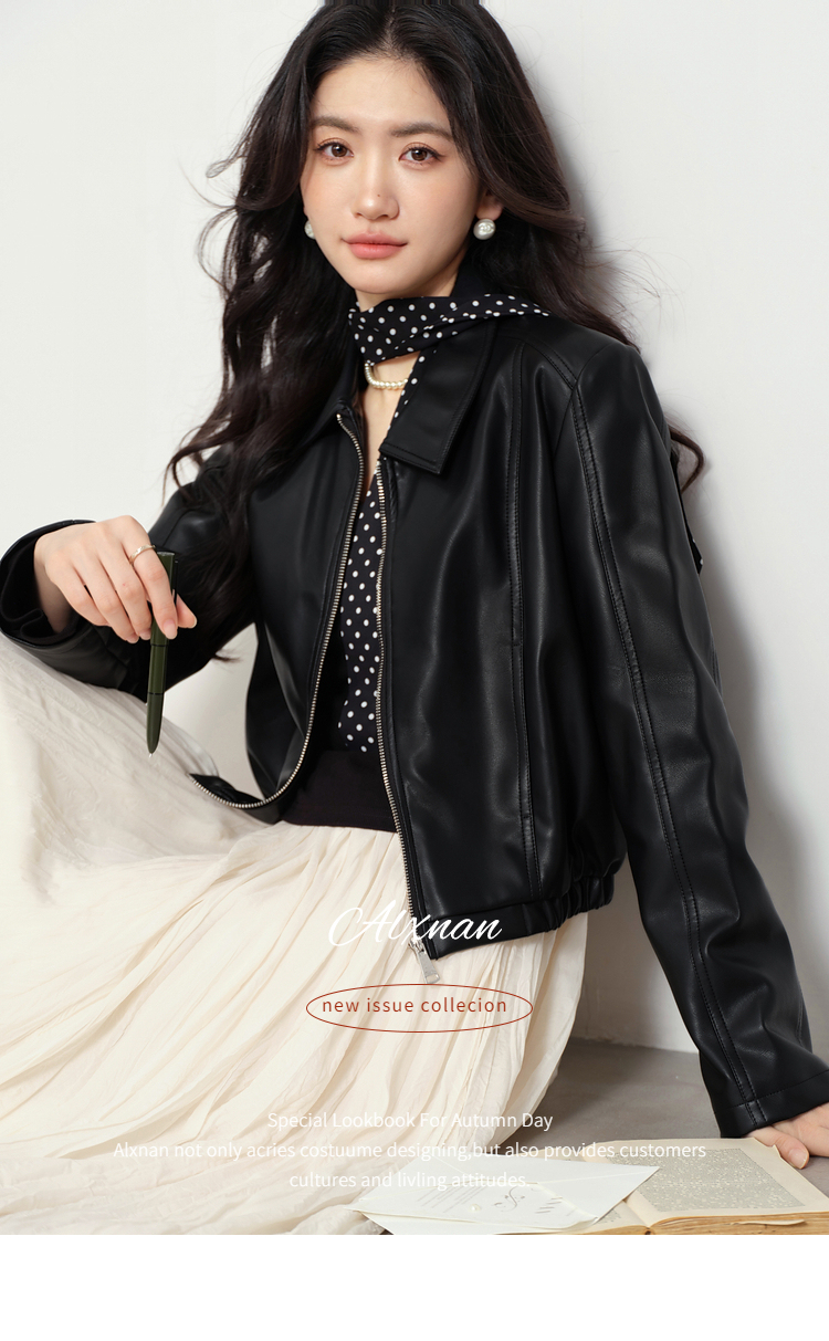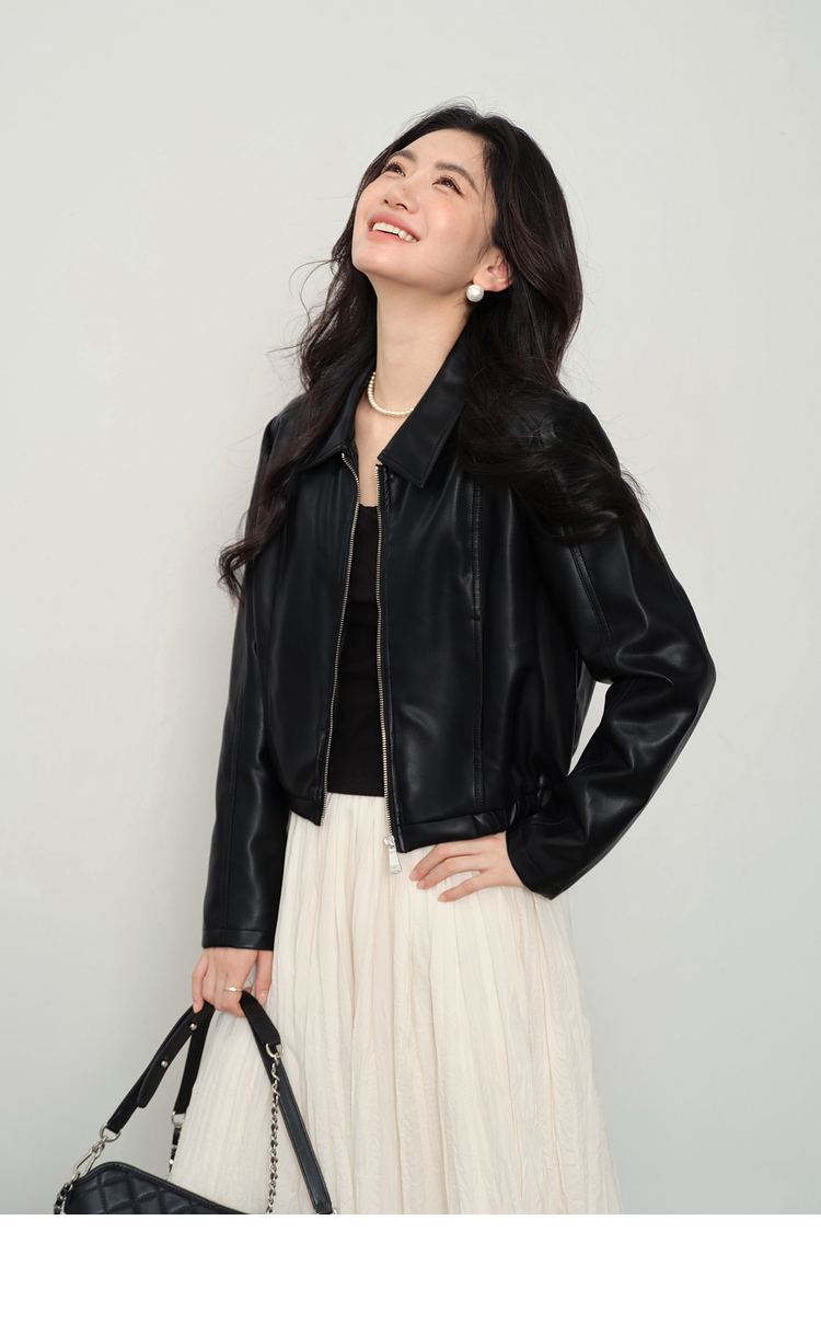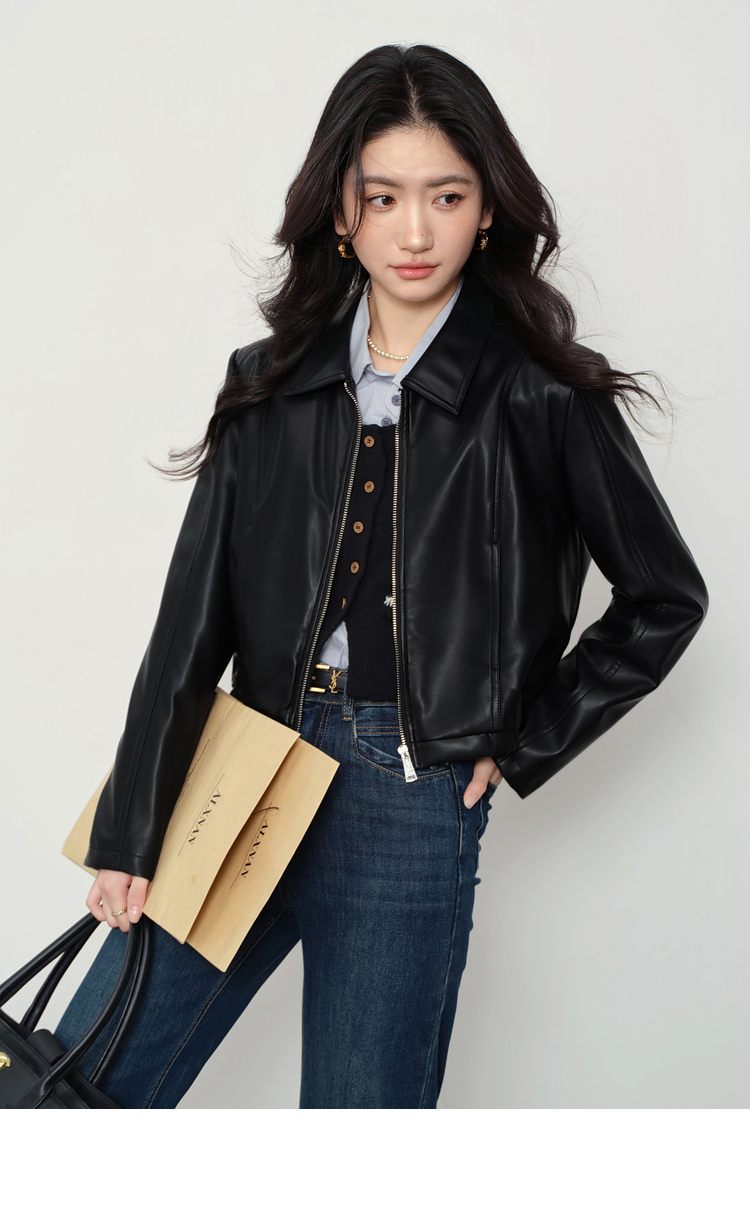 鹿向南「巴黎夜檀」短款黑色皮衣外套女秋冬高级感小个子气质夹克