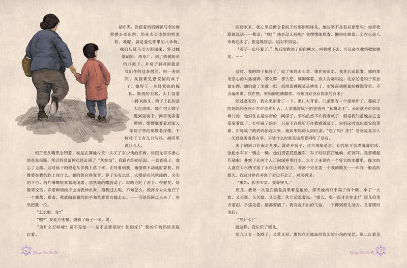 20年代末,六岁的小姑娘林英子住在北京城南的一条小胡同里。经常痴立在胡同口寻找“疯”女人秀贞,她是英子结交的*个朋友。秀贞曾与一个大学生暗中相爱,后大学生被警察抓走,秀贞生下的女儿小桂子又被家人扔到城根下,生死不明。英子对她非常同情。英子得知小伙伴妞儿的身世很像小桂子,又发现她脖颈后的青记,急忙带她去找秀贞。秀贞与离散六年的女儿相认后,立刻带妞儿去找寻爸爸,结果母女俩惨死在火车轮下。后英子一家迁居新帘子胡同。英子又在附近的荒园中认识了一个厚嘴唇的年轻人。他为了供给弟弟上学,不得不去偷东西。英子觉得他很善良,但又分不清他是好人还是坏人。不久,英子在荒草地上捡到一个小铜佛,被警察局暗探发现,*后巡警抓走了这个年轻人,这件事使英子非常难过。后来,被赶出家门的兰姨娘来到了英子家,英子发现爸爸对兰姨娘的味道不对,英子很伤心,智慧地想了一个办法,把兰姨娘介绍给了德先叔,使他们俩相爱了,*后他们一起乘马车走了,爸爸却很难过。
