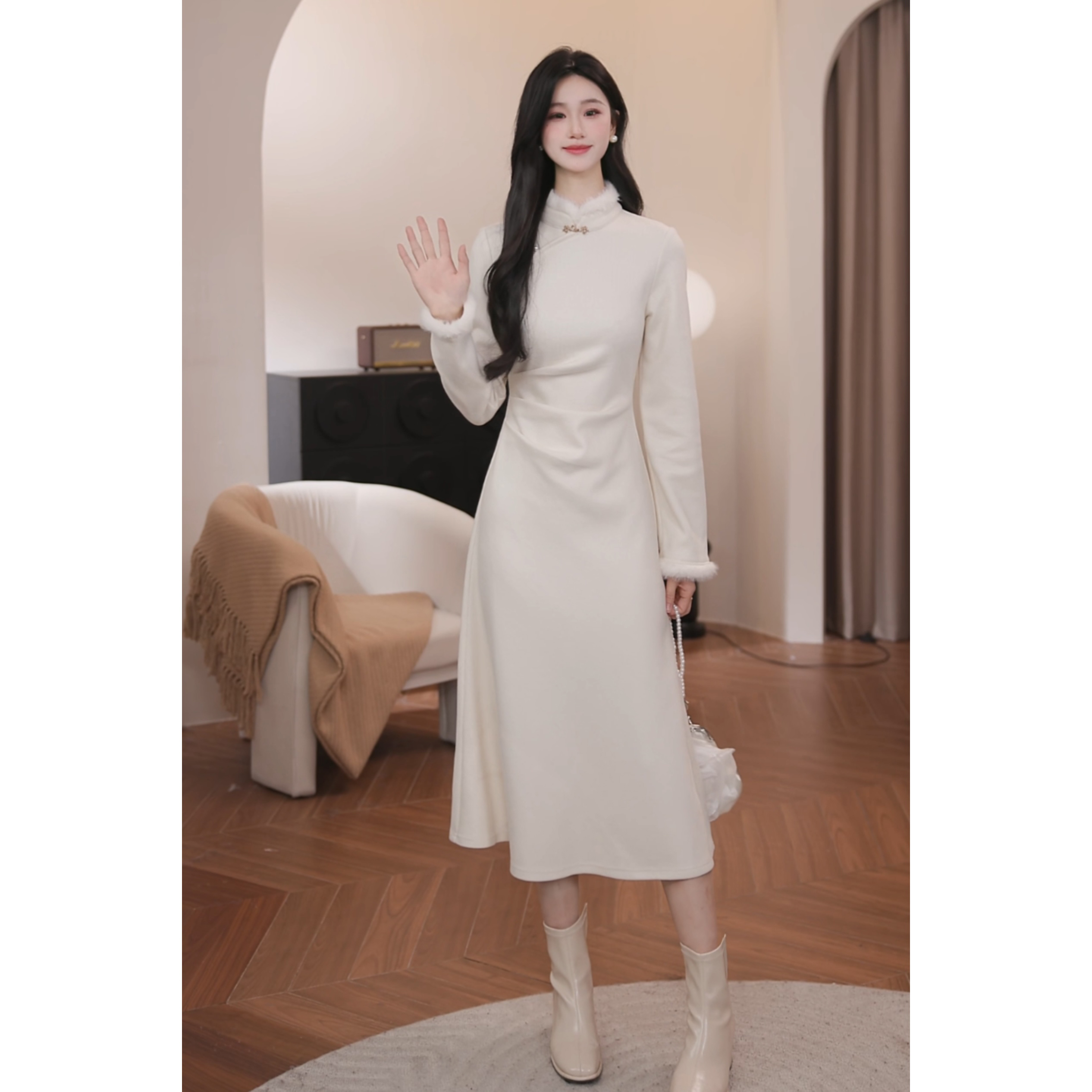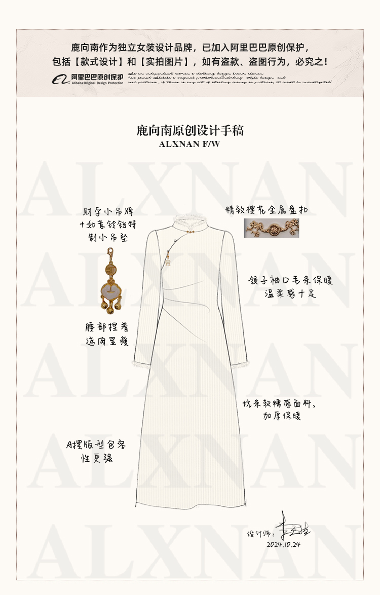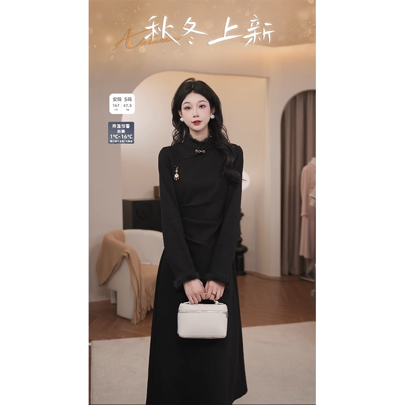 鹿向南【国风诗】温柔加厚新中式长裙冬天跨年裙子QJD00168