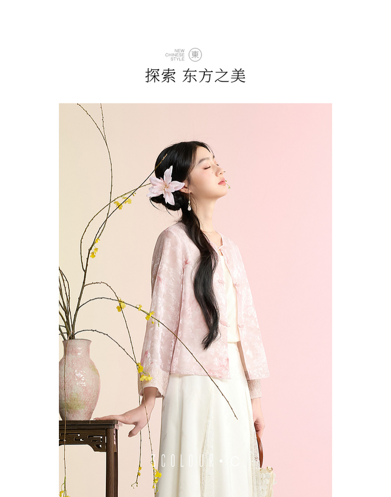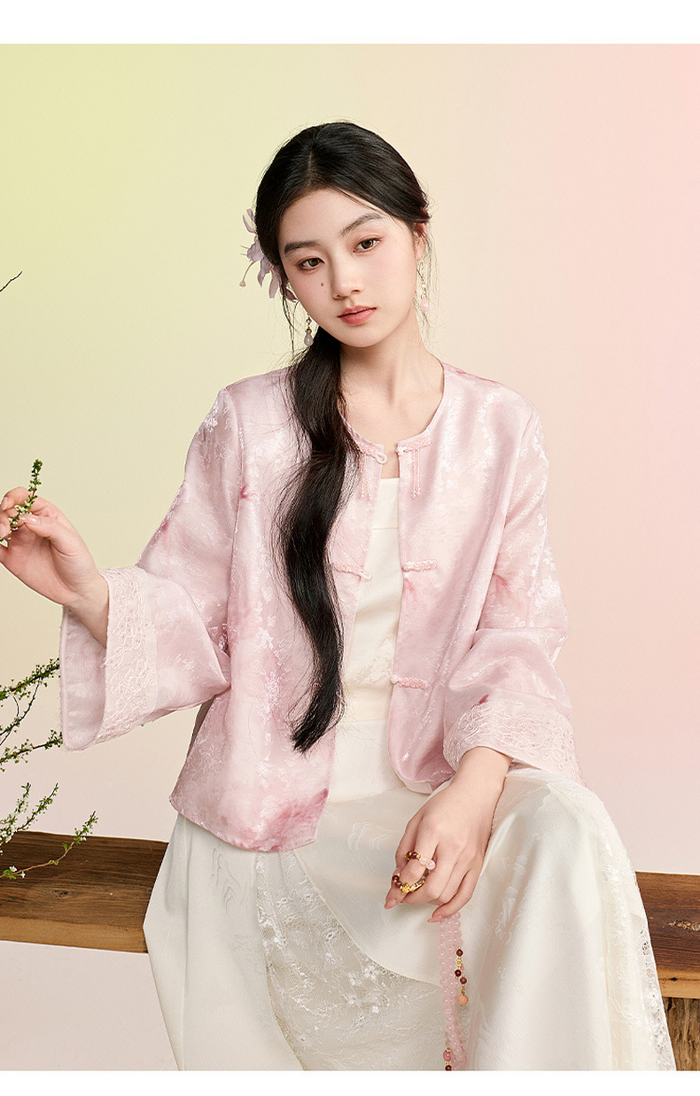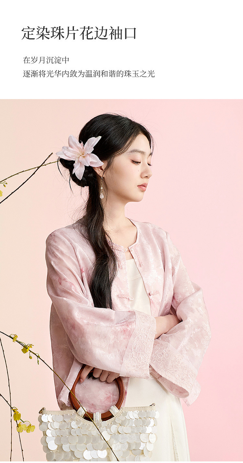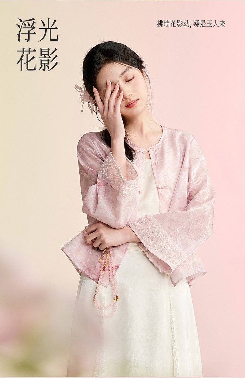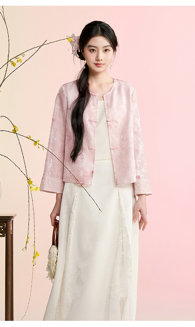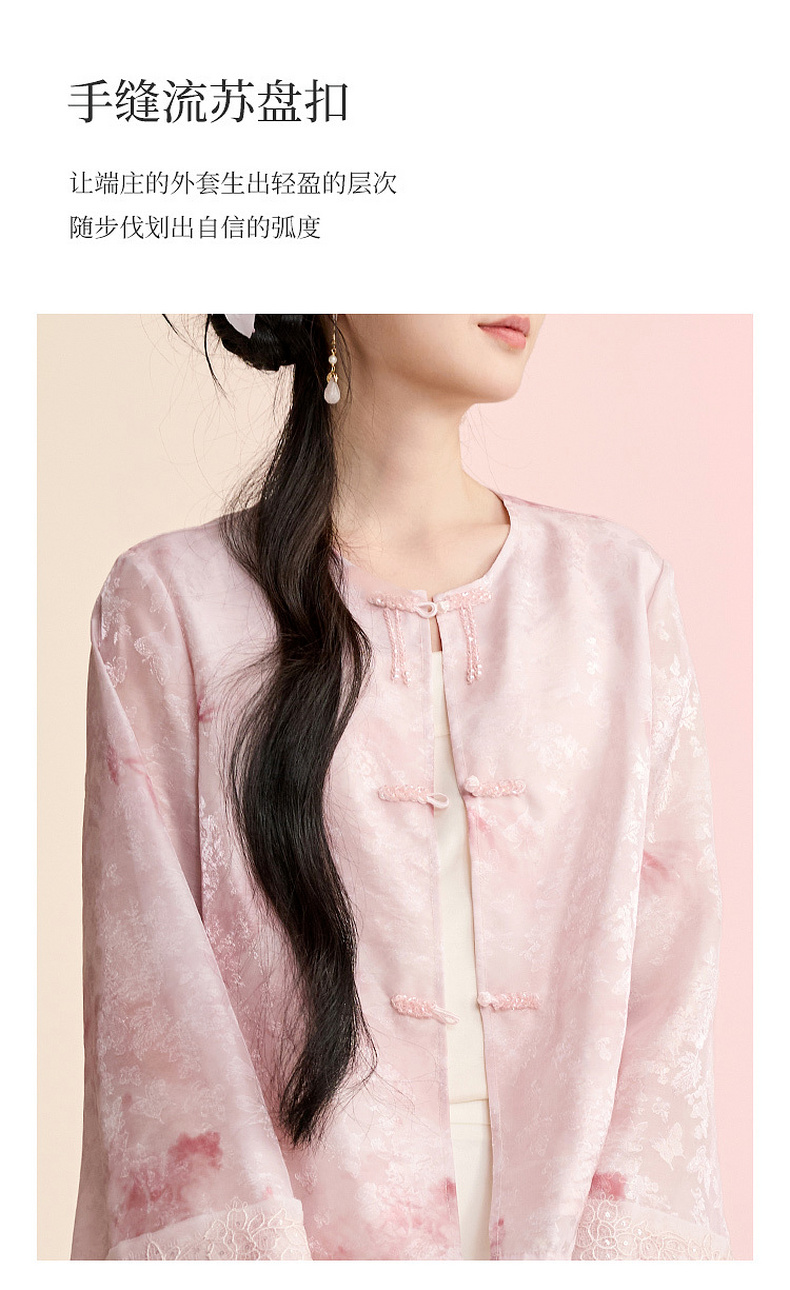 三彩【浮光花影】2026春季新款新中式提花外套盘扣开衫宽松C