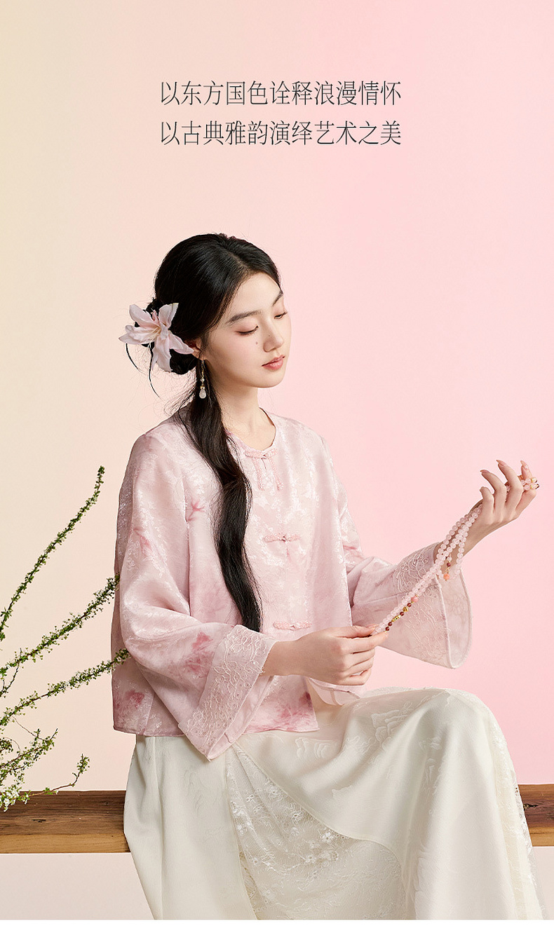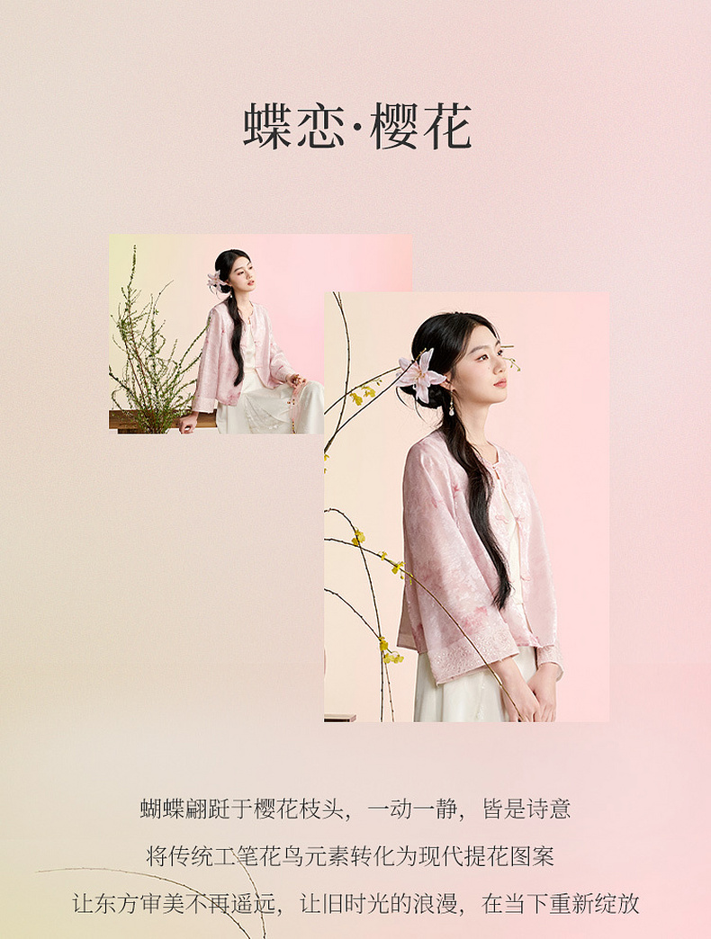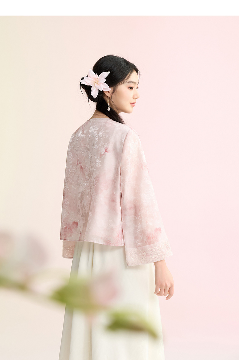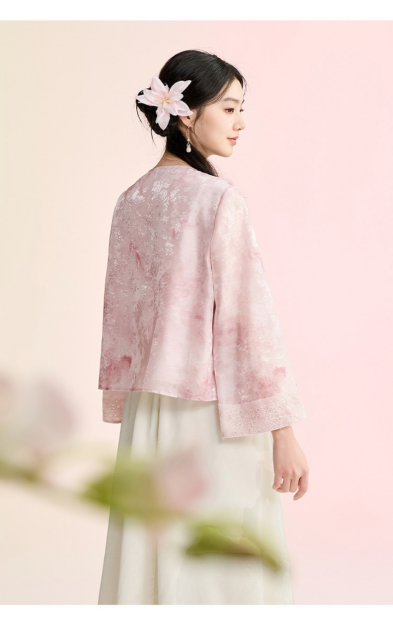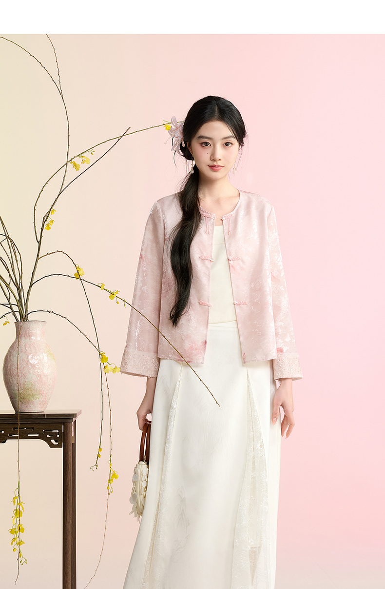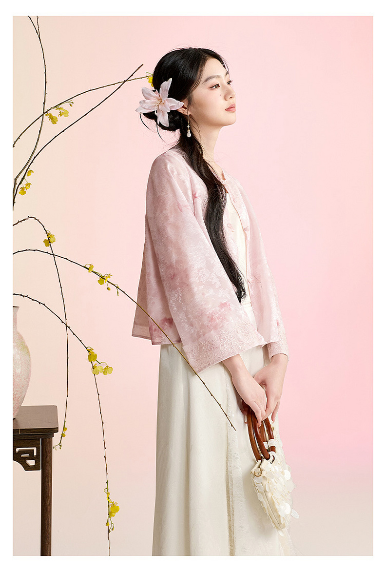 三彩【浮光花影】2026春季新款新中式提花外套盘扣开衫宽松C
