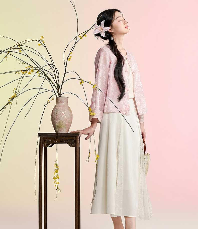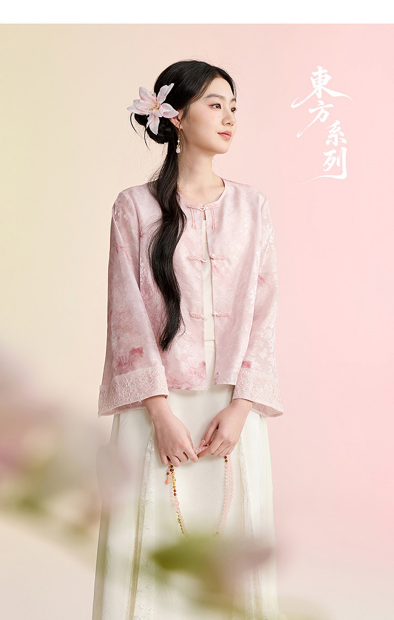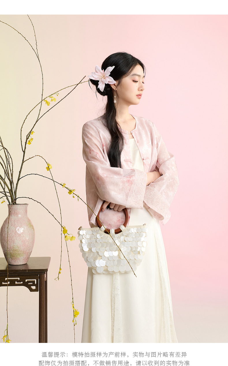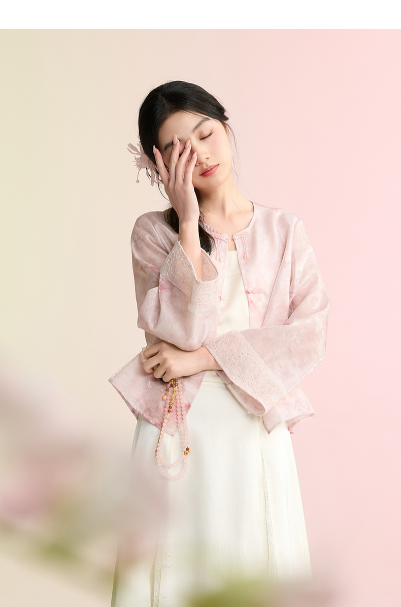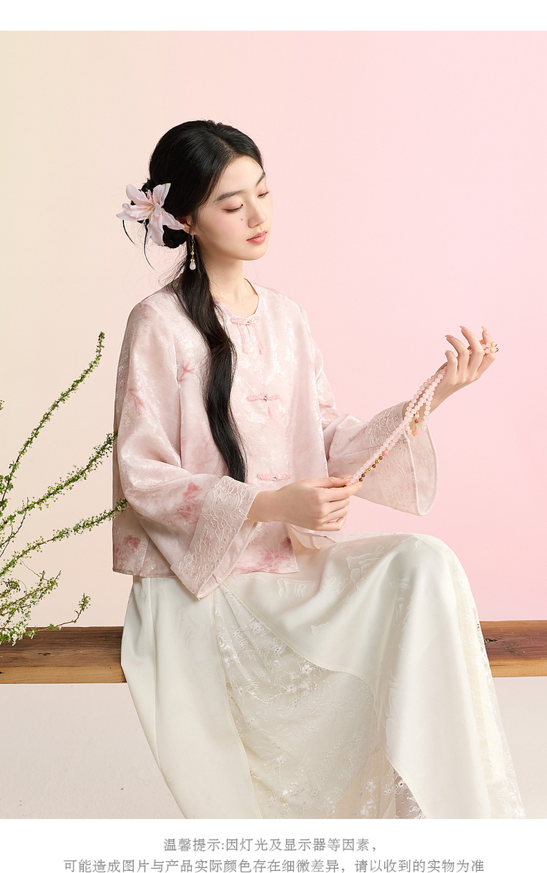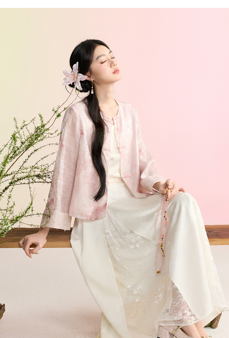 三彩【浮光花影】2026春季新款新中式提花外套盘扣开衫宽松C