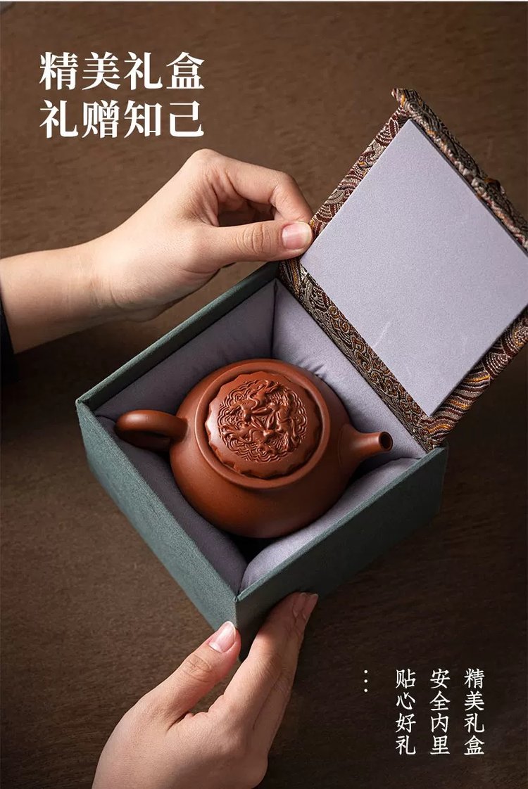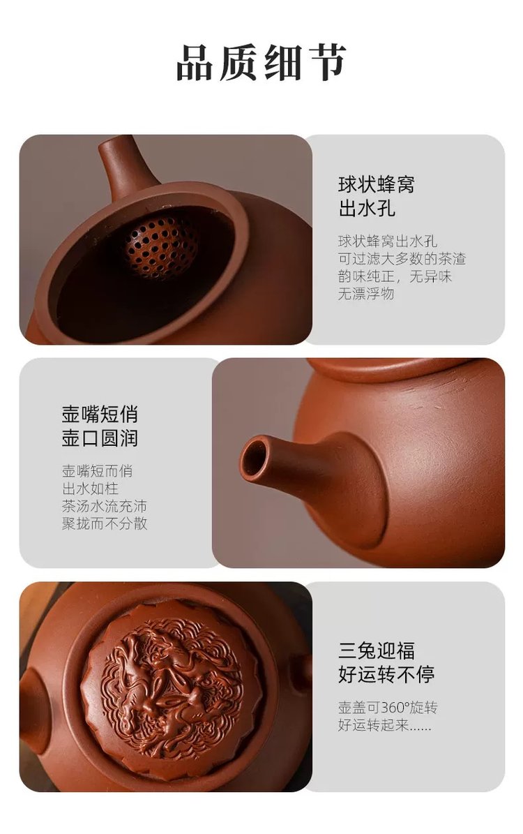 敦煌文创·三兔迎福朱泥壶, 朱泥紫砂材质,敦煌三兔共耳雕刻壶盖,可360度旋转
