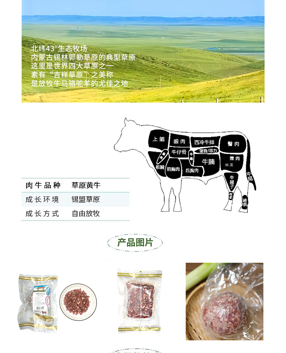 锡盟生态牛肉馅350克*2袋 包邮