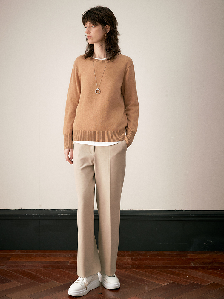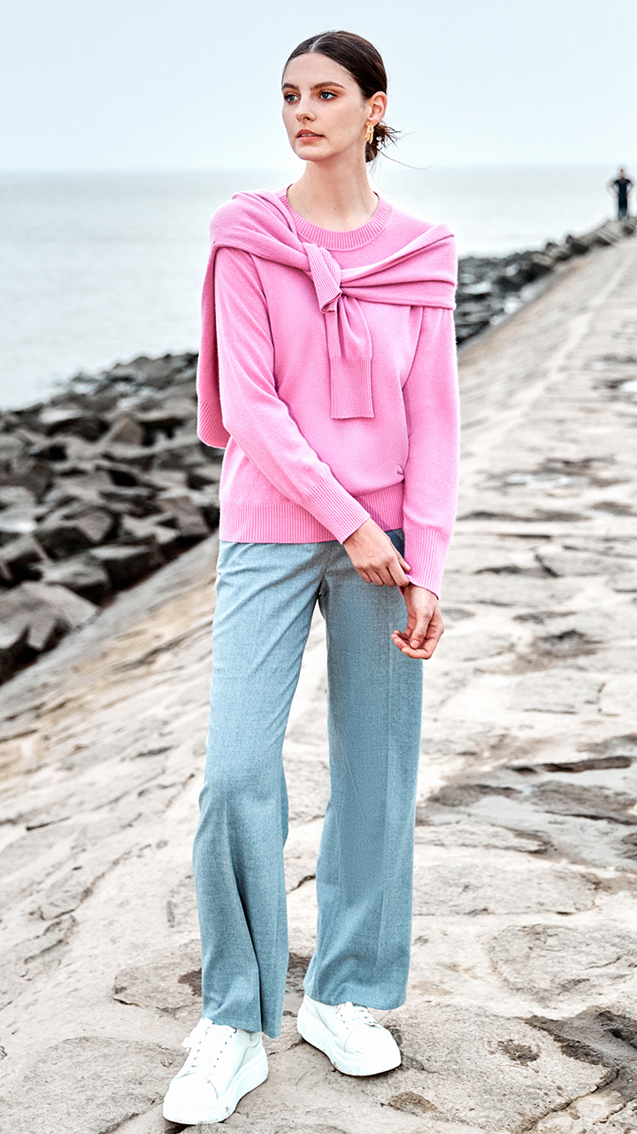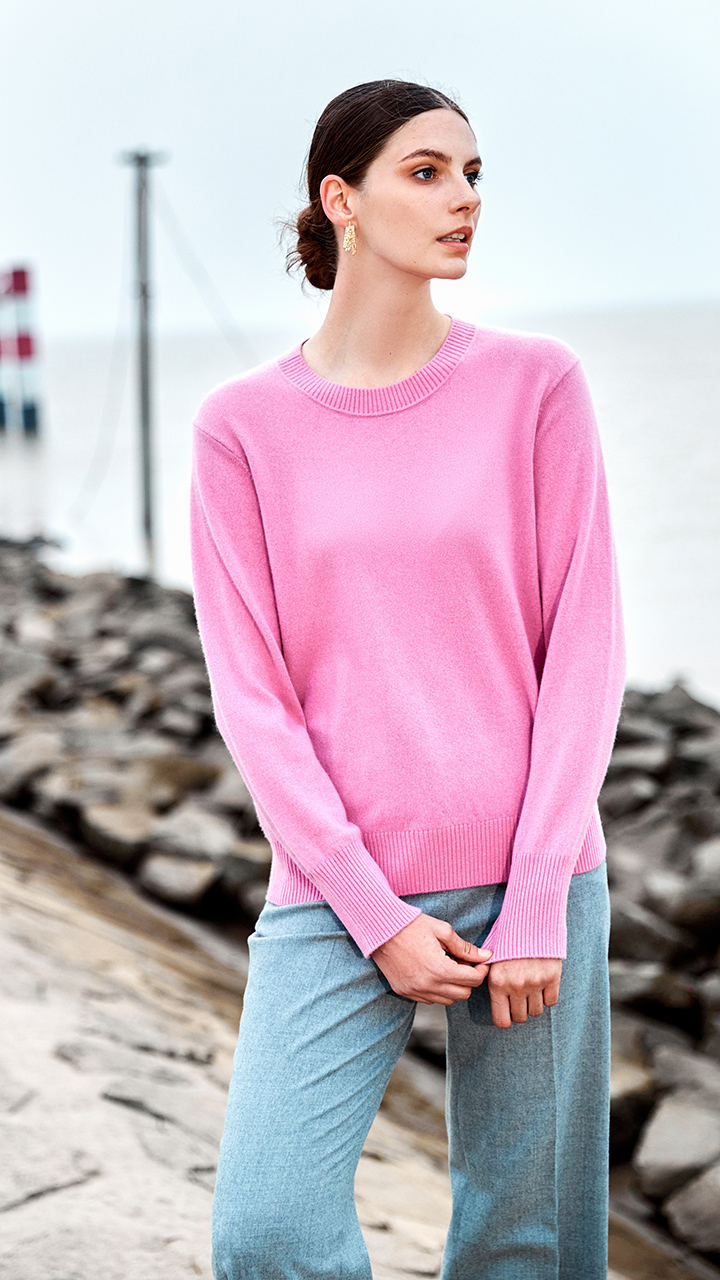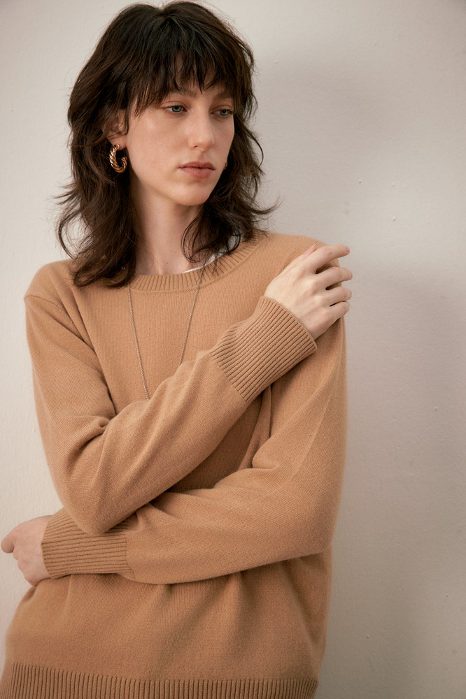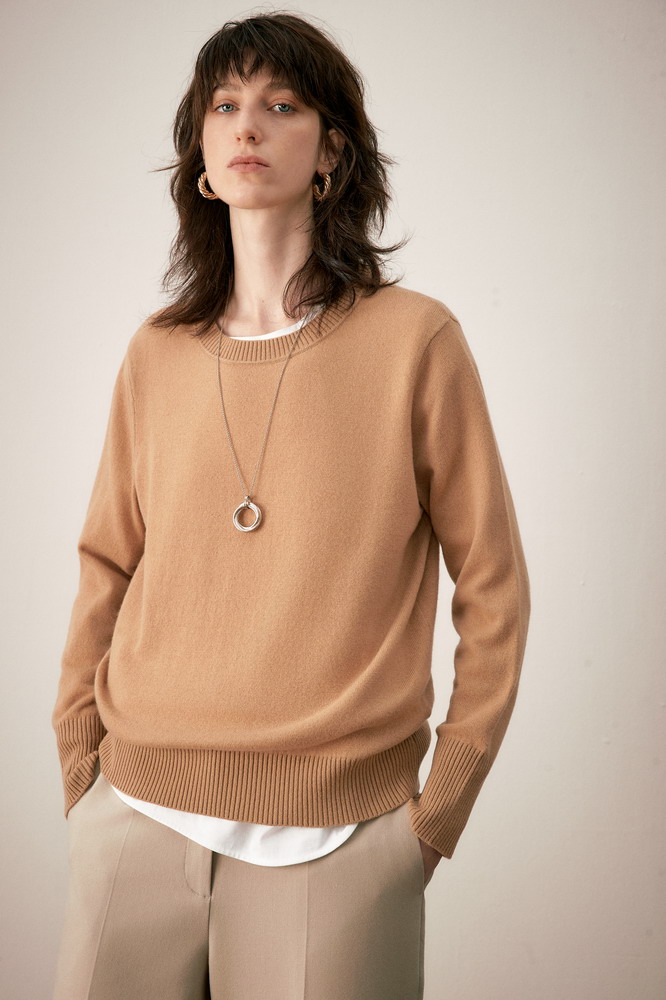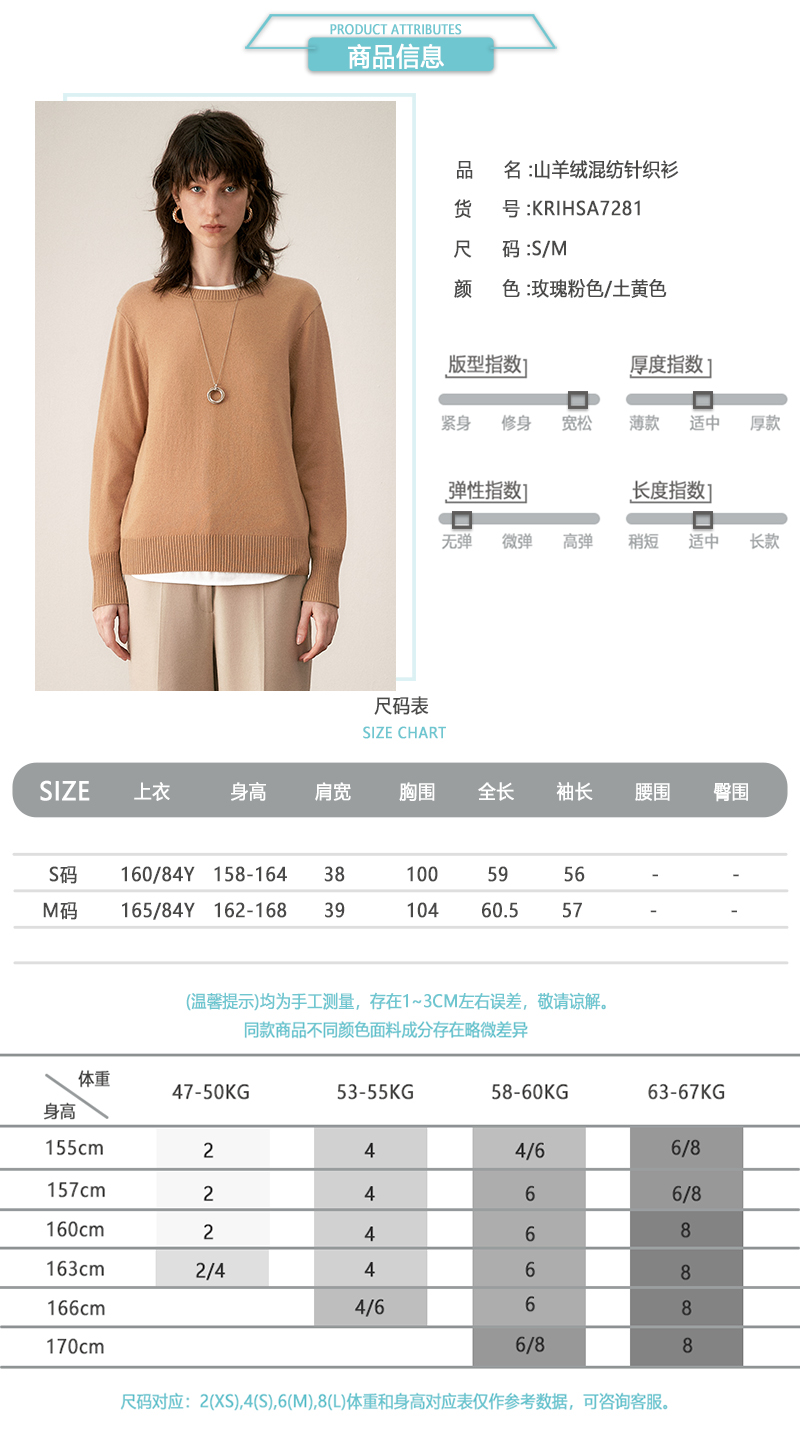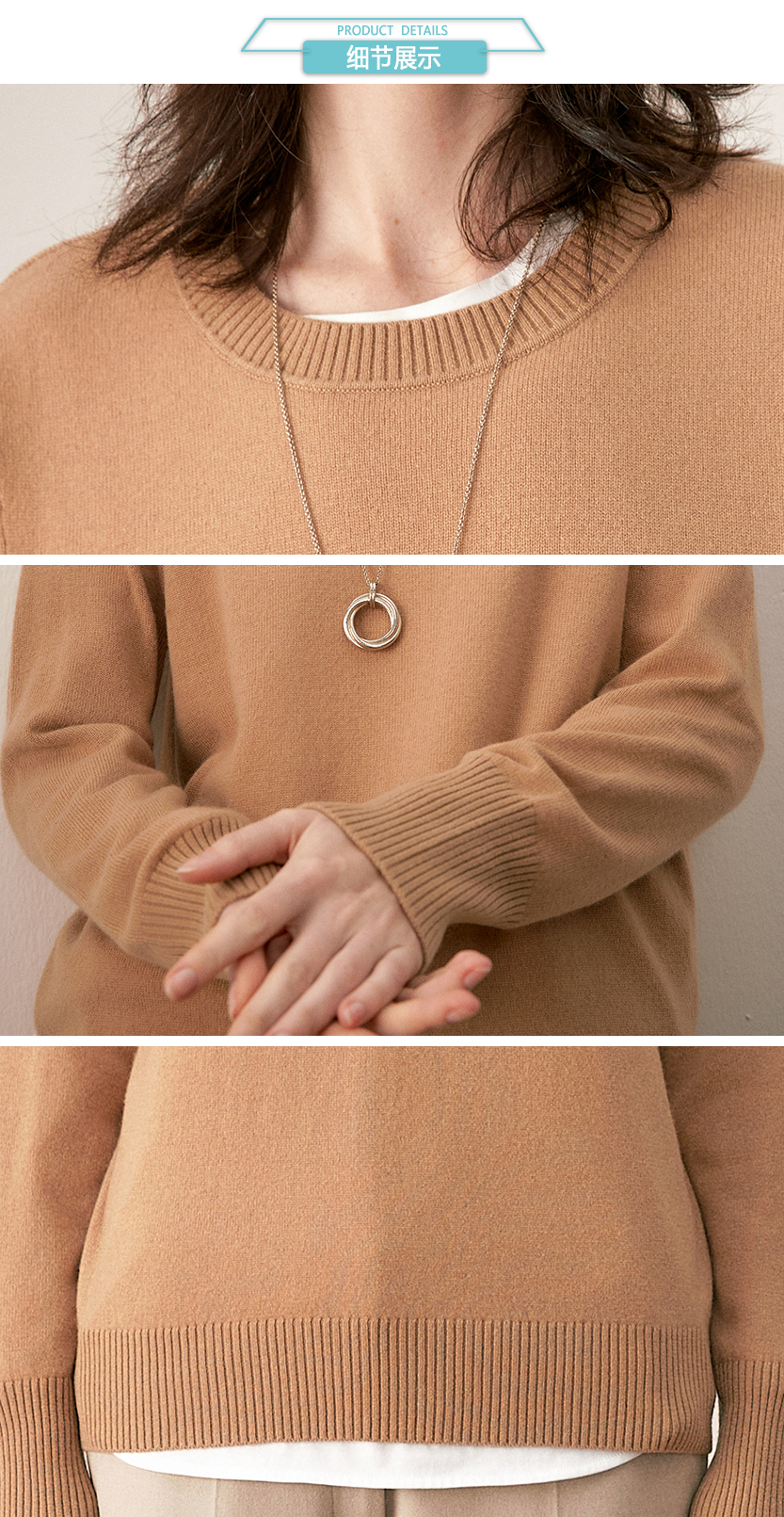 ICB日系春季通勤宽松羊绒羊毛混纺圆领套头毛衣针织毛衫商场同款