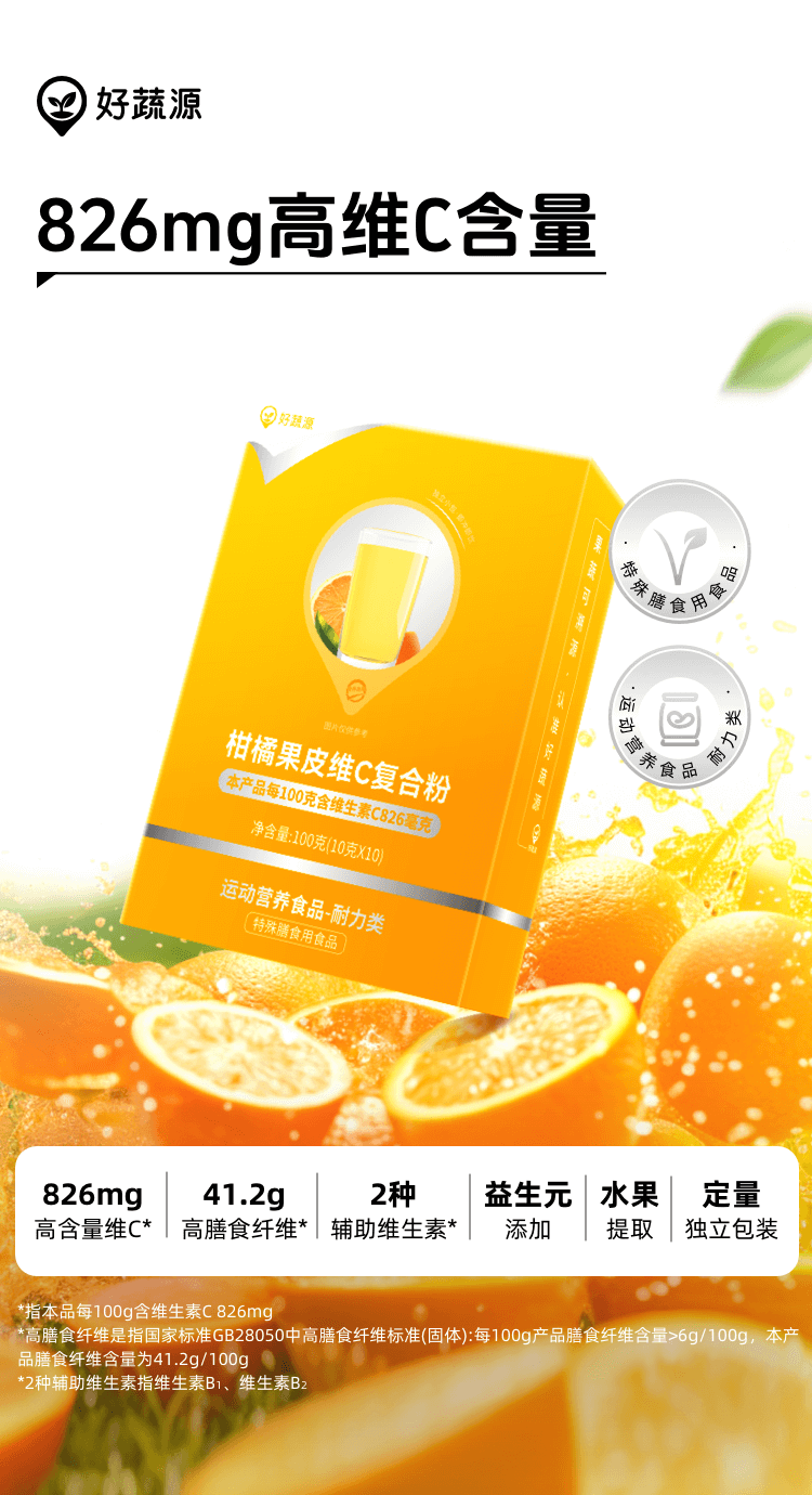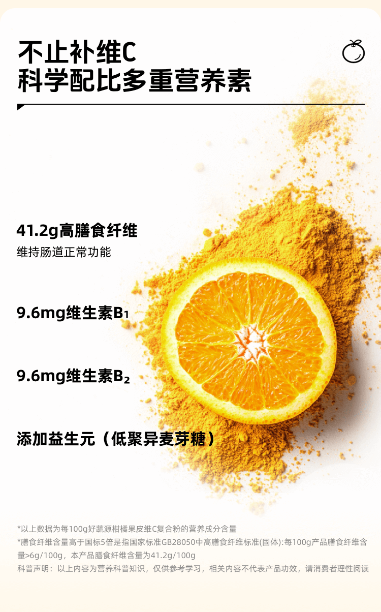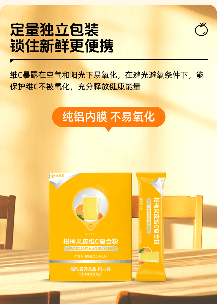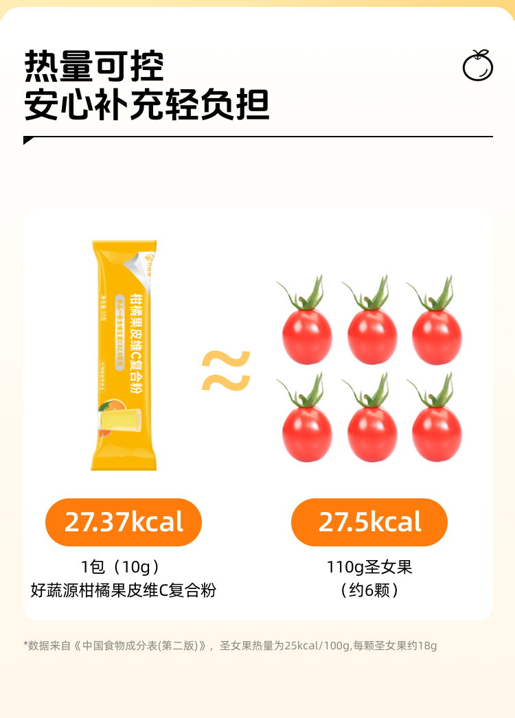 【健康活力每一天】好蔬源 柑橘果皮维C复合粉 10g*10条/盒 每时每刻鲜活维C
