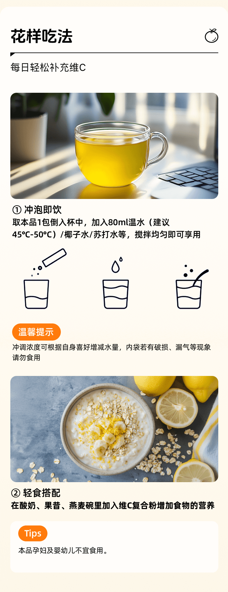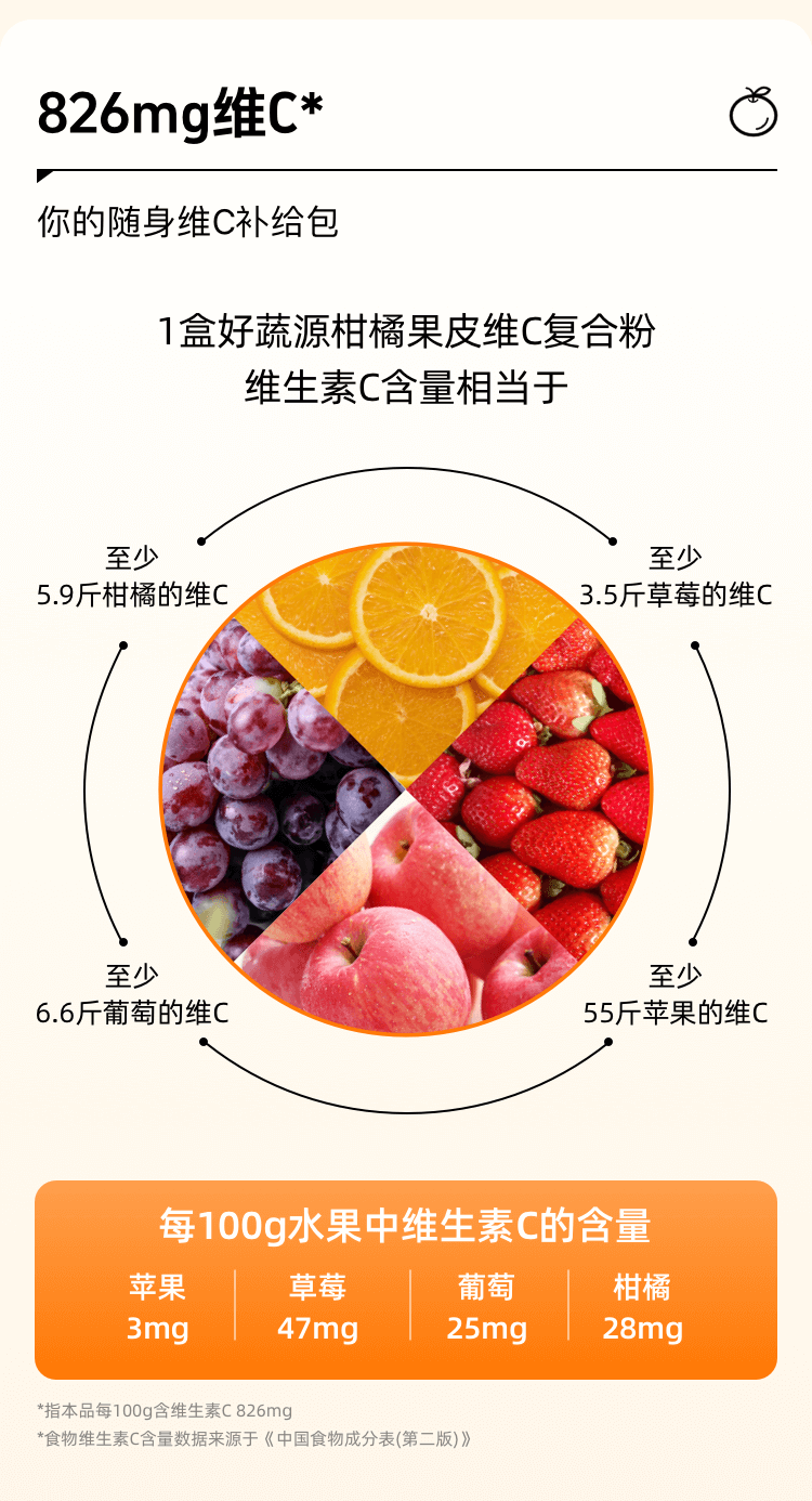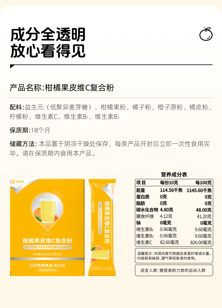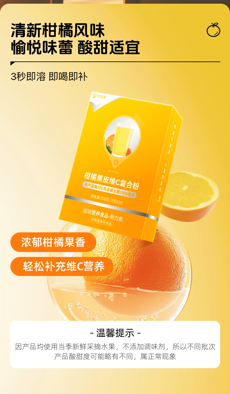 【健康活力每一天】好蔬源 柑橘果皮维C复合粉 10g*10条/盒 每时每刻鲜活维C