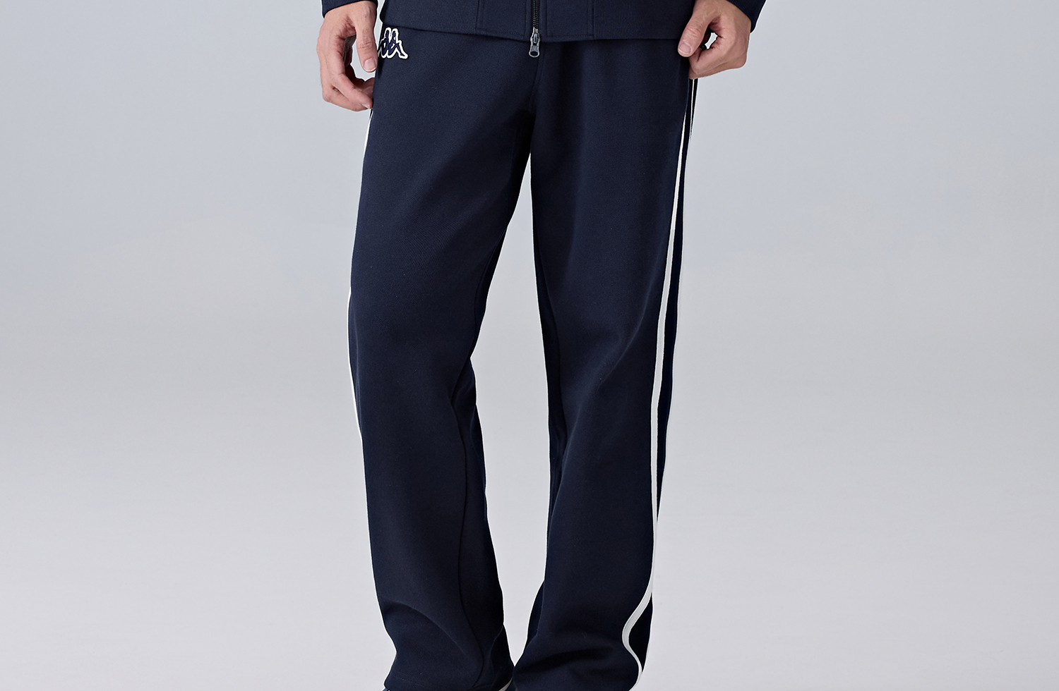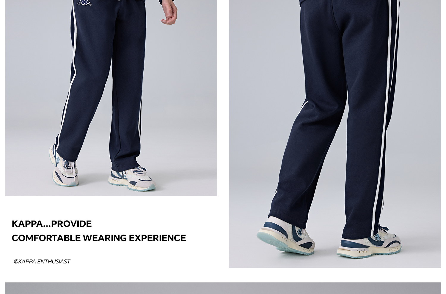 Kappa卡帕背靠背针织运动裤男款新款条纹直筒长裤休闲跑步裤裤子K0F12AK03