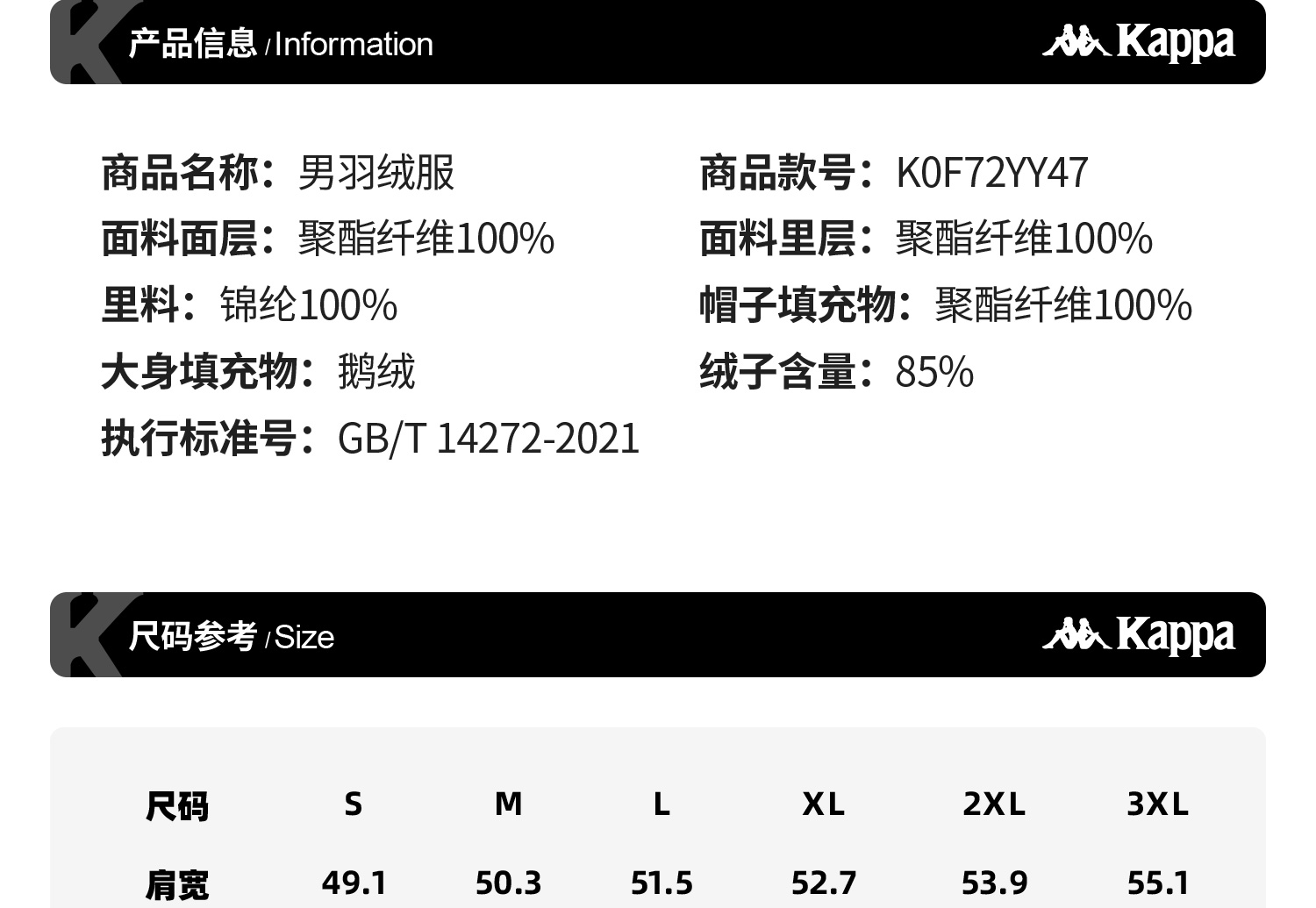 Kappa 2025冬季新款 鹅绒 保暖连帽加厚 男款羽绒服K0F72YY47