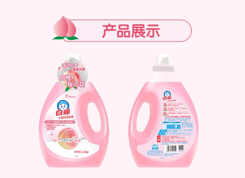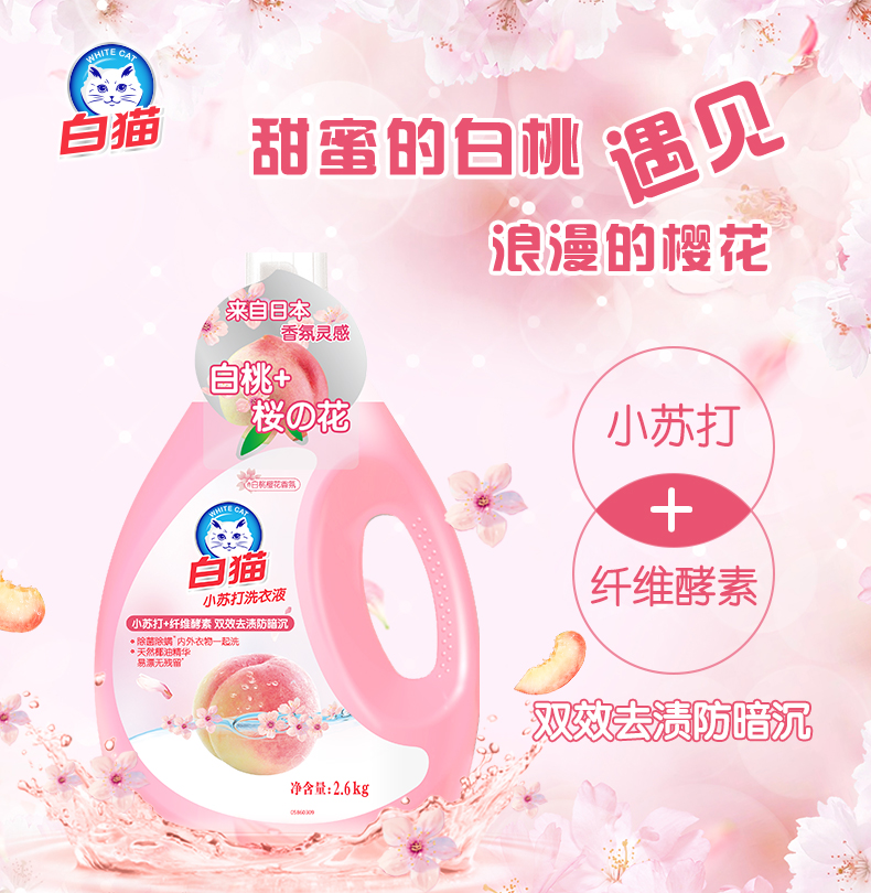白猫小苏打白桃樱花洗衣液2.6kg—rxs