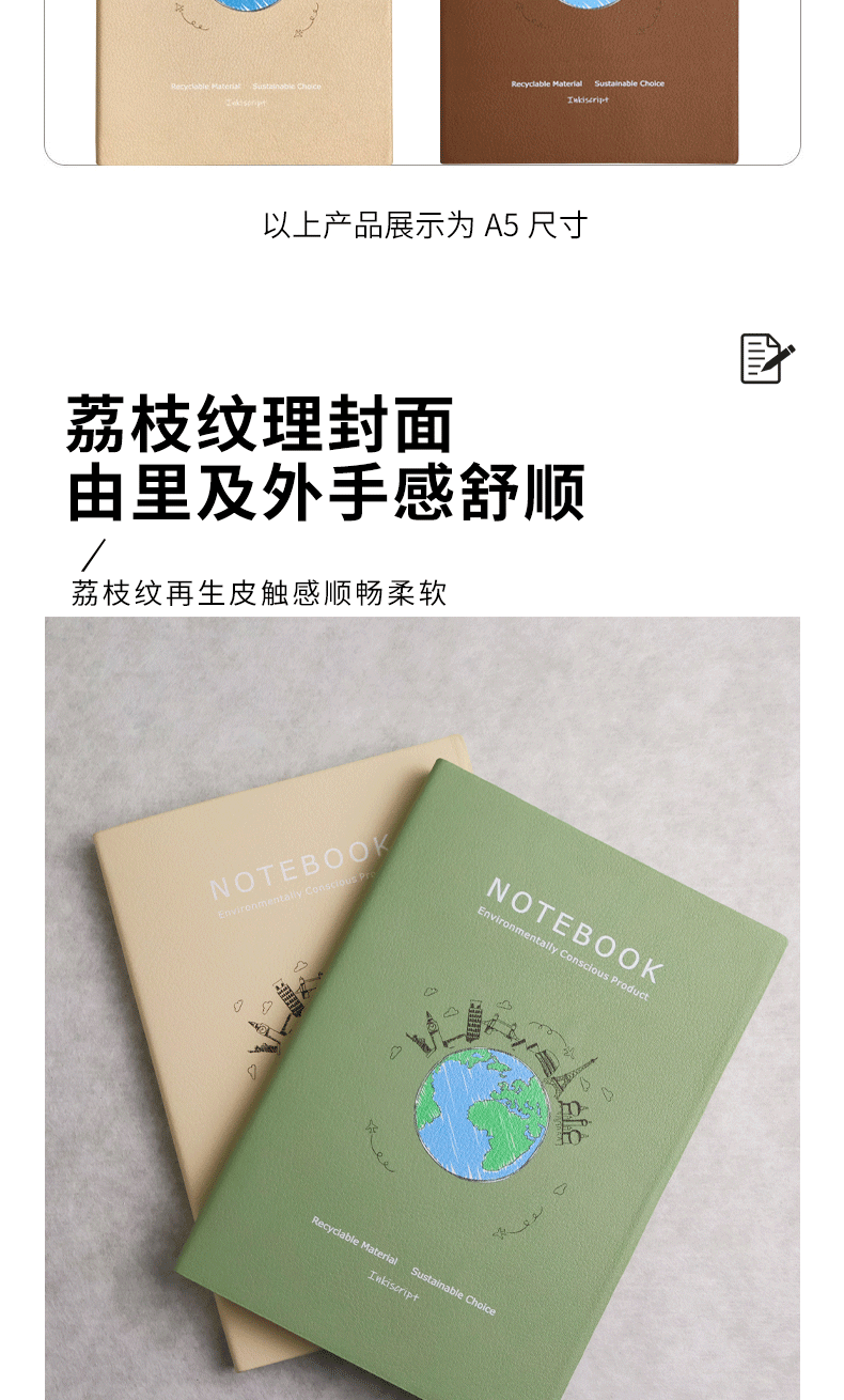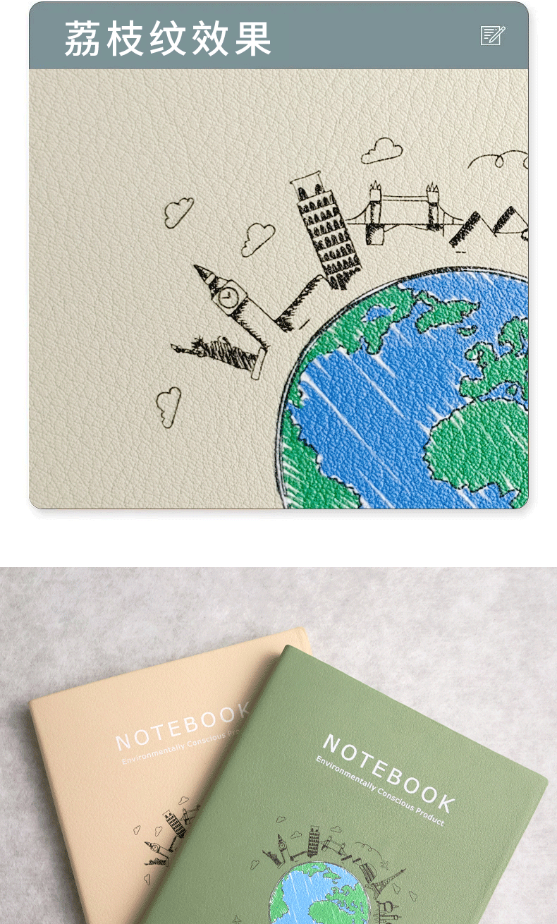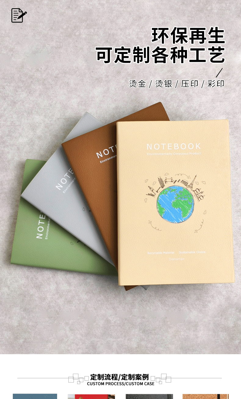 环保再生皮料PRET笔记本 GRS认证系列荔枝纹可印LOGO支持企业定制
