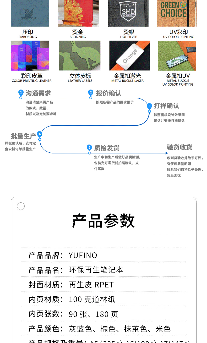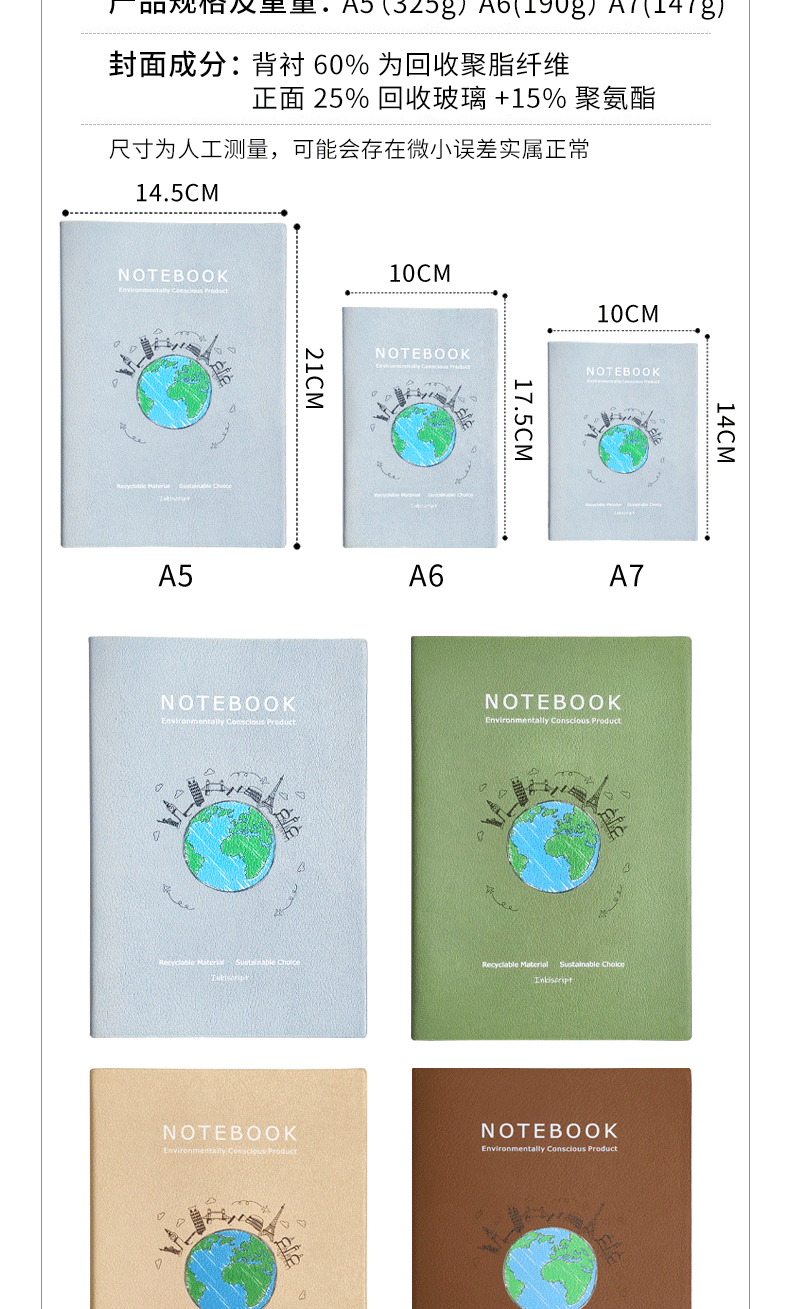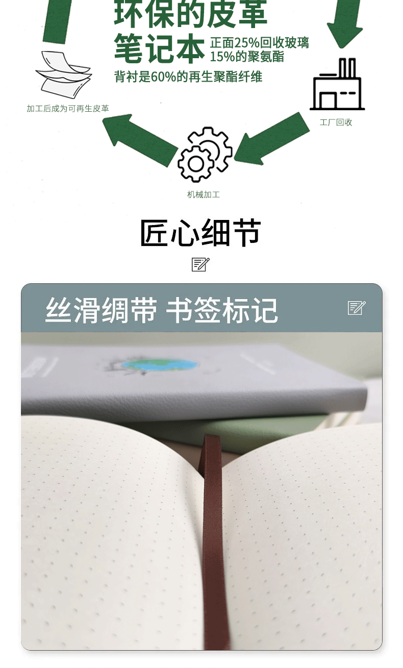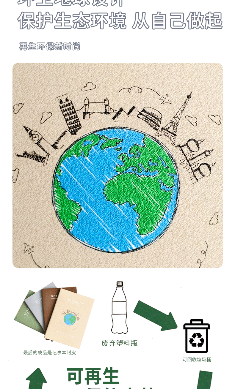 环保再生皮料PRET笔记本 GRS认证系列荔枝纹可印LOGO支持企业定制
