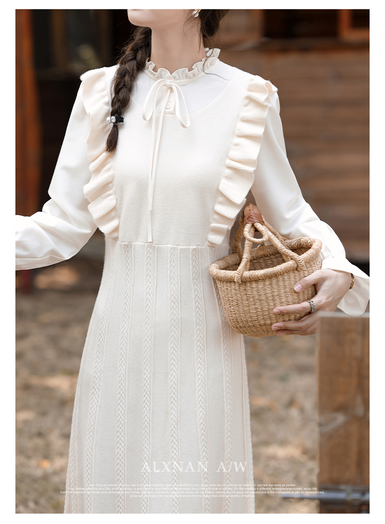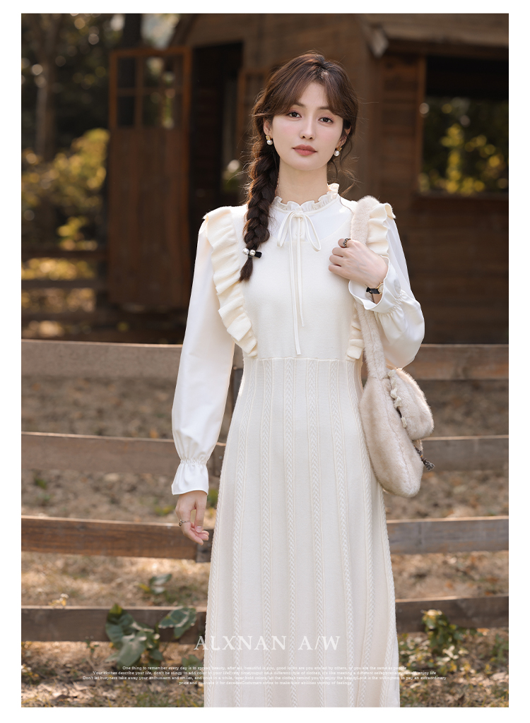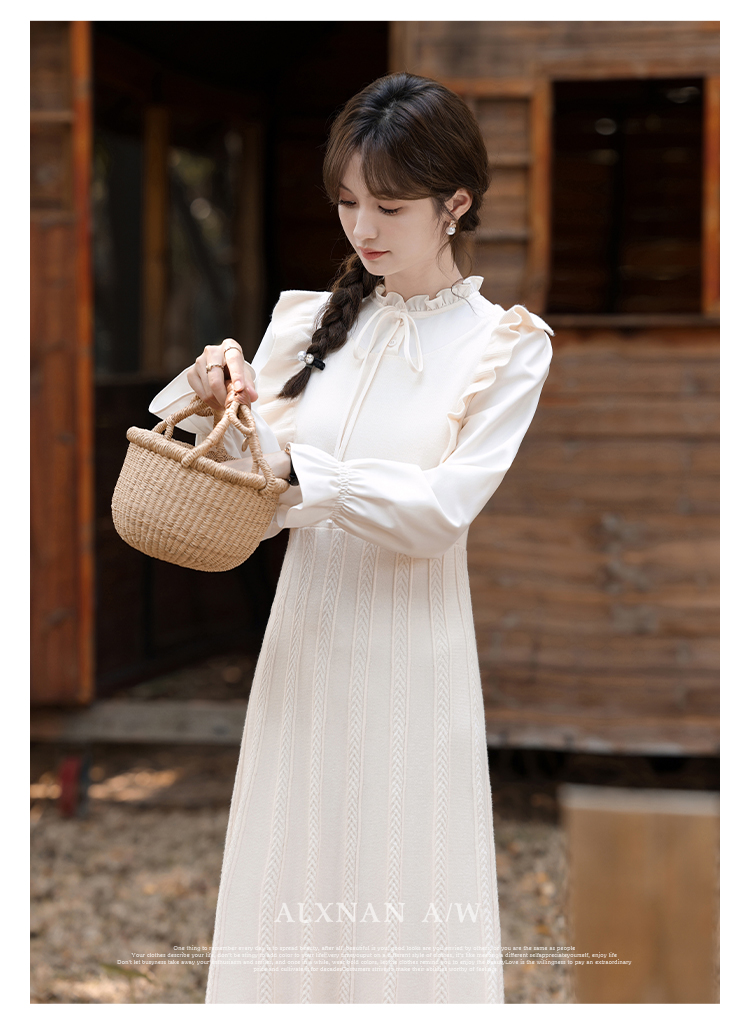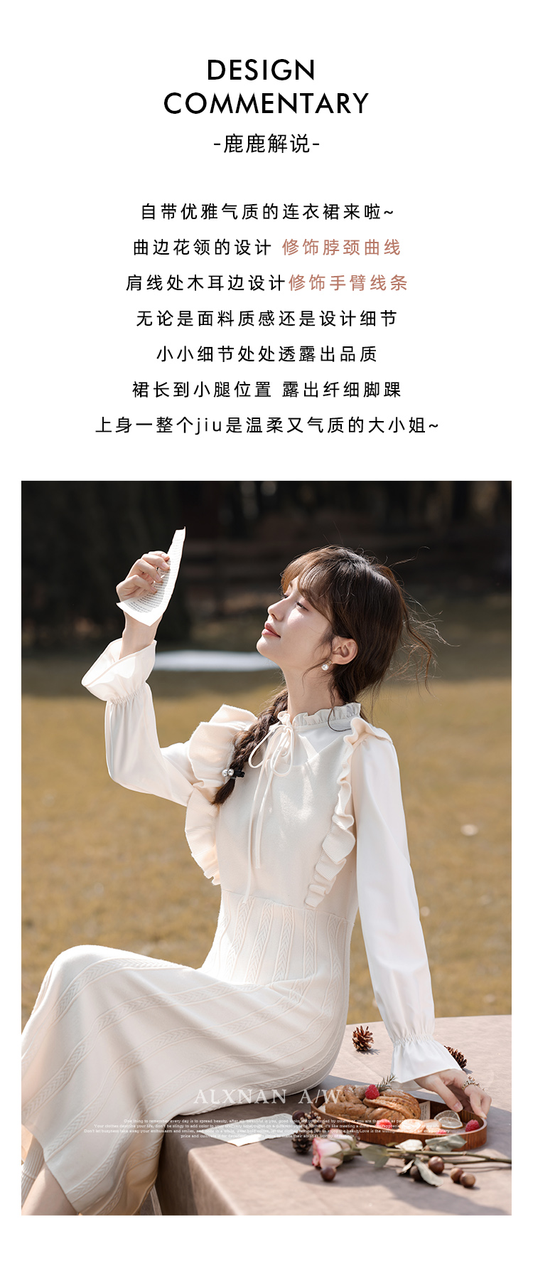 鹿向南《秋叶之舞》气质通勤针织连衣裙秋冬小众设计感中长裙女L330261