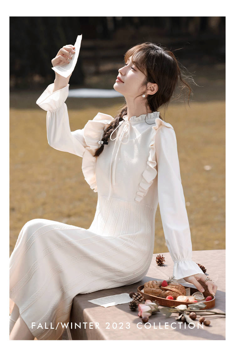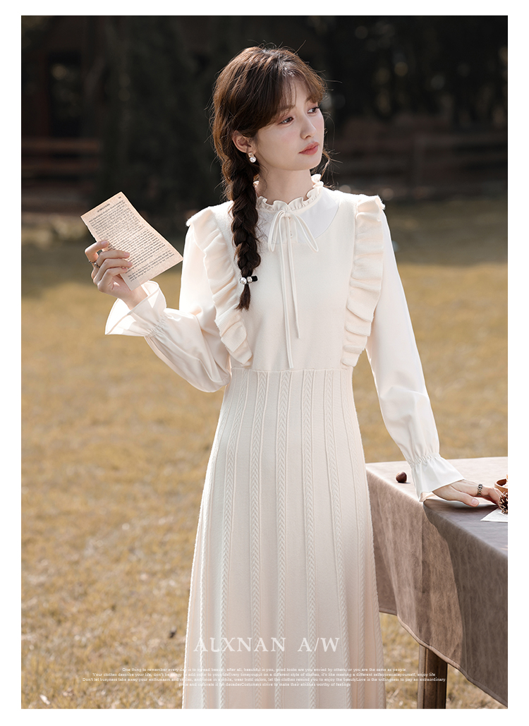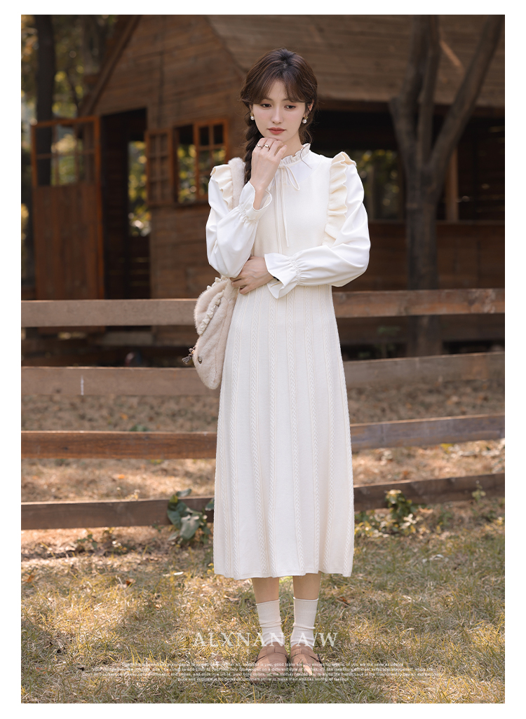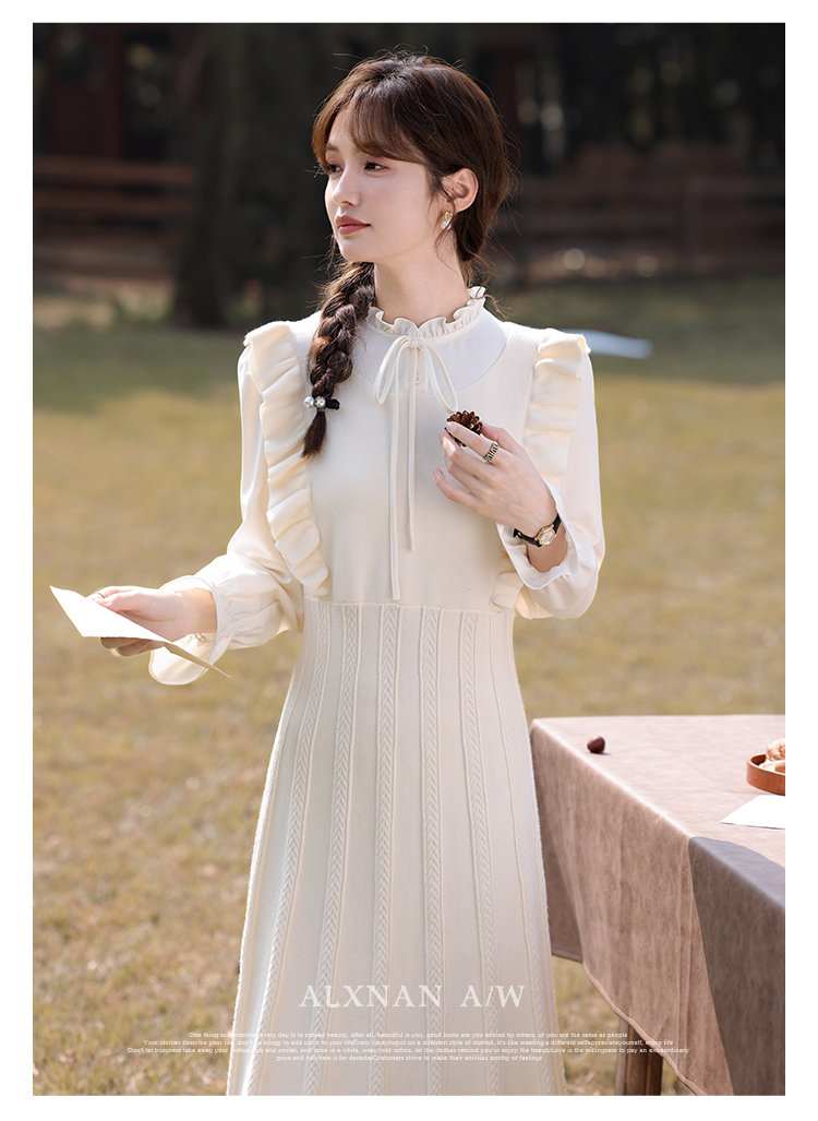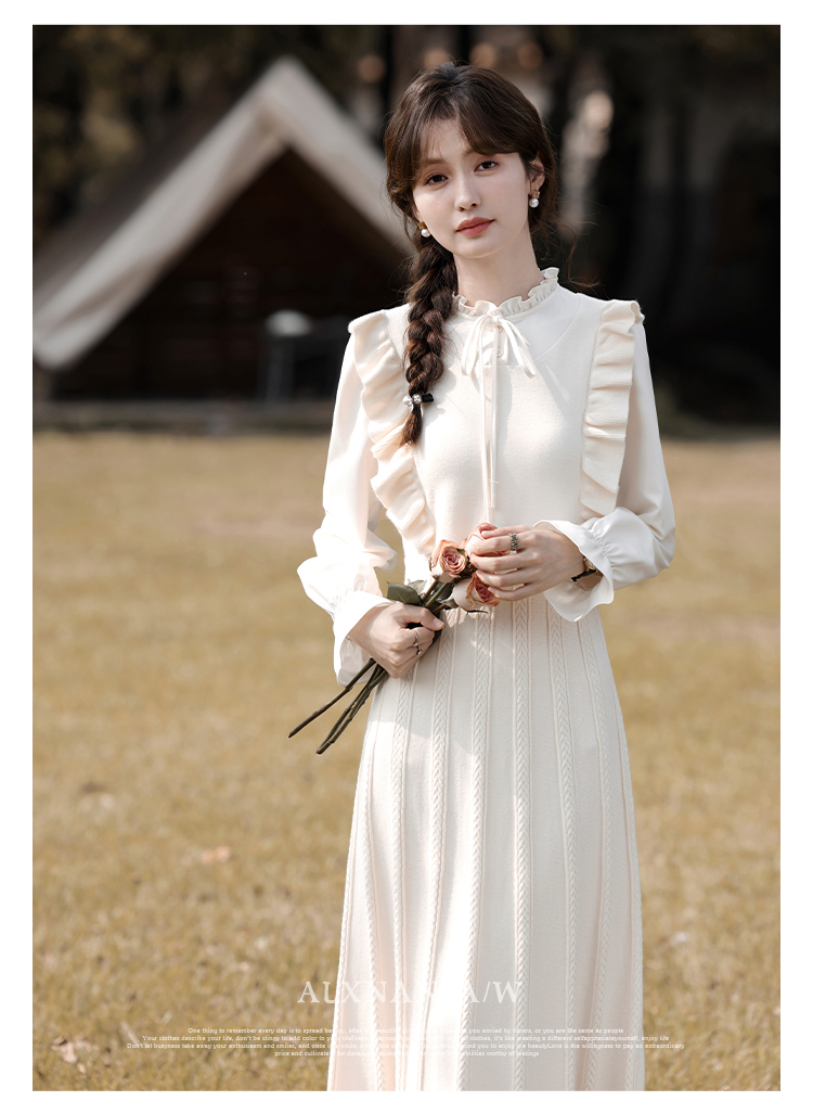 鹿向南《秋叶之舞》气质通勤针织连衣裙秋冬小众设计感中长裙女L330261