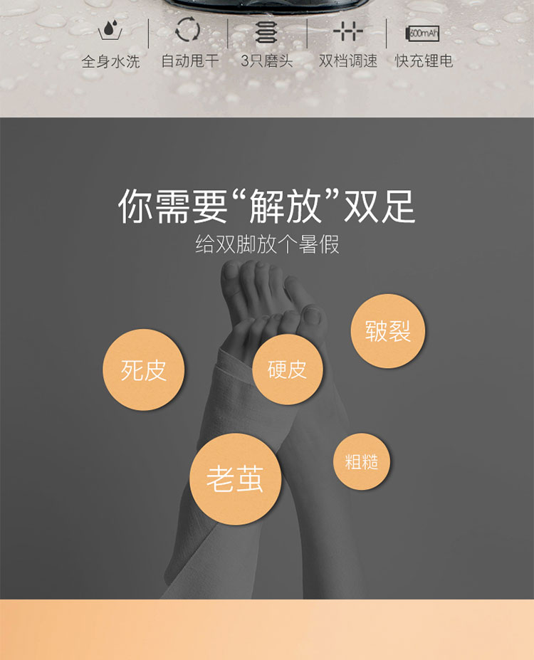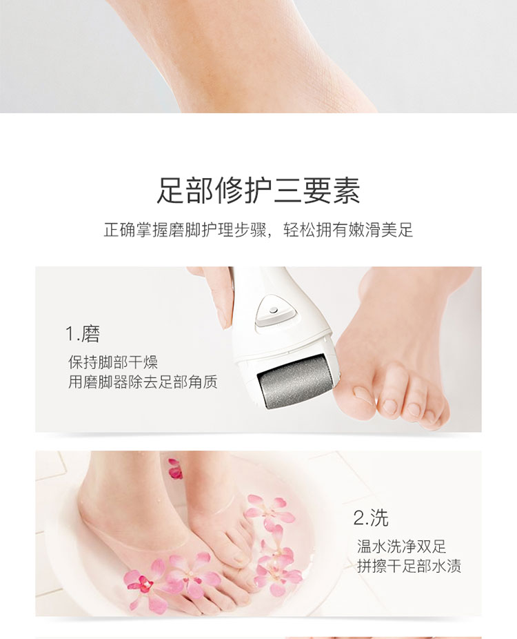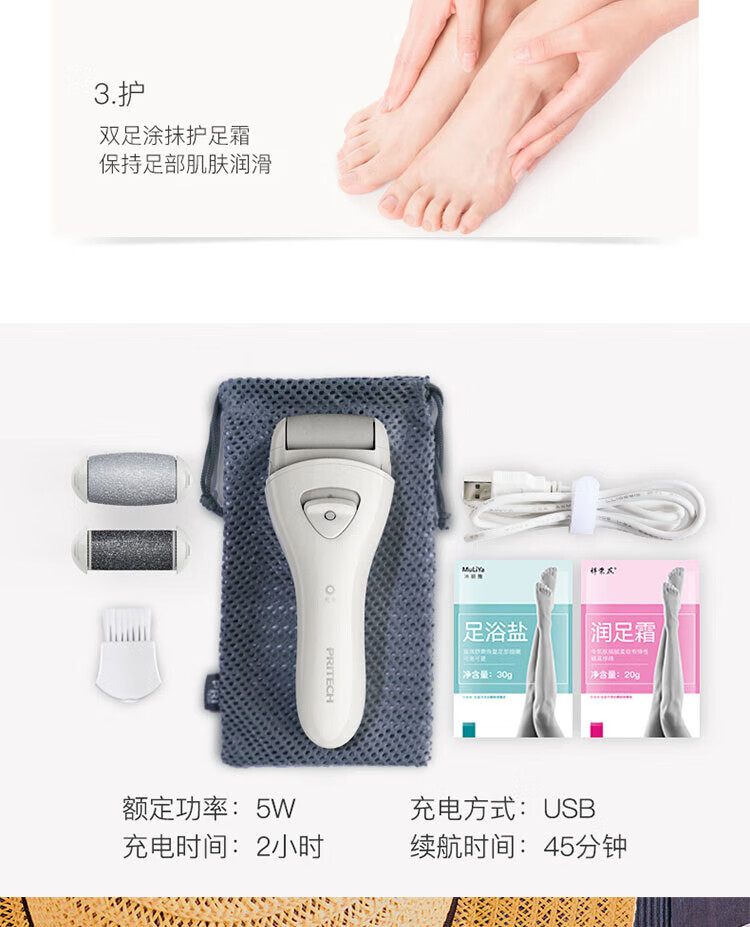 匹奇(PRITECH)电动磨脚器修脚器 防水USB充电磨脚皮机BCM-1138
