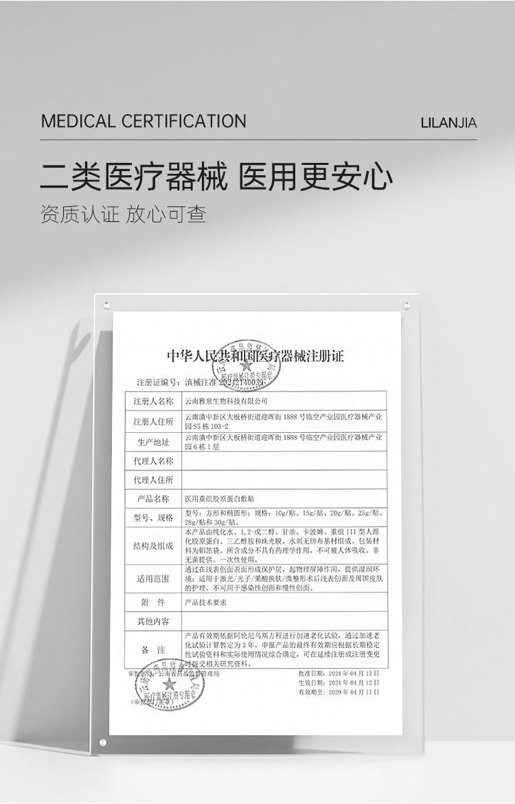 黎兰佳红佳HA135+/修护屏障 医用重组胶原蛋白敷贴医用非面膜 术后美创面补水械号