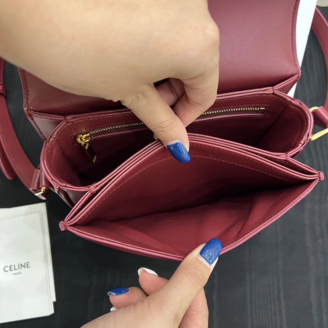 CELINE早秋新品新款凯旋门马鞍包一上市就火爆全场高级质感依旧在线各种明星街拍网红博主推荐~出的三个颜色都比较百搭,每个颜色上身都不同感觉!但都是高级感满满的!!!TEEN BESACE TRIOMPHE亮泽牛皮革手袋牛皮革+羊皮革衬里。 斜挎和肩背金属TRIOMPHE标志开合3个内侧隔层。内侧拉链口袋和扁平口袋尺寸:18.5x16x6cm