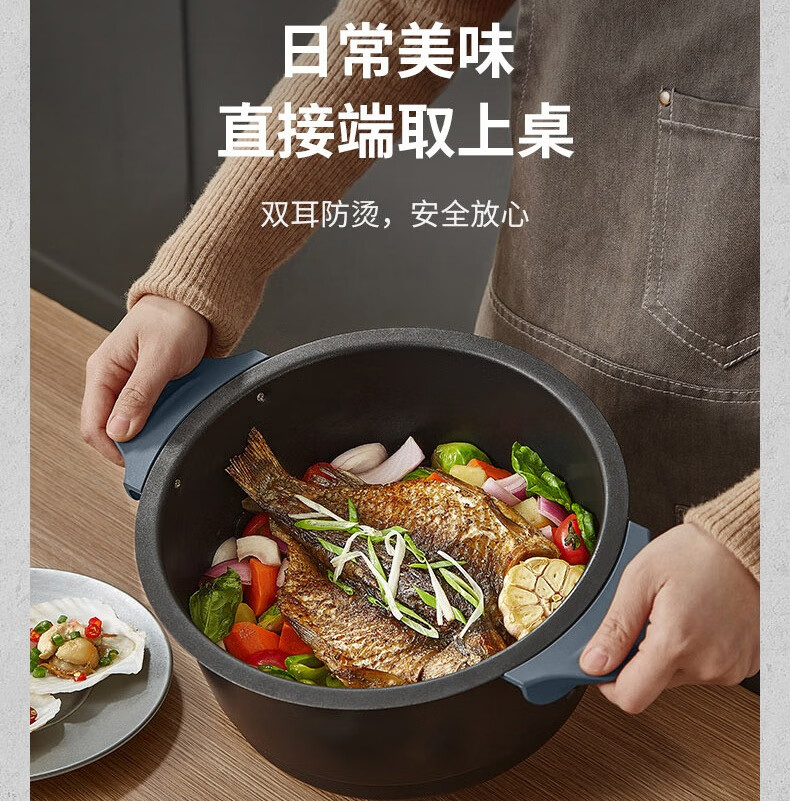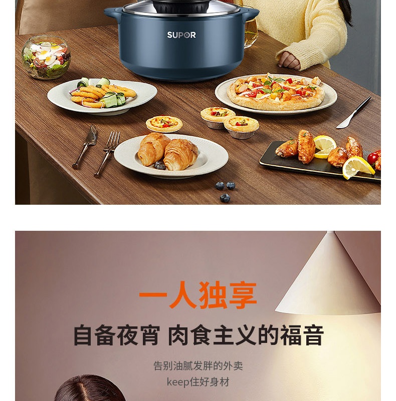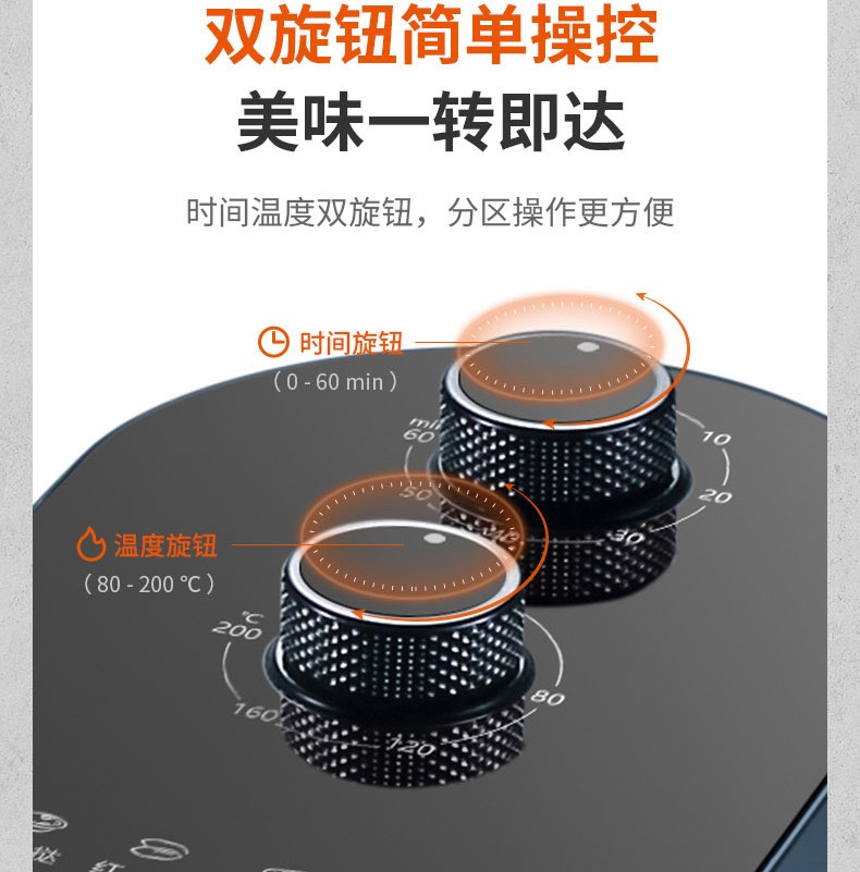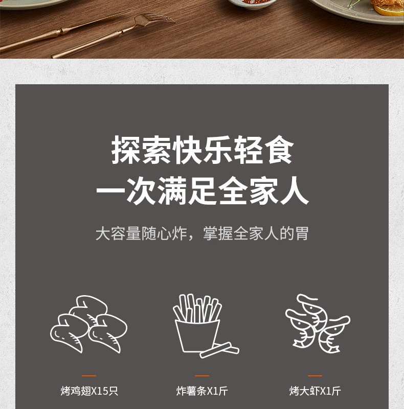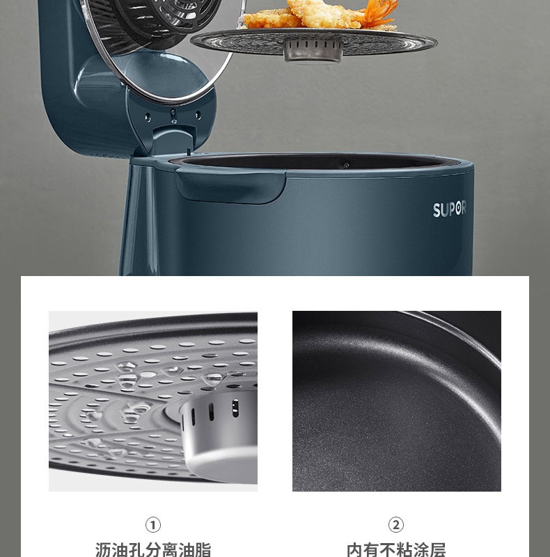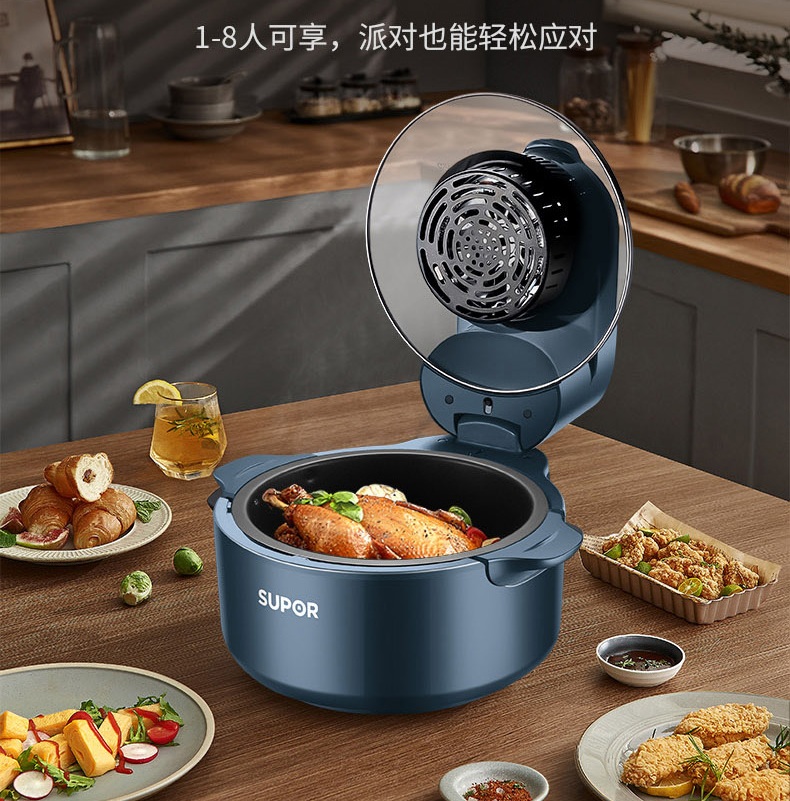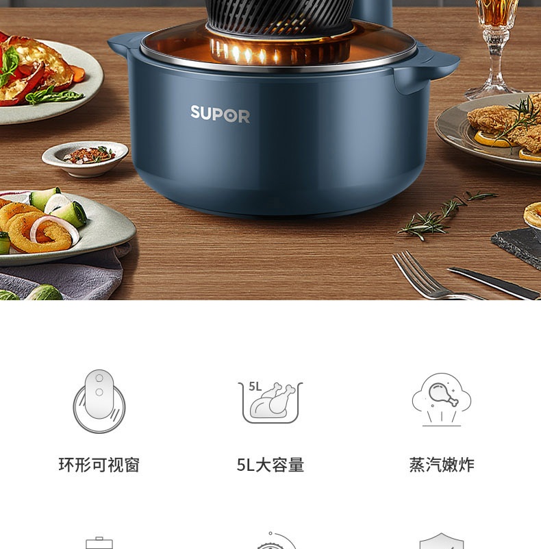 苏泊尔SUPOR KJ50DQ75 5L大容量360度可视窗口蒸汽嫩炸定时无油煎炸分区双旋钮可视烹炸空气炸锅(线下同款)