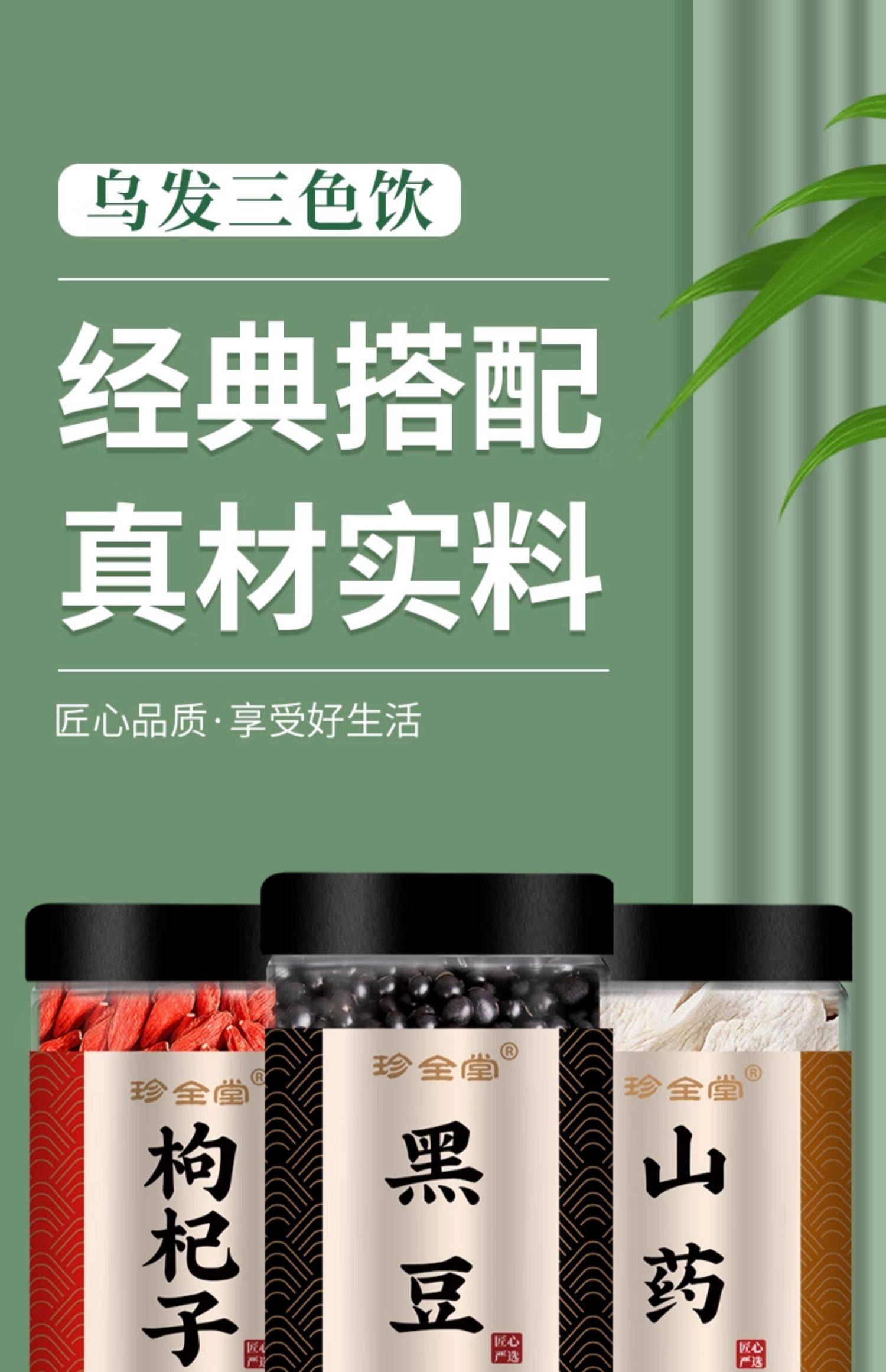 三色饮黑豆枸杞山药中药材正品泡水泡茶乌发代茶饮5g片炒熟淮山药