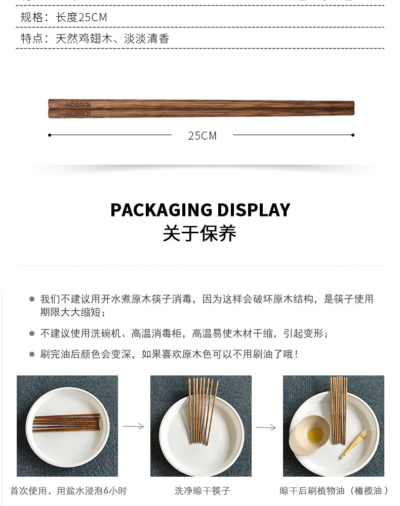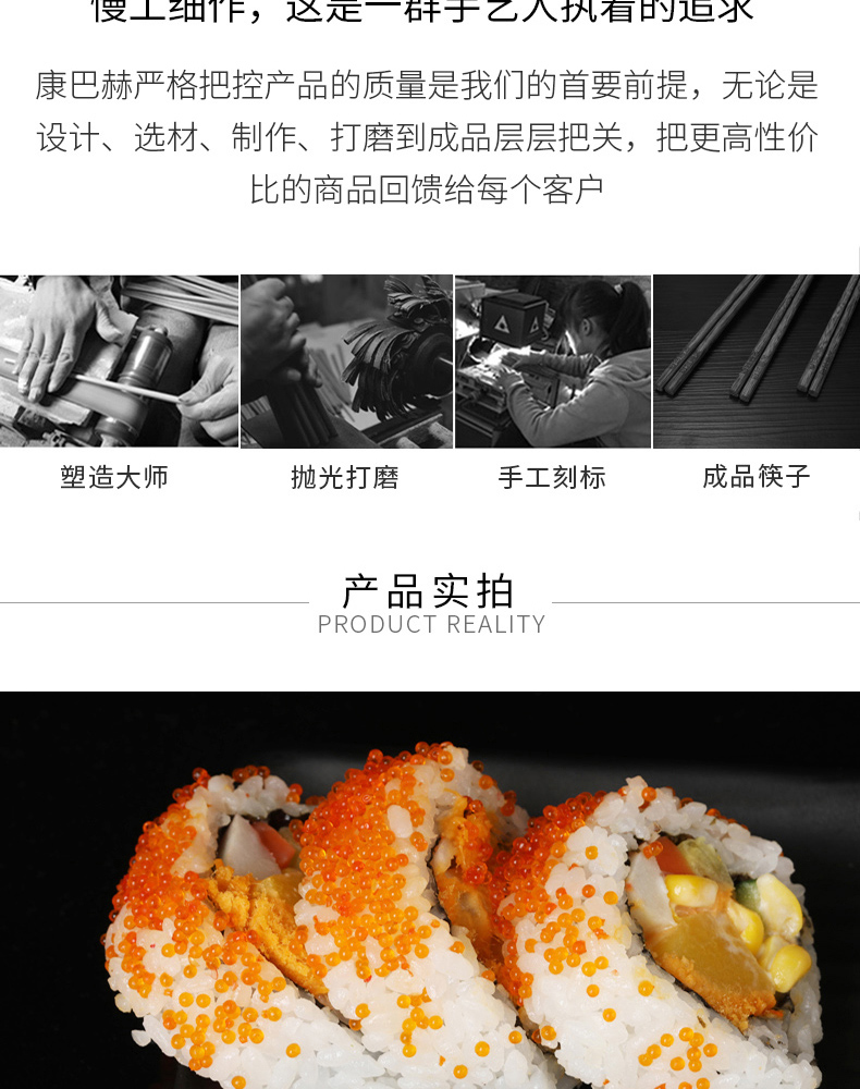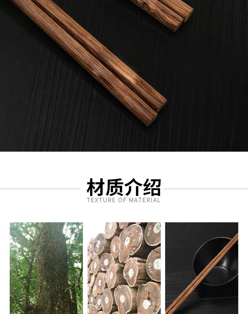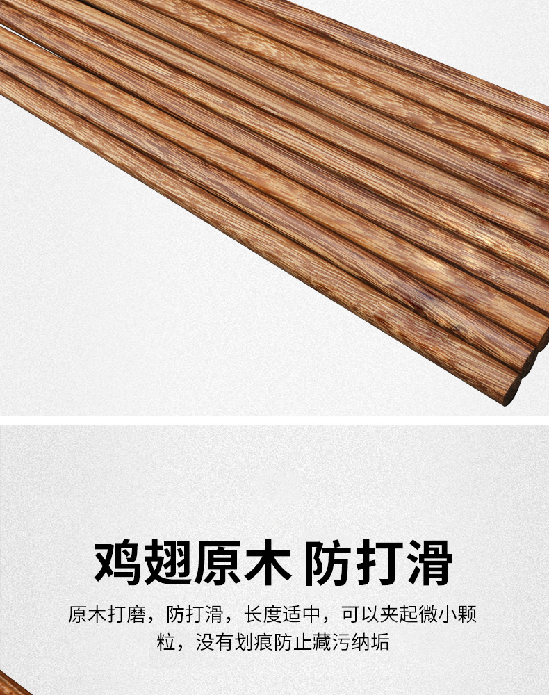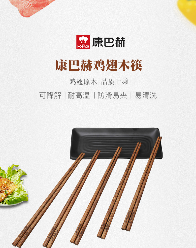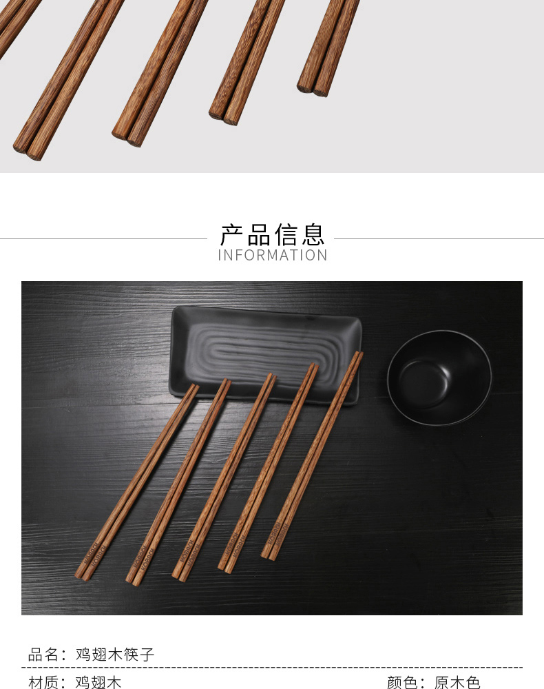 康巴赫鸡翅木筷子家用高档抗菌防霉油炸耐高温10双装