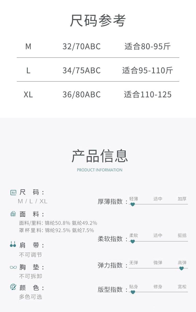 品名:林小眠仙气内衣 规格:背心款/吊带款 发货地:广东 发货时间:下单一般48小时内发货(周末、节假日除外) 发货快递:中通、圆通快递(以实际发货为准,暂不支持指定快递) 运费模板:该商品全国部分地区包邮(新疆、西藏需补差运费8元/单,港澳台不发货,请知悉) 售后政策:内衣属于贴身物品,非质量问题不退不换,请知悉 |