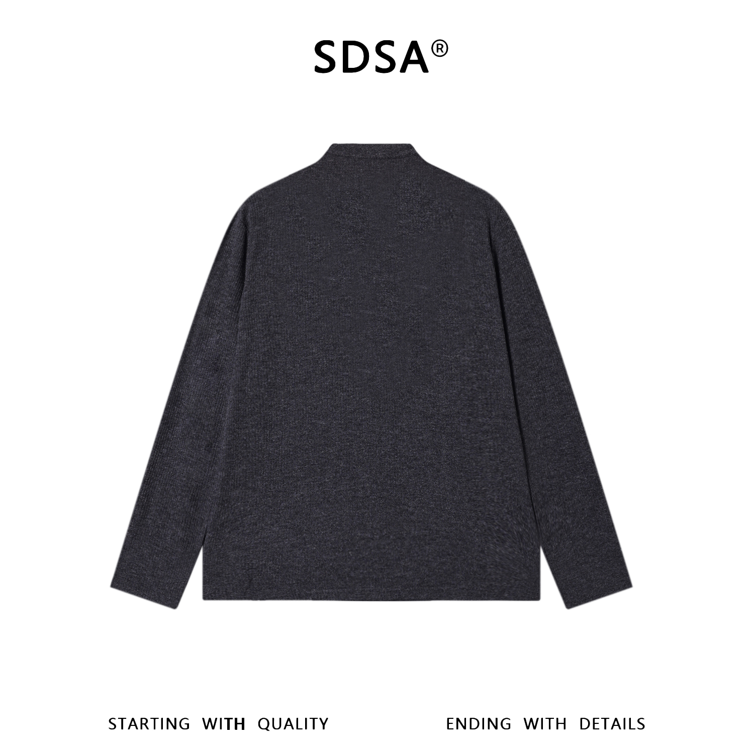SDSA男装2026新款高贵轻奢潮牌纯色肌理半纽扣立领长袖T恤百搭潮