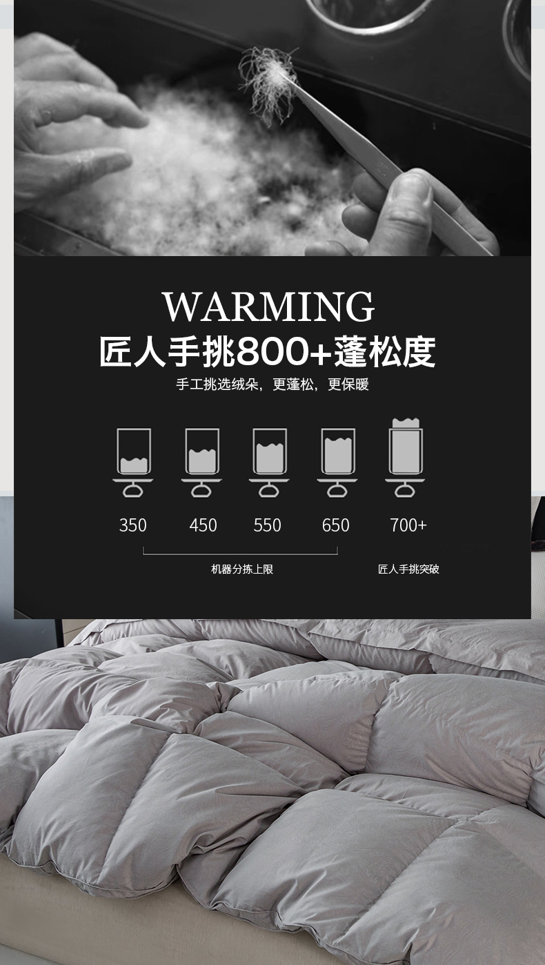 【填充物克重】95%白鸭绒(加拿大进口雪雁绒)