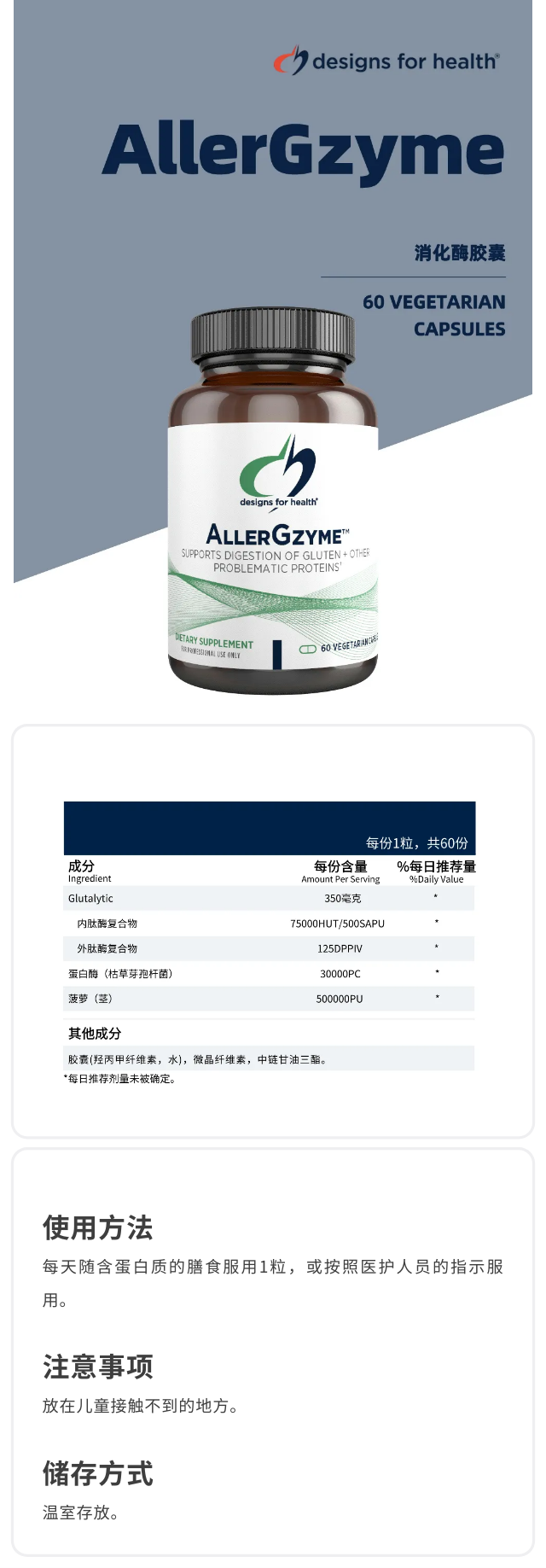 海淘 Designs for Health 健康设计 AllerGzyme™ 促消化酶胶囊 60粒/瓶26.04