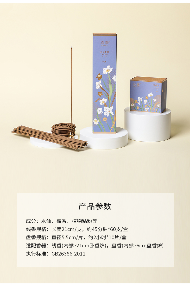 喜薰水仙春晓正装线香檀香家用熏香薰持久室内盘香供香天然花香薰
