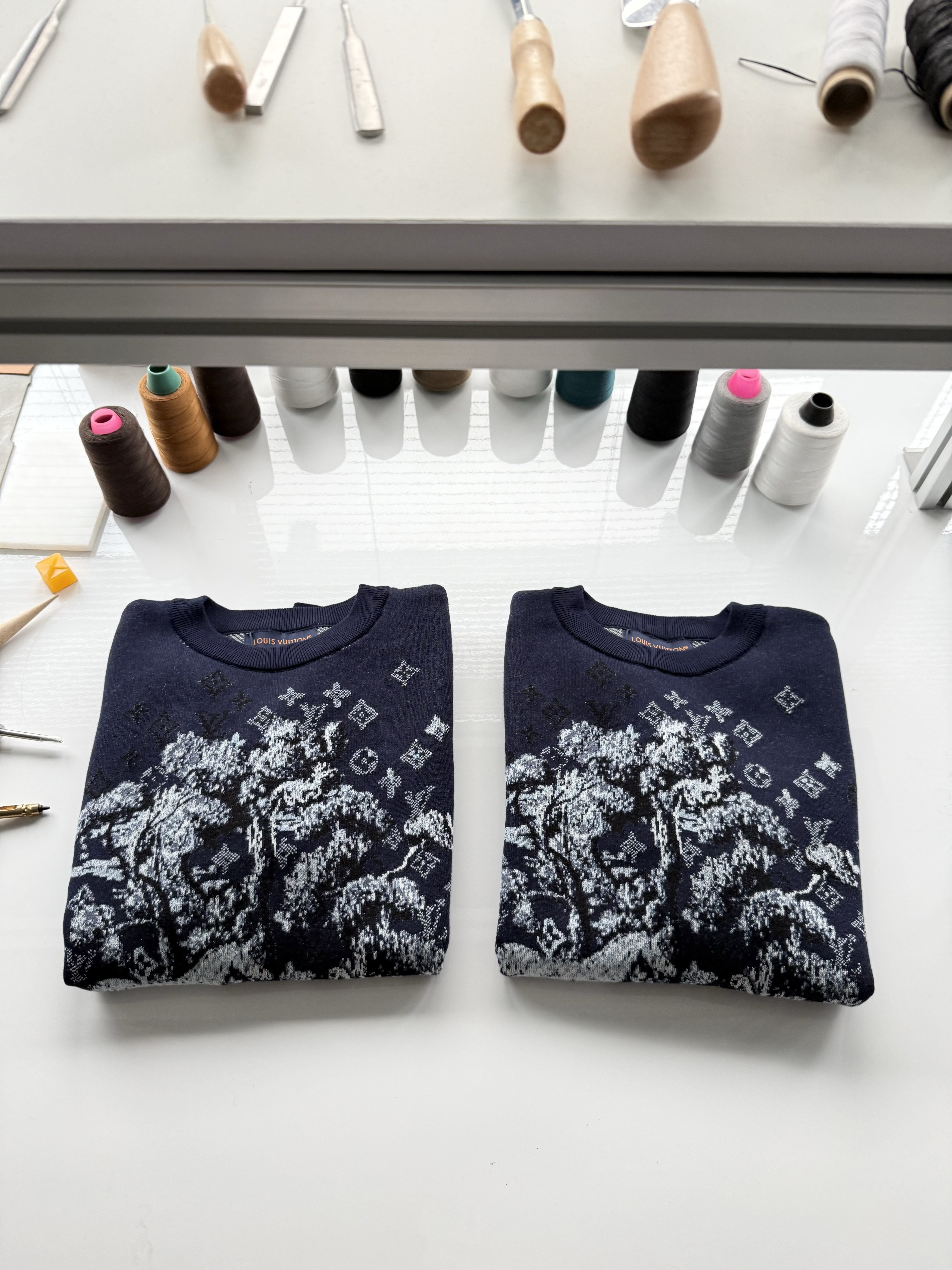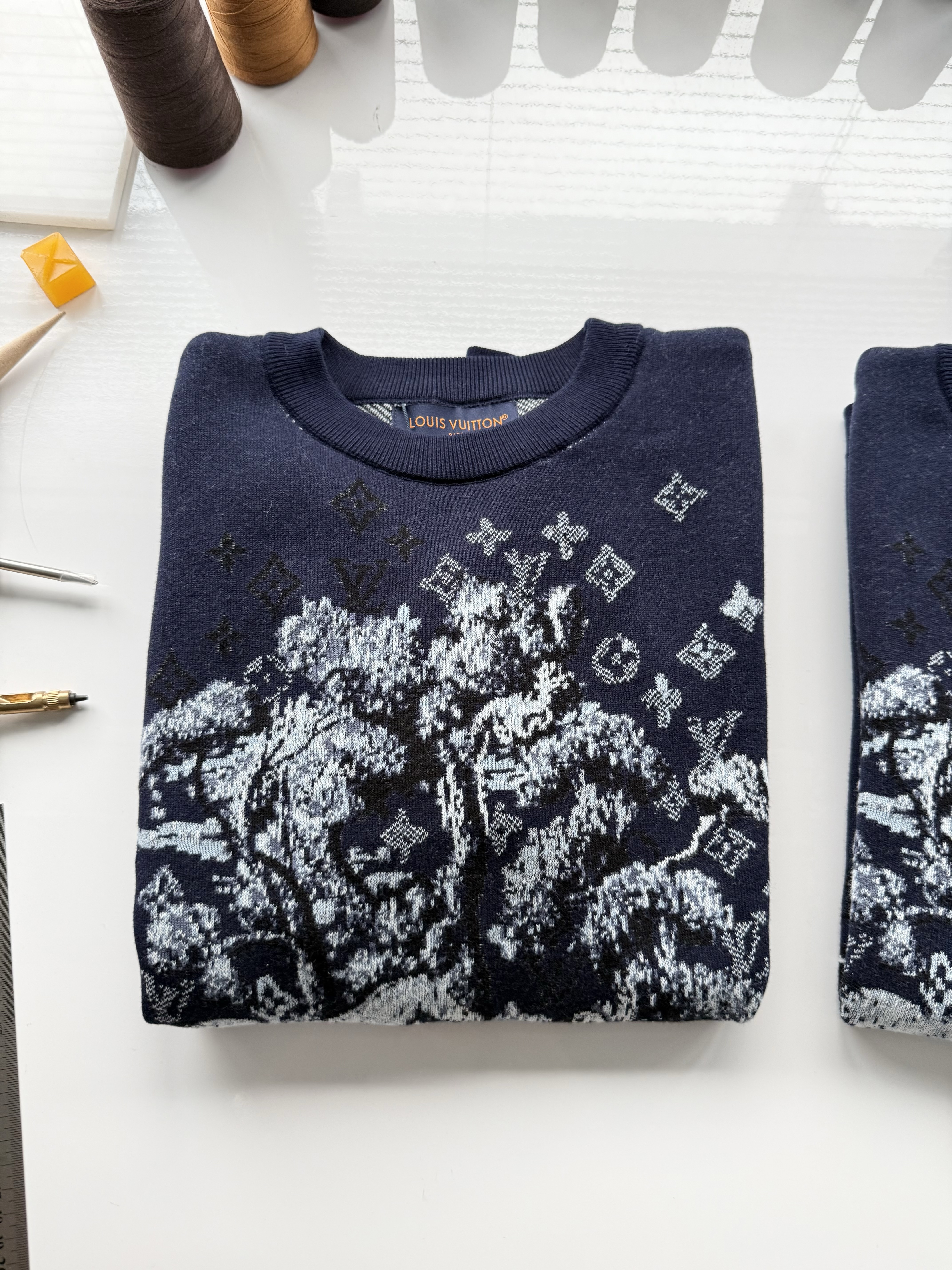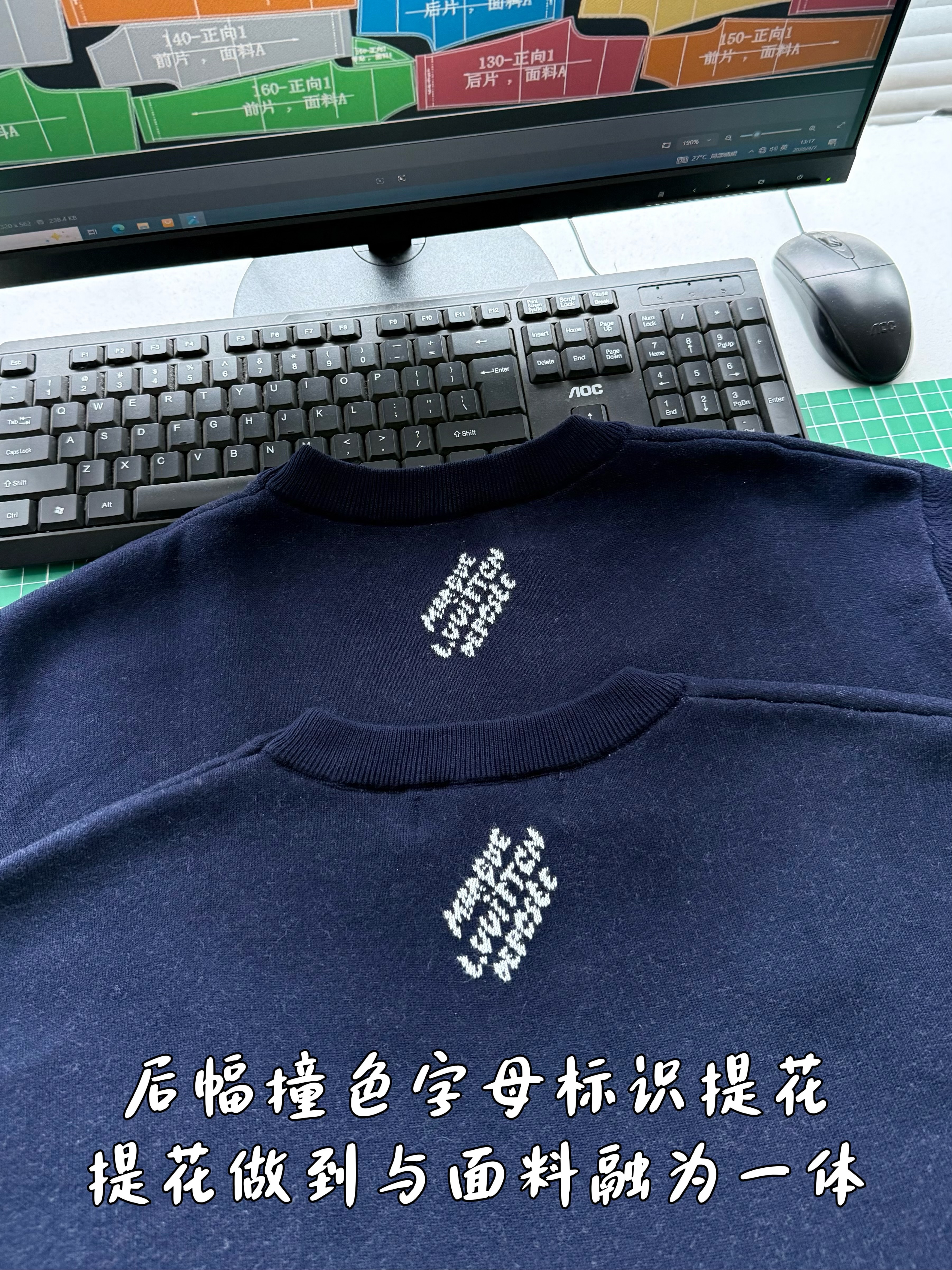 整件衣服9350购买ZP拆解打造,采用定制提花棉质针织面料,做到100%全棉进口纱线,意大利制造,前幅饰以刺绣字母标识提花,后幅饰以字母标识提花,定织标志性罗纹领口 袖口 下摆,超紧密度局部编织,