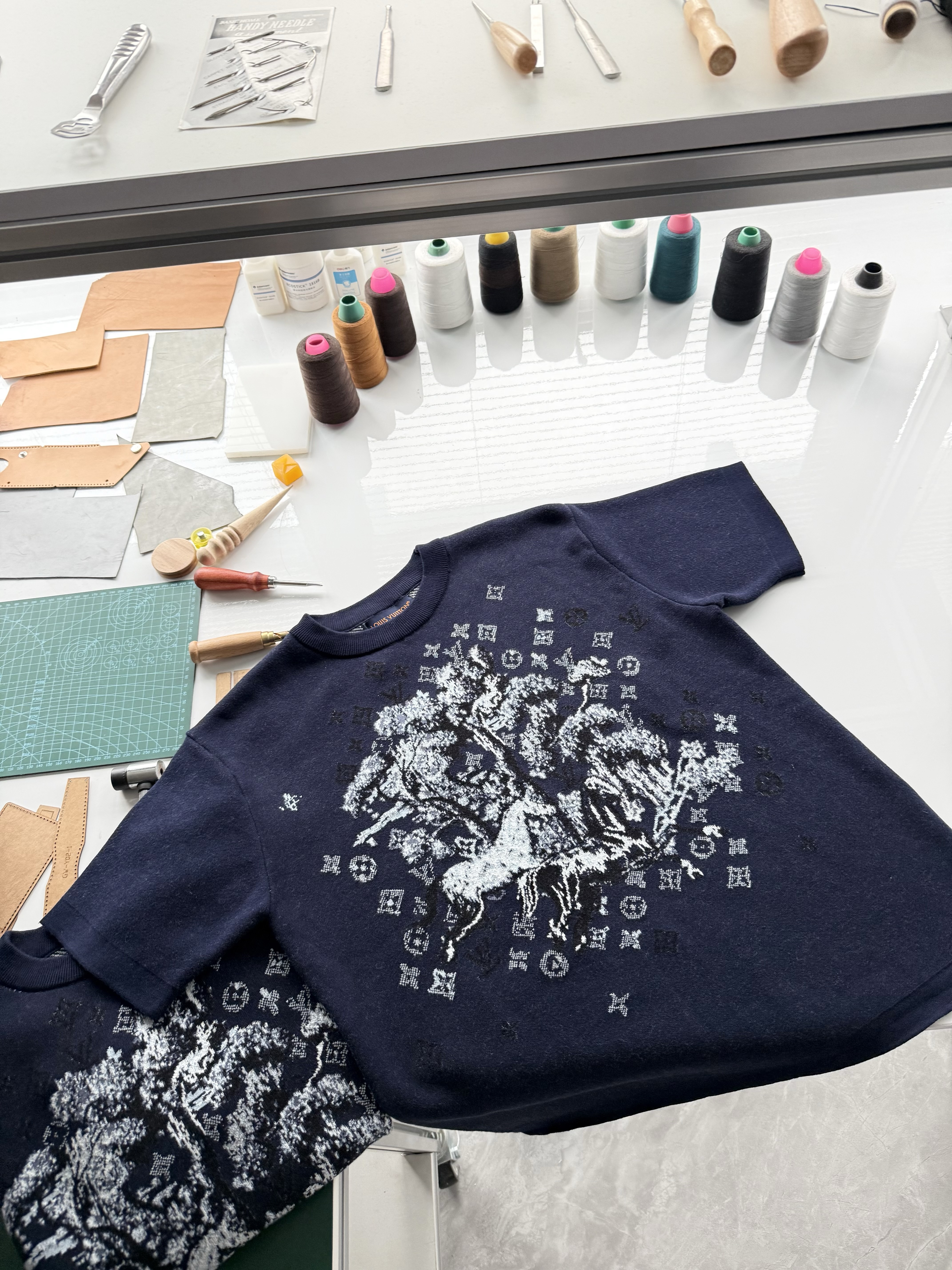 驴家26ss刺绣字母标识提花针织T恤‼️