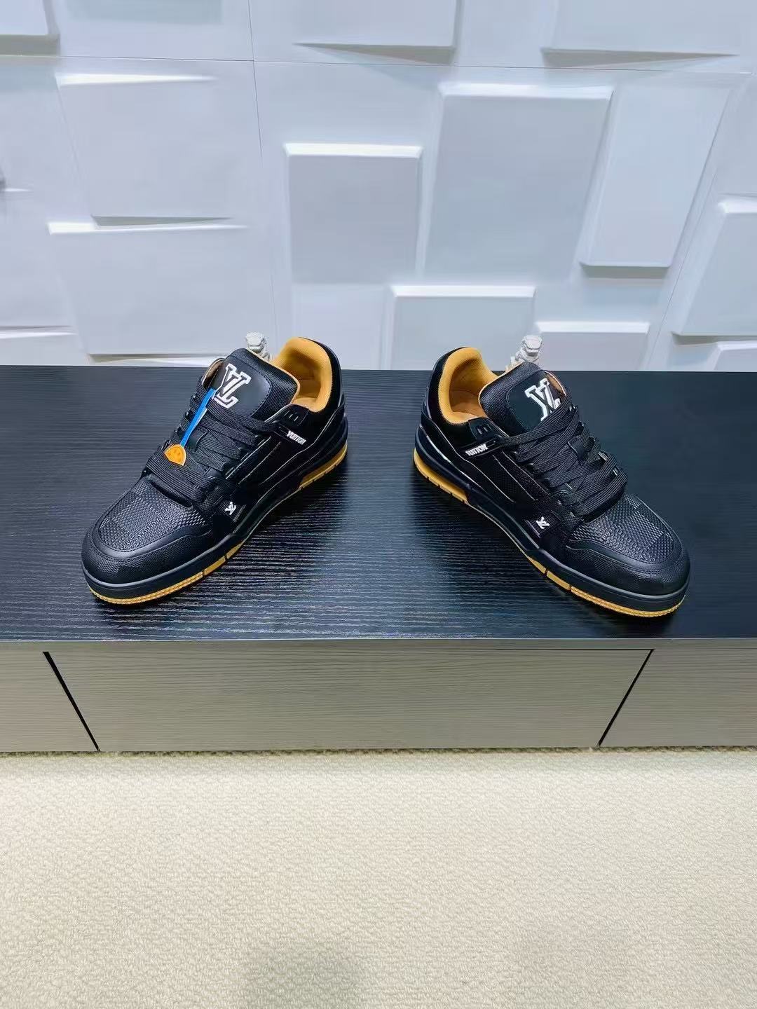 原版购入开发 路易威登 x Tyler 合作系列推出 LV Trainer 运动鞋,延续 Virgil Abloh 基于复古篮球鞋创作的经典设计。牛皮革鞋面融入 Craggy Monogram 压纹和路易威登标识,展现 Tyler 对 Monogram 图案和品牌元素的趣味重构