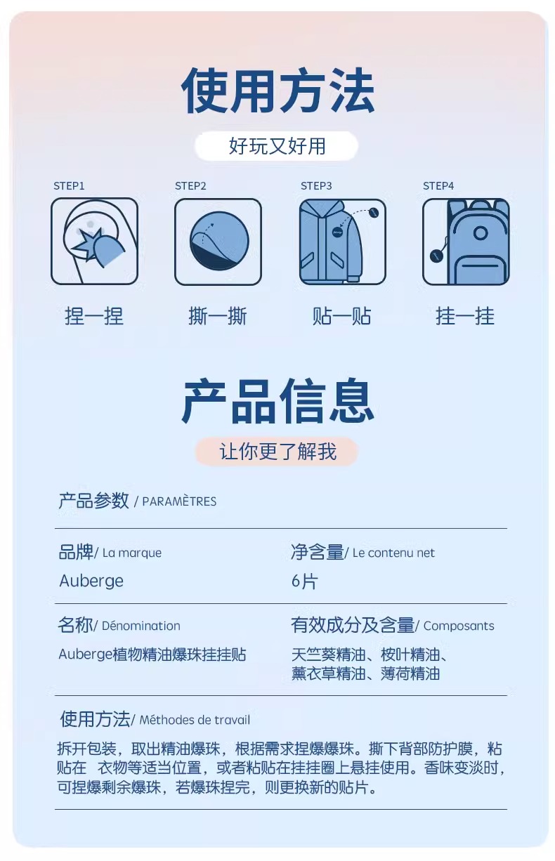 预售3天!!【1盒|6贴】Auberge植物爆珠精油挂挂贴(含便携硅胶套)