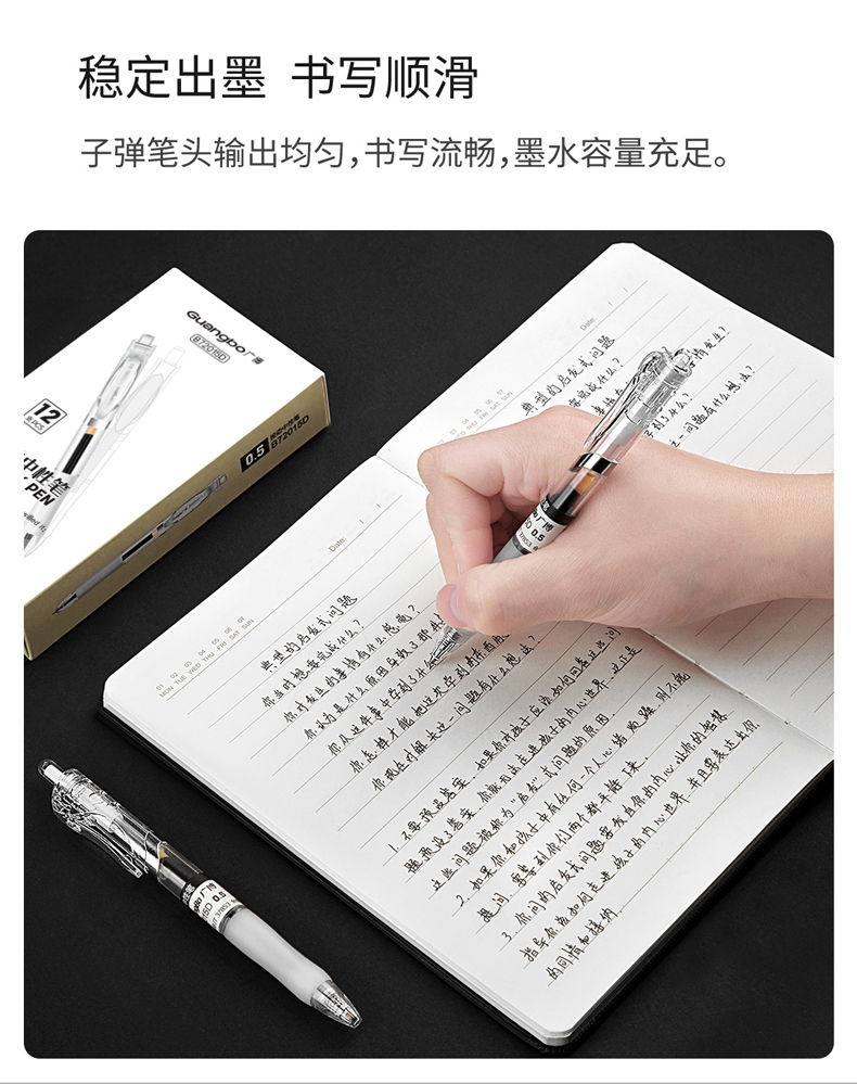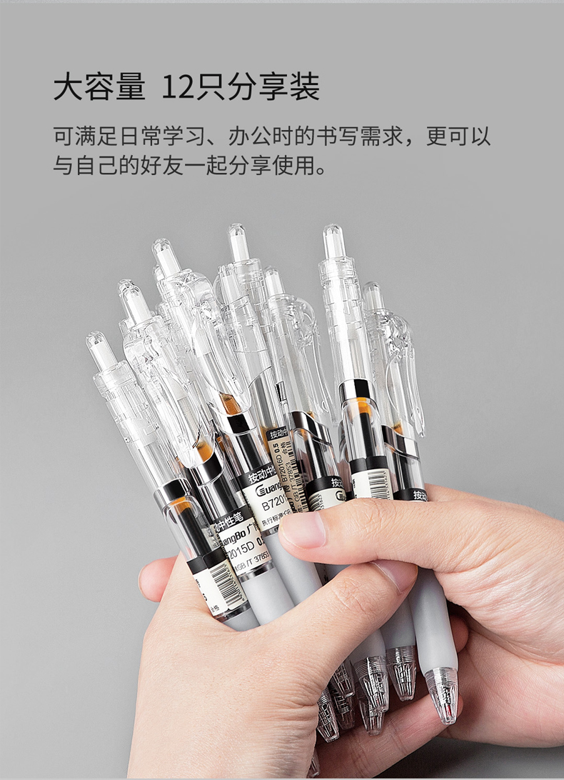 广博开学文具大赏简约按动中性笔-黑色12支装量贩囤货 商品图6