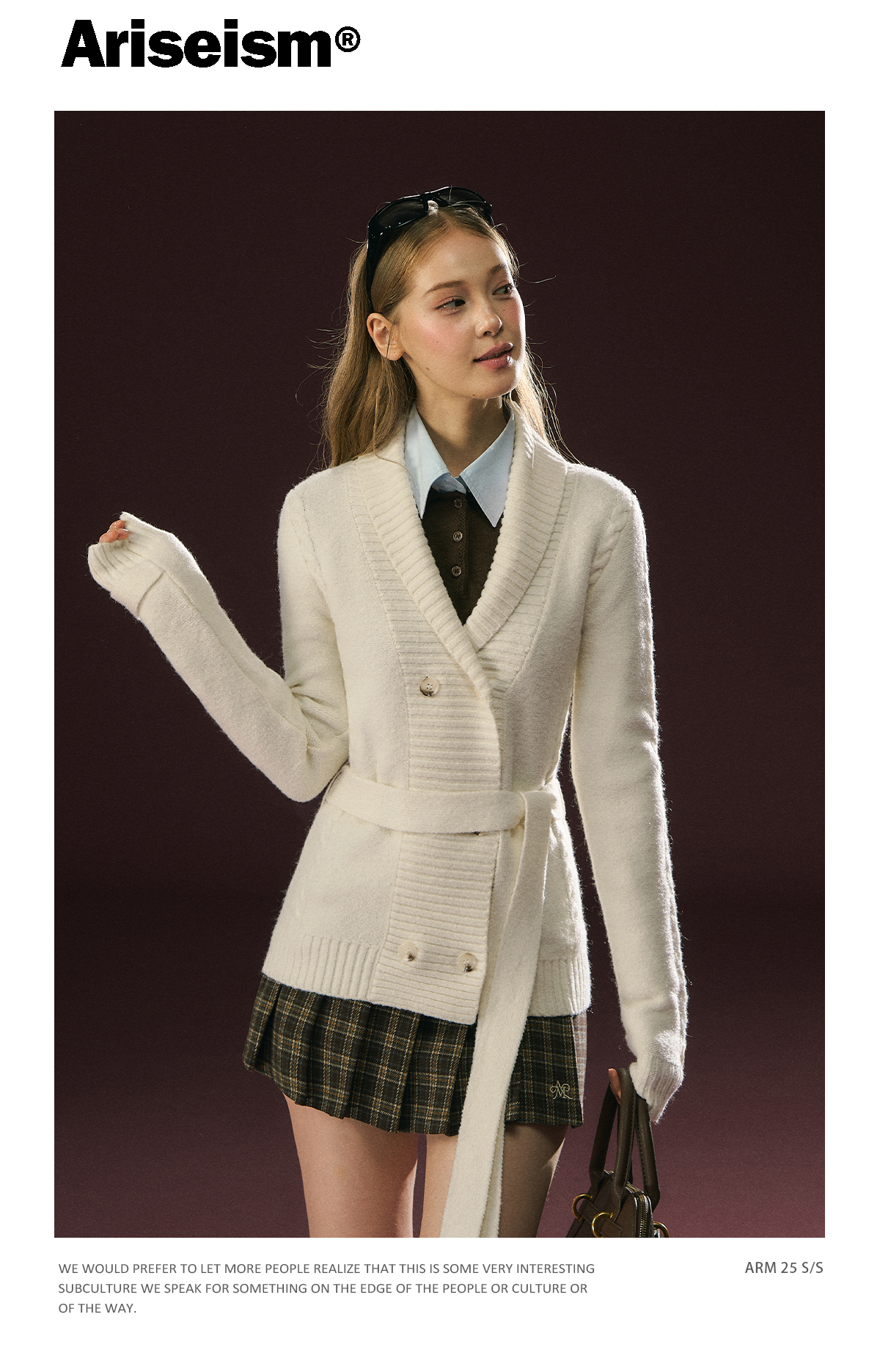 Ariseism 美式复古设计感开衫毛外套衣女秋冬新款修身上衣