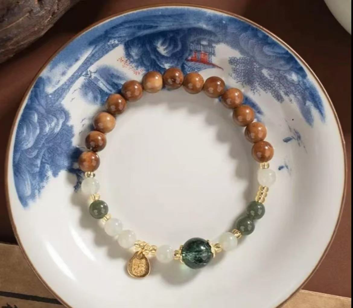 【普陀山】高级感高抛天然库克手链轻奢绿幽灵琉璃手串女新中式手饰